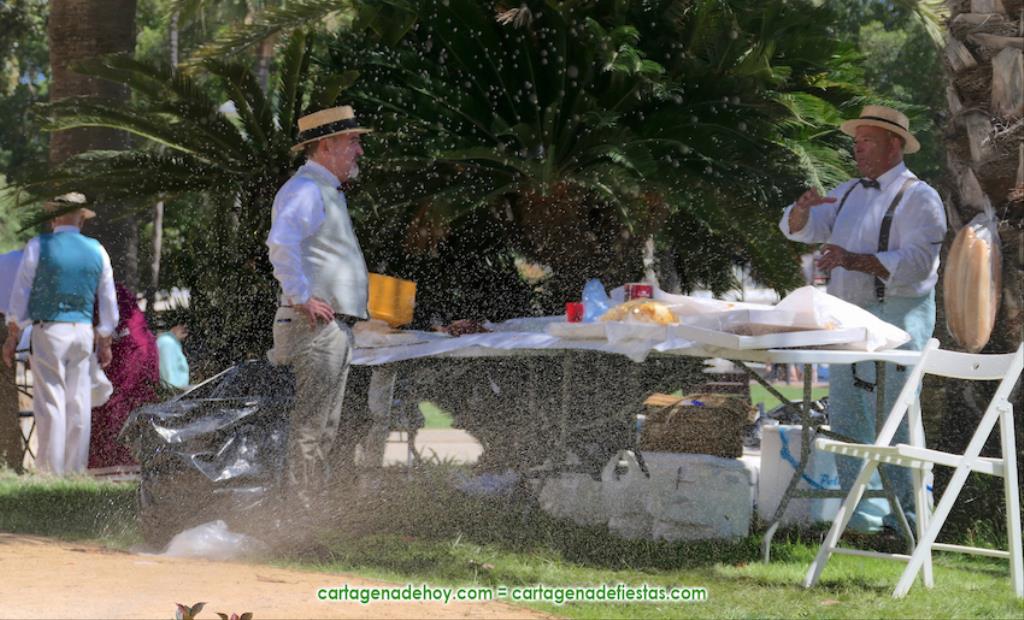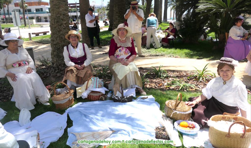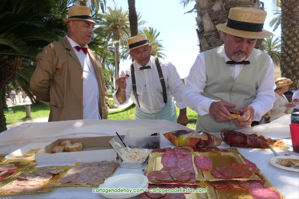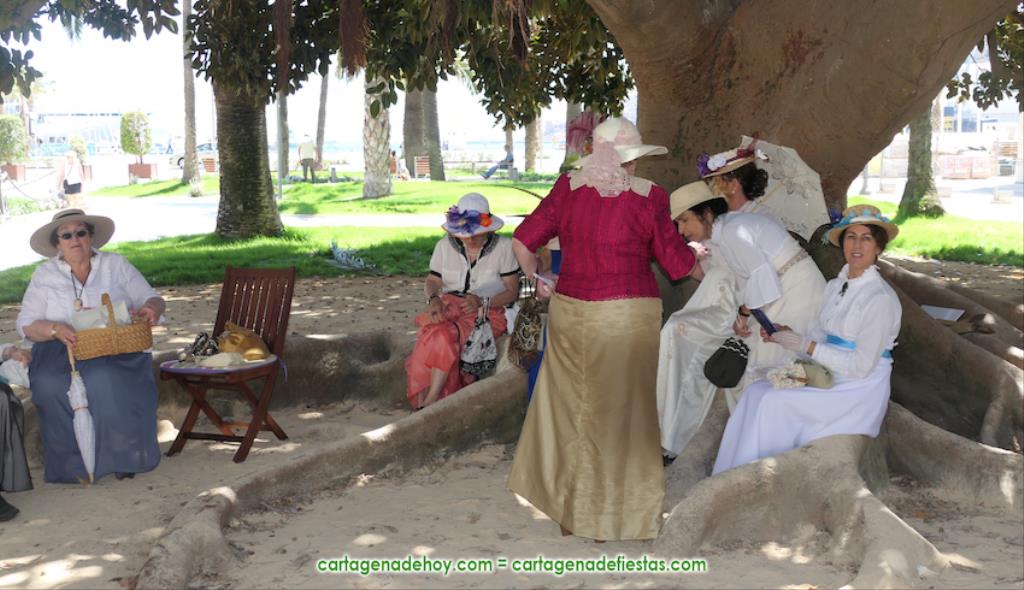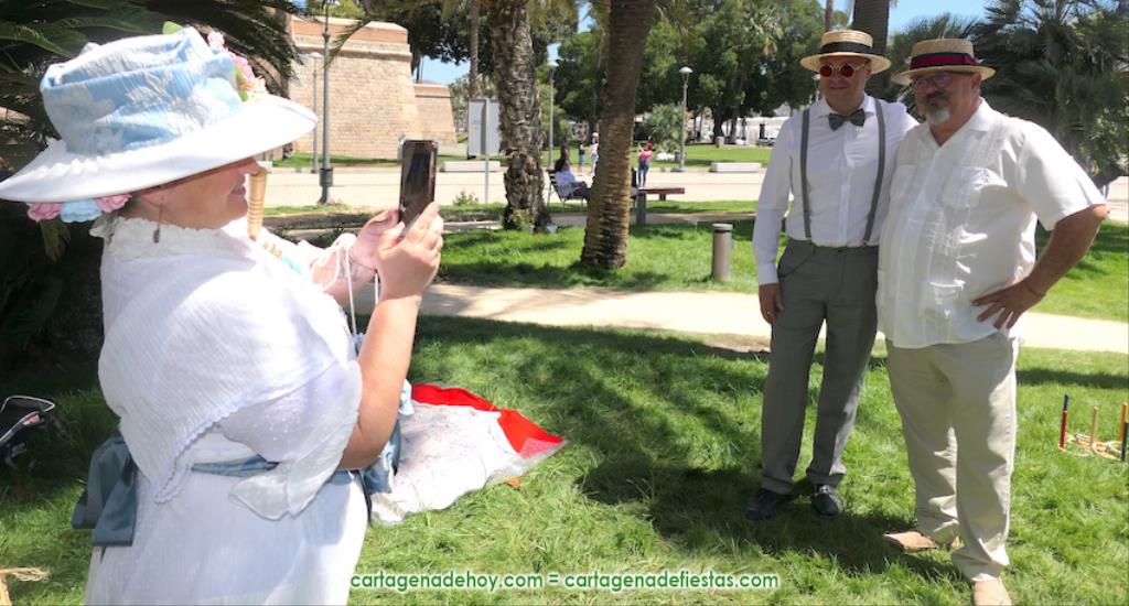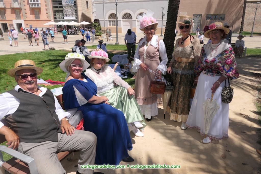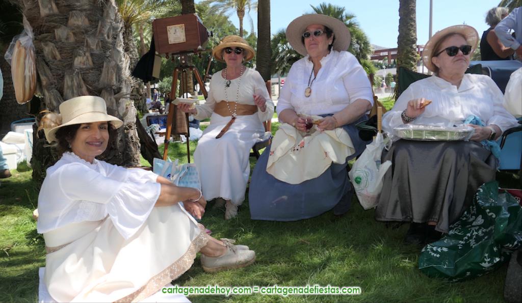 "Ha sido una jornada fantástica y extraordinaria de compañerismo, juegos y bailes. Parece que nos superamos cada edición". Son palabras de José Antonio Martínez 'El Kachimanero', presidente del inquieto colectivo cartagenero, que también disfrutó del picnic junto a unos sesenta modernistas locales más los llegados de Novelda y de Alcoy, quienes se vieron envueltos por la presencia (y miradas) de cientos de cartageneros y turistas.
