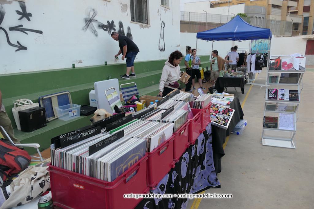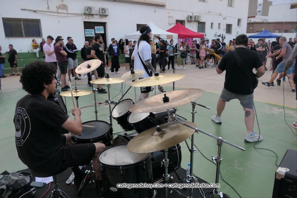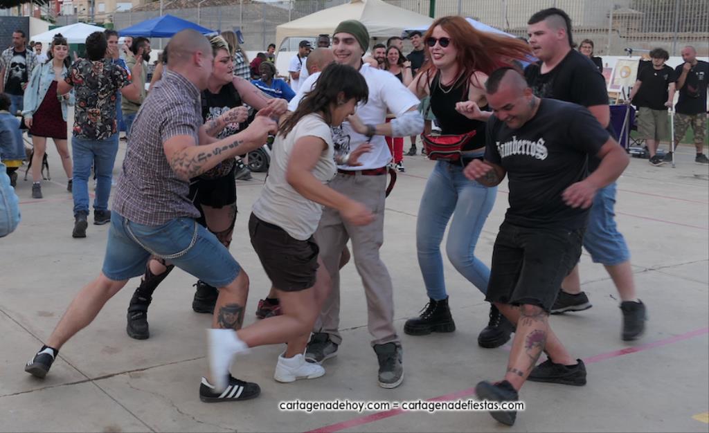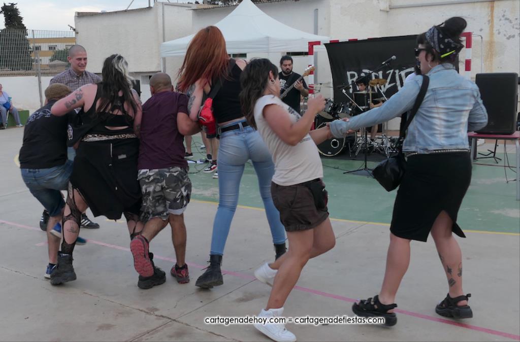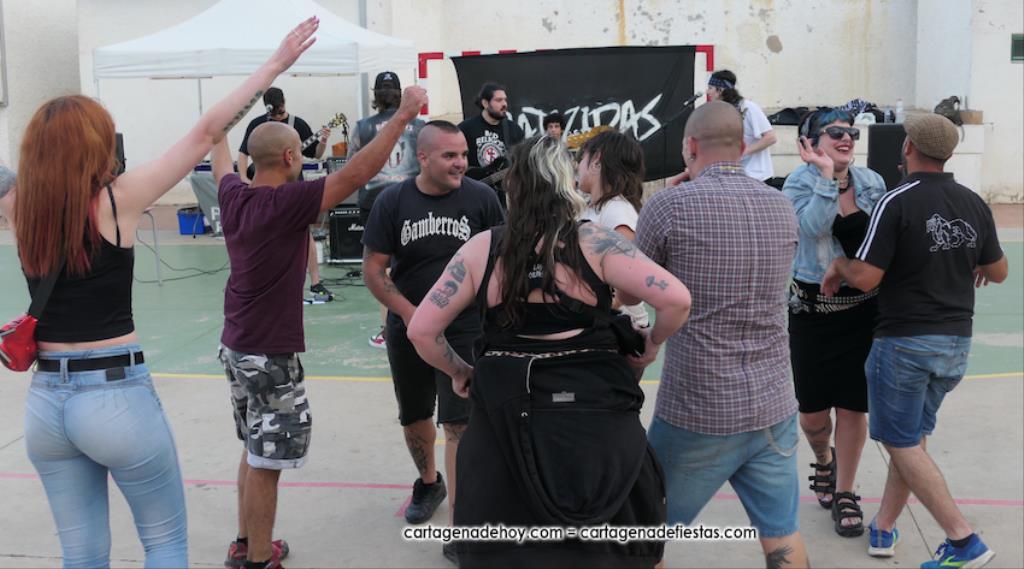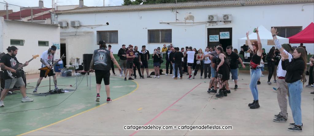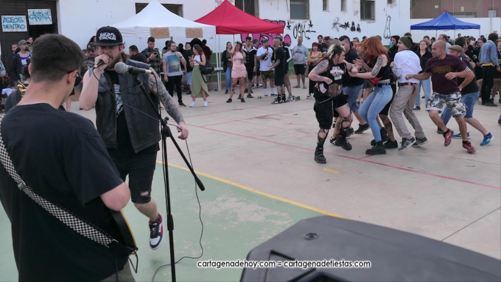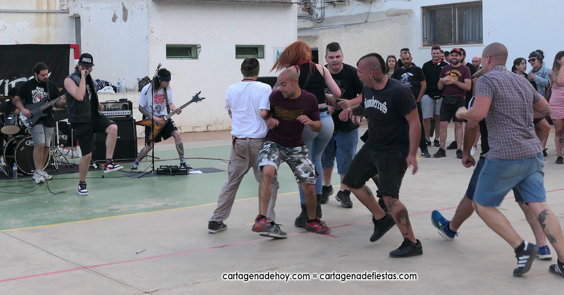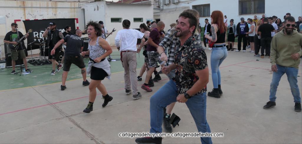 La cuarta edición 'Rebel Yell' celebrado en el patio de la asociación de vecinos Barrio de la Concepción combinó un mercadillo de artesanía, complementos, libros y discos, entre otros productos, con la música del grupo ilicitano 'Ratizidas', que generaron en la pista que un grupo forman los que en el rock heavy se conoce como 'olla o pogo', que consiste en bailar dando saltos y empujones de forma alocada.