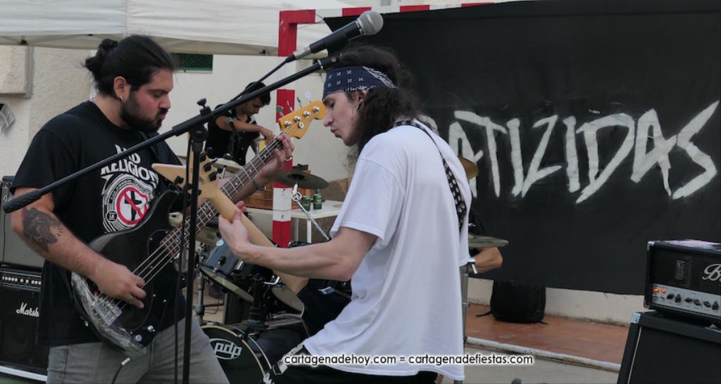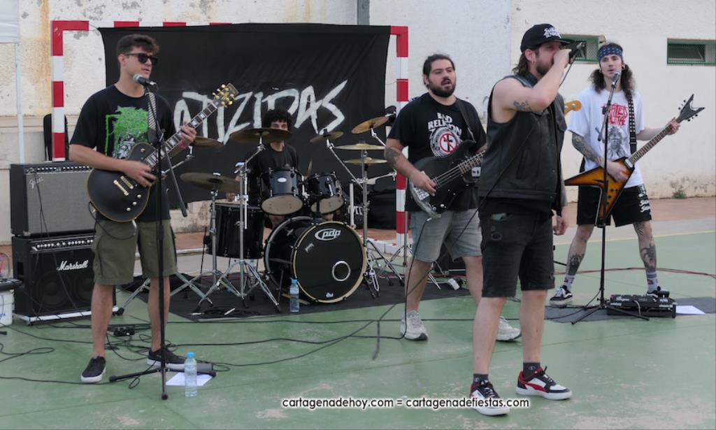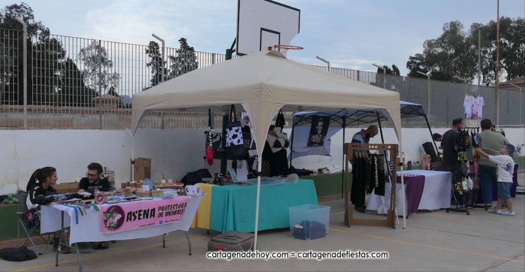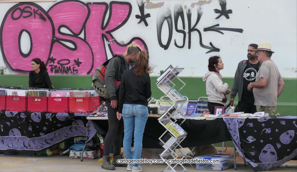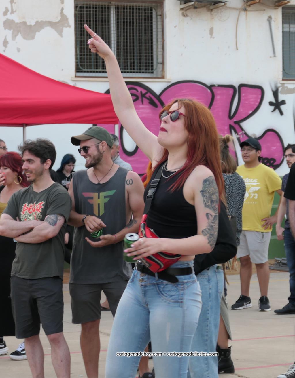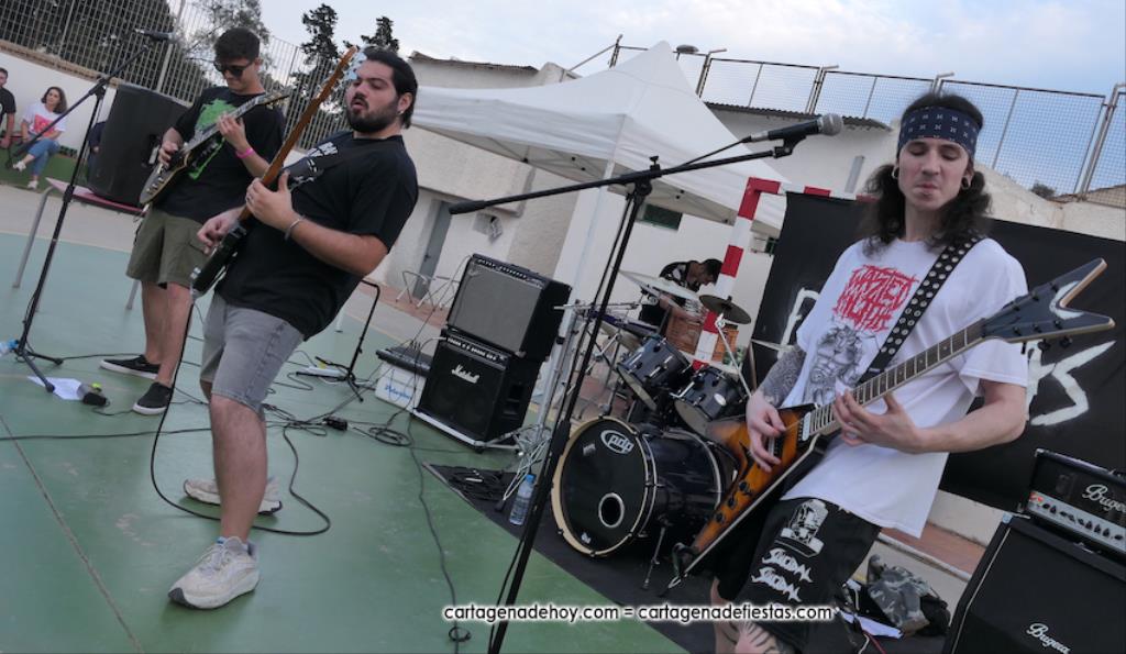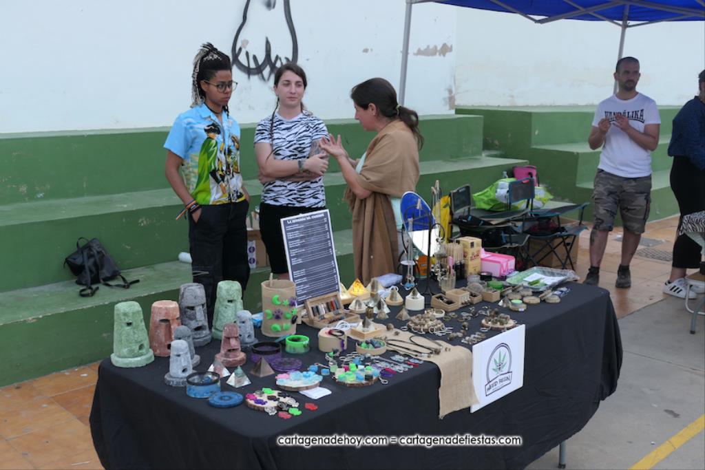 La cuarta edición 'Rebel Yell' celebrado en el patio de la asociación de vecinos Barrio de la Concepción combinó un mercadillo de artesanía, complementos, libros y discos, entre otros productos, con la música del grupo ilicitano 'Ratizidas', que generaron en la pista que un grupo forman los que en el rock heavy se conoce como 'olla o pogo', que consiste en bailar dando saltos y empujones de forma alocada.