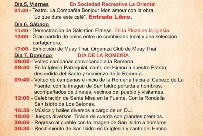 La popular jornada reunirá a cientos de personas en el paraje del Cabezo de la Fuente dentro de unas fiestas patronales que en las dos jornadas previas ofrece teatro, bolos y exhibiciones de ‘Salsation Fitness’ y ‘Muay Thai’.