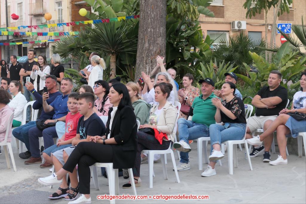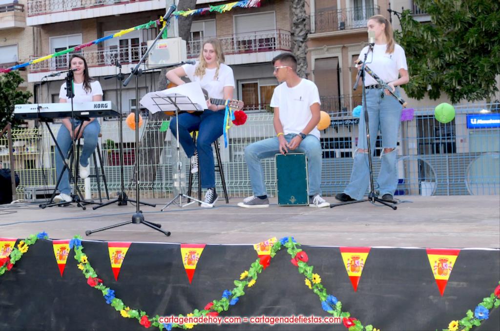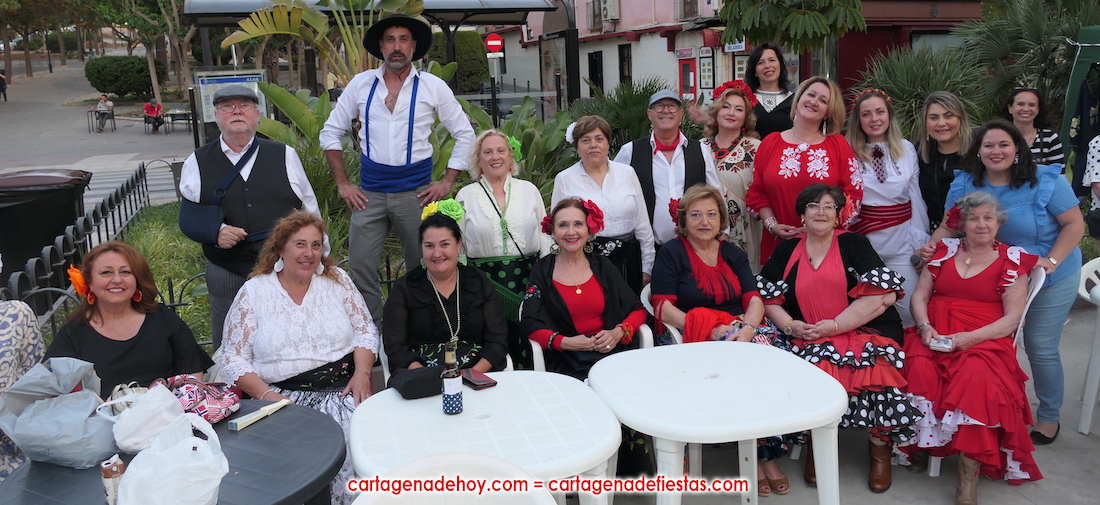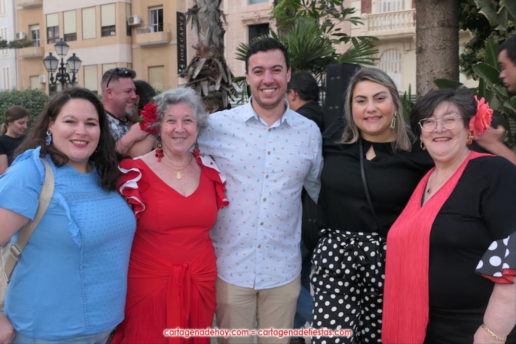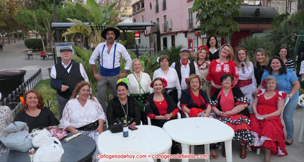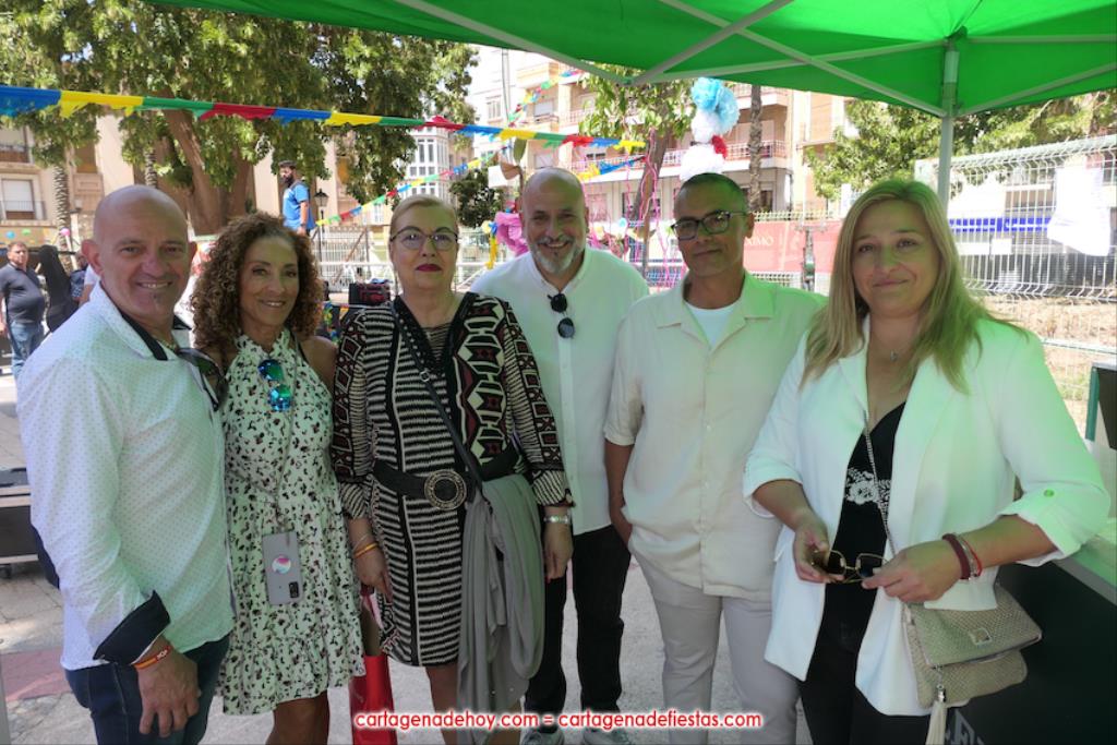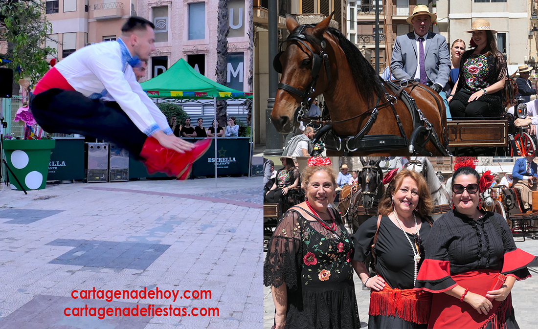 Esta mañana han llegado los carruajes del Club Enganches de Cartagena, completando la matinal la acetuación de Eddie Rever y el baile de Triana Fusión, mientras que esta tarde hay taller de sevillasn, canciones el mundo (20 horas) y concierto de Adrián ruiz (22 horas). La fiesta culminará el domingo con Mayto (12 horas) y el monólogo infantil ‘El cuento del cocinero’. El ambiente está siendo muy bueno en la remodelada plaza (ahora con entorno peatonal), contando entre sus visitantes con Tomás Ojaos, quien fue el primer presidente de la asociación de vecinos de Barrio de San Diego, siendo relevado en el pasado mes de enero por Alejandro Ojados.