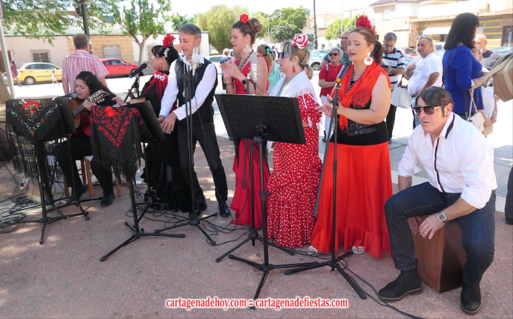 Después, más voces del grupo rociego y bailes con sabor andaluz, a los que se incorporó el baile de sevillanas del grupo de Belén Sánchez. Una rifa familiar puso fin a una jornada que contó con la colaboración del Ayuntamiento, de las asociación de vecinos y del club de mayores. Entre los visitantes de la jornada pudimos ver a Noelia Arroyo, alcaldesa y candidata del PP; Ana Belén Castejón, vicealcaldesa y candidata de Sí Cartagena; y Salvador Lara, candidato de Partido Cartagenerista.