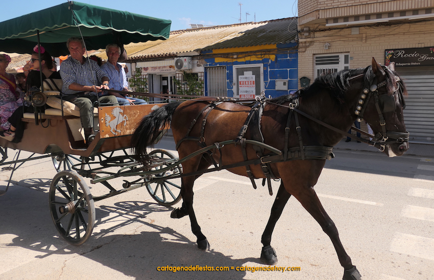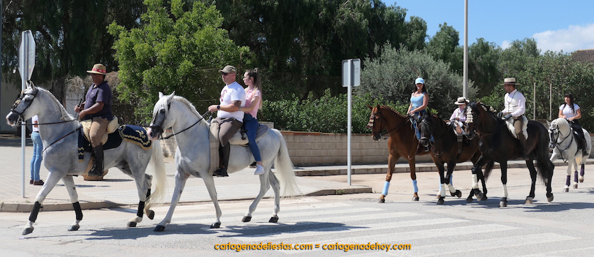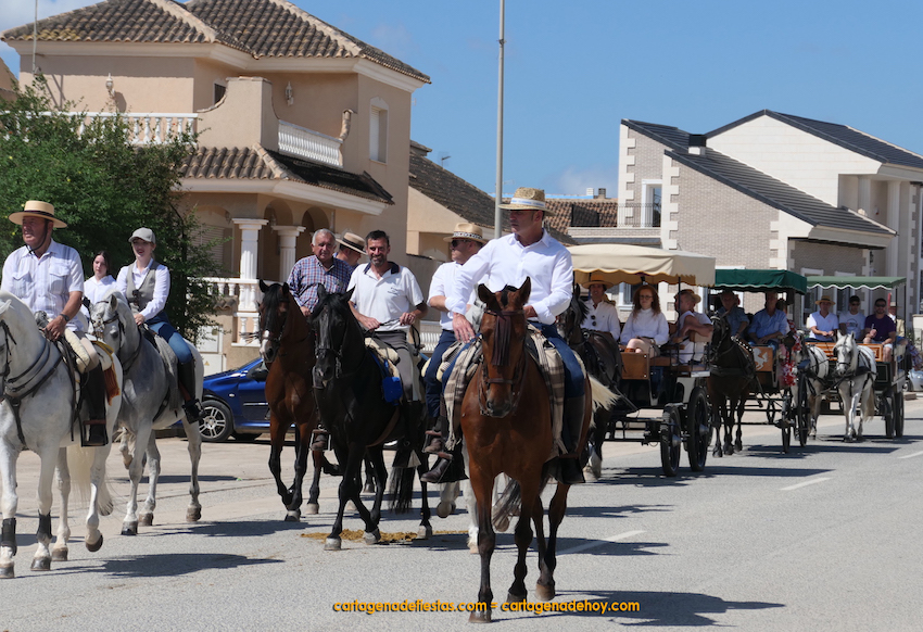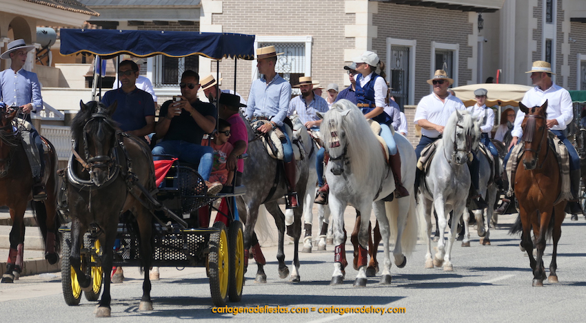 El punto de partido del 'Día del caballo' fue el recinto festero, para después iniciarse un desfile ecuestre por el pueblo, a cuya conclusión los participantes degustaron un almuerzo preparado por la comisión de fiestas, que fue la antesalada de una misa rociera oficiada por el párroco, José Ramón Gómez, que contó con el acompañamiento del coro 'Aires del rocío'.