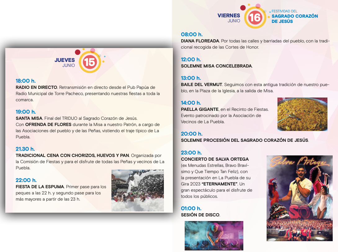 Las fiestas patronales obsequia esta noche a peñas, vecinos y visitantes con huevos, pan y chorizos antes de comenzar la fiesta de la espuma en una jornada en la que habrá ofrenda de flores al Sagrado Corazón de Jesús, patrono poblense que este viernes celebra su gran día con misa, procesión, baile del vermú, arroz gigante y concierto de Salva Ortega.