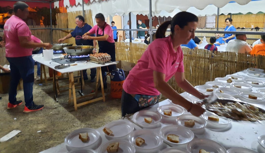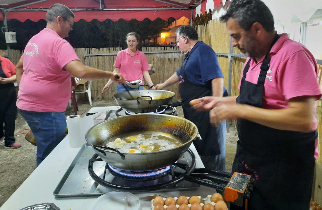 Chorizo y huevos también pueden servir como sensor. Me explico. La comisión de fiestas de La Puebla distribuyó en 2022 la misma cantidad que anoche, pero entonces sobró algo y esta vez no, además de que la cola fue más larga. Es evidente que las fiestas postpandémica siguen al alza. También tuvo una gran participación la fiesta de la espuma con decenas de personas, especialmente niños y jóvenes, aunque también hubo algunos adultos.