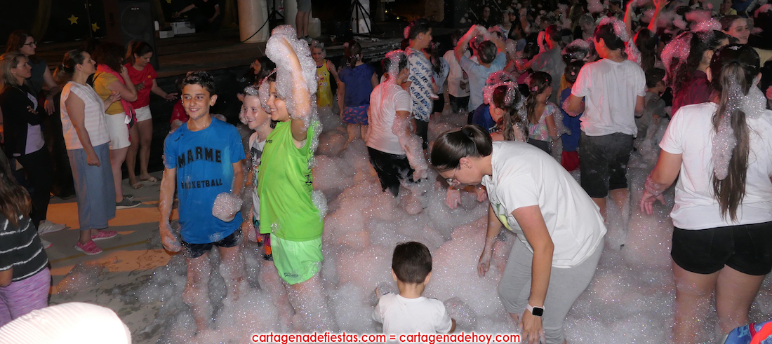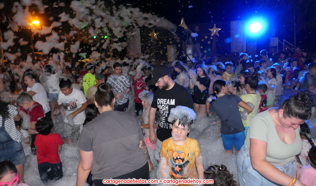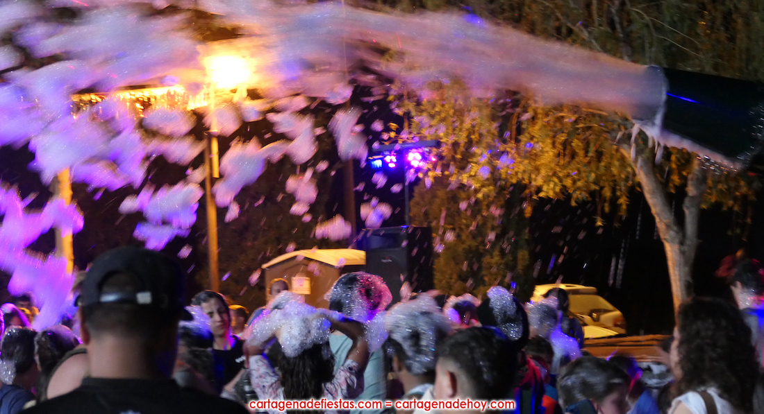 La popular noche de las fiestas patronales arrancó con el reparto de 25 kilos de chorizos con 720 huevos fritos, que este año se agotaron por la vía rápida, para después coger el protagonismo el gran cañón de espuma.