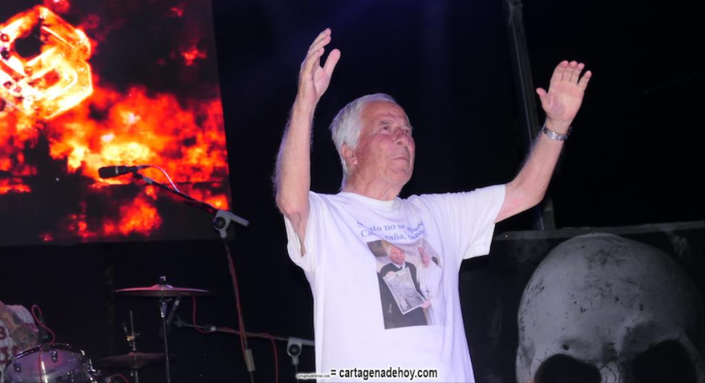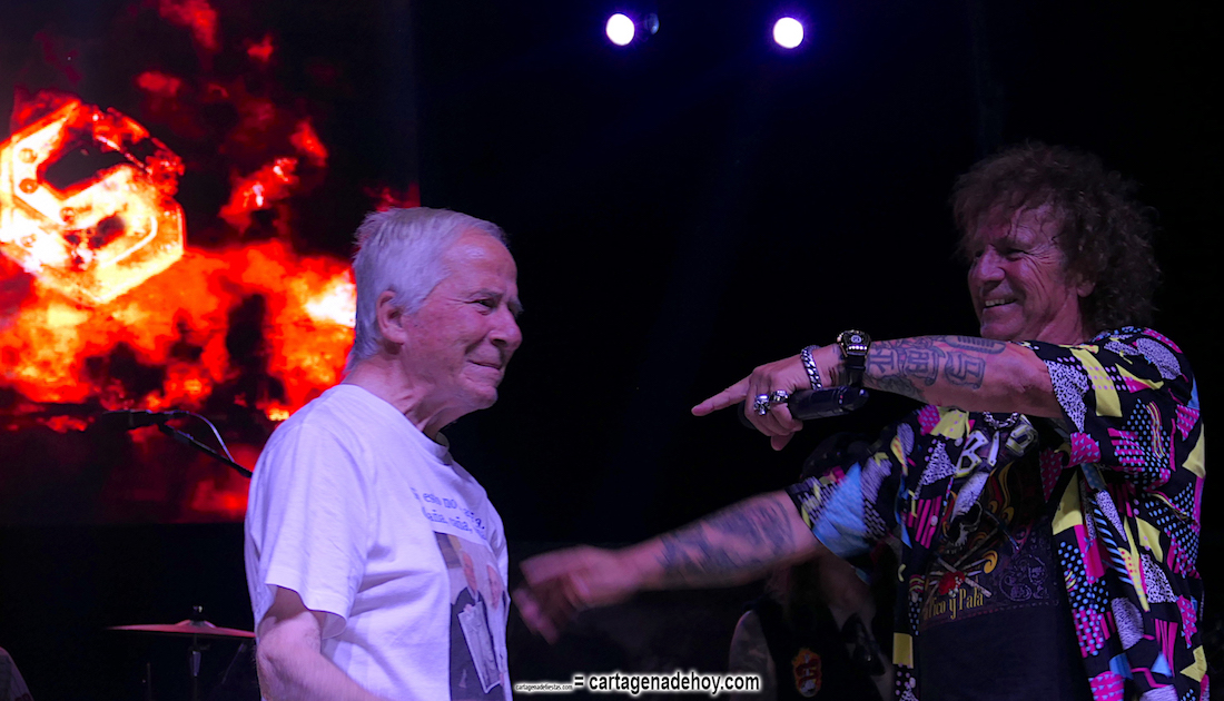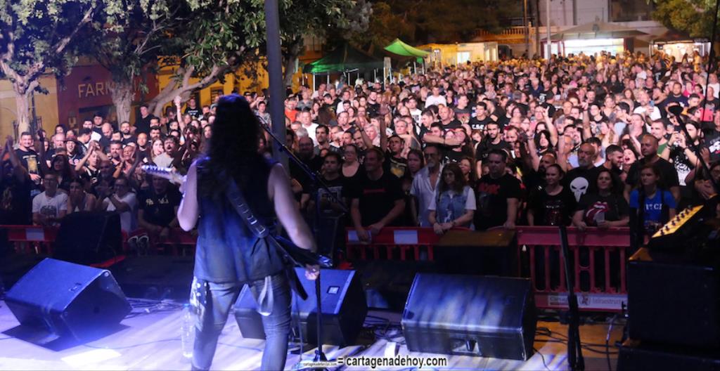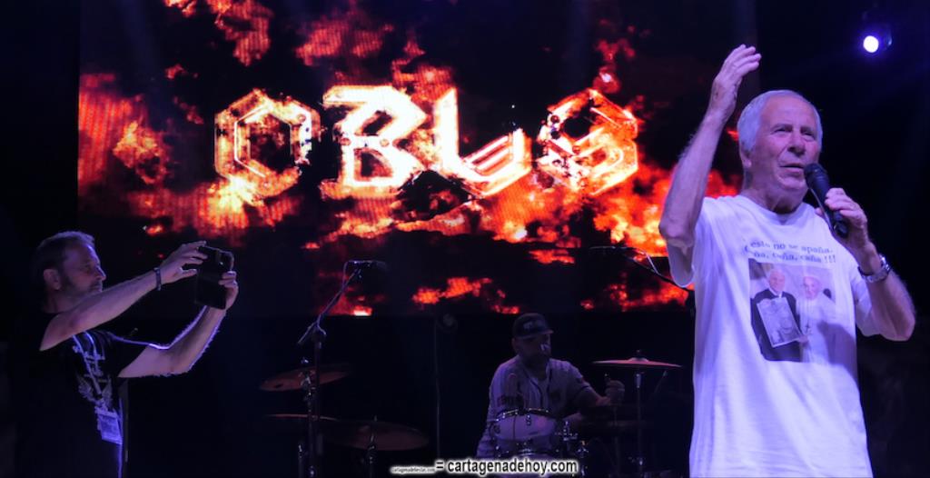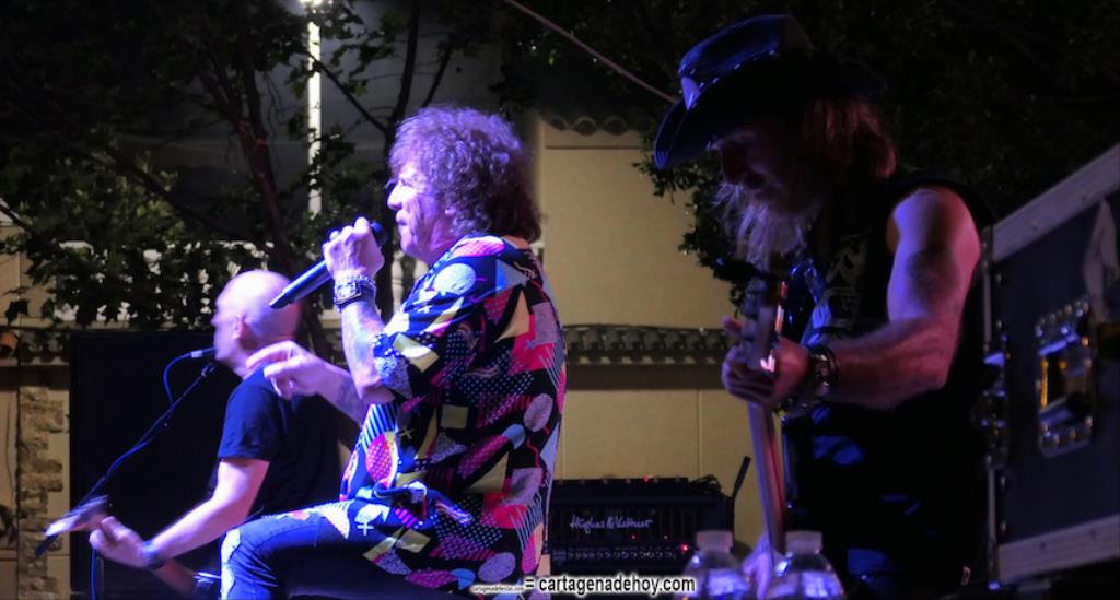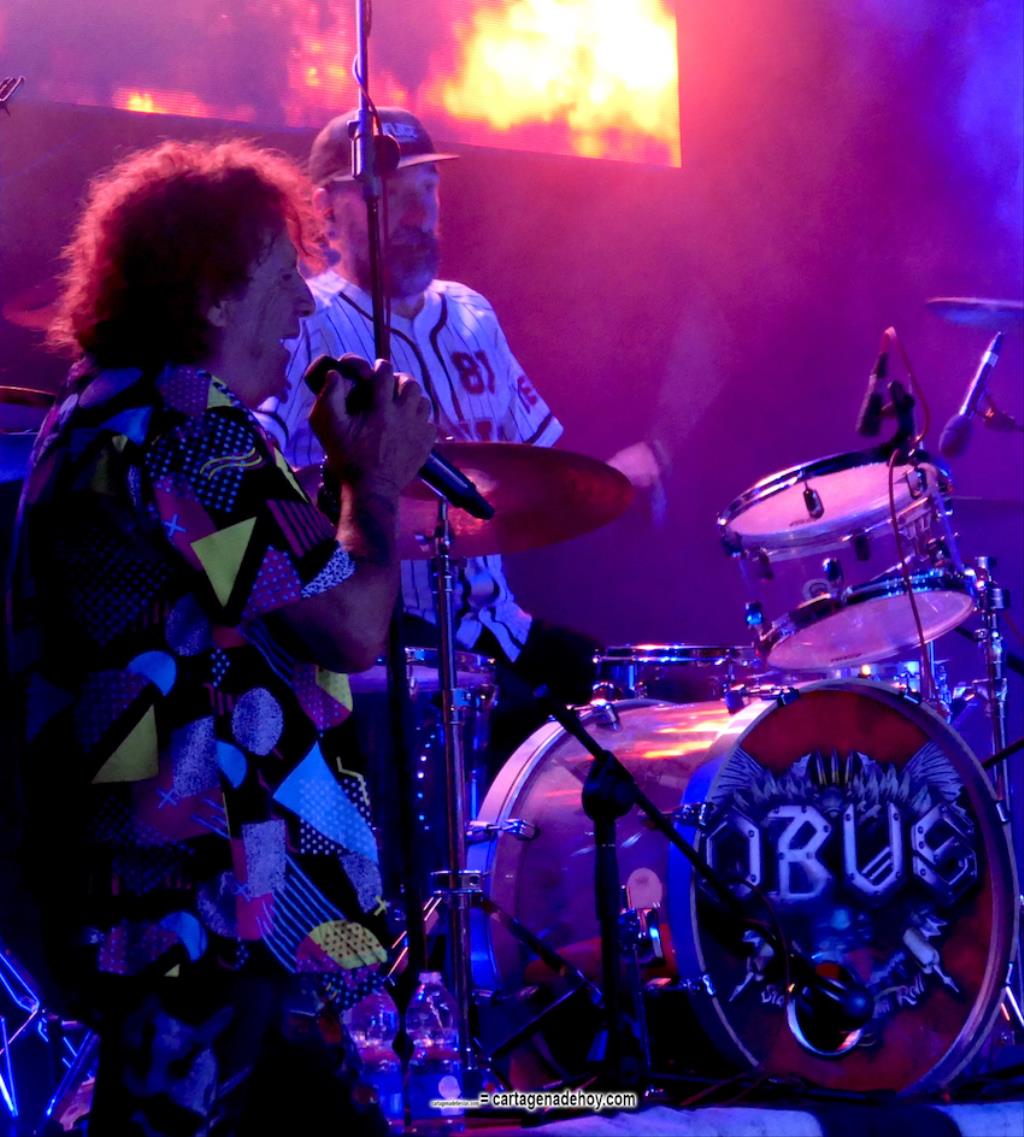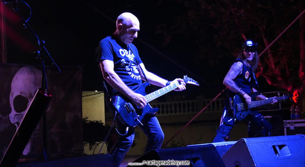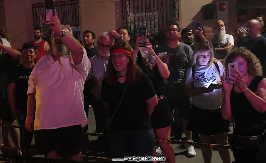 Vamos al capítulo musical, que comenzó sobre las diez y media de la noche y alcanzó las cuatro de una madrugada en la que, poco después,  regresó la lluvia a Cartagena. Estupendas actuaciones de ‘Sin tregua’, ‘Sharabia’ y ‘Ángel Negro’, que también tienen a sus fieles conquistados merced a su buenhacer y calidad sonora, dentro de las variantes del rock que ofrecieron. Minutos antes de las dos de la madrugada apareció el cuarteto de ‘Obús’, siendo el último en subir al escenario un Fortu con camisa colorida, lo que contrastó en un ambiente donde la mayoría lucían las tradicionales camisetas negras. Comenzó con “Necesito más” y no faltó en su repertorio el súperconocido ‘Va a estallar el obús’ ni el ‘Dinero, dinero’ o el ‘Que te jodan’. Maestro sobre las tablas, fue puntal en mantener el júbilo entre el público. “¡¿Dónde estamos?!”, preguntaba a gritos. Unos decían que en Cartagena y otros que en Vista Alegre. Pues no… “¡Estamos en un concierto de rock…, arriba las manos!”.