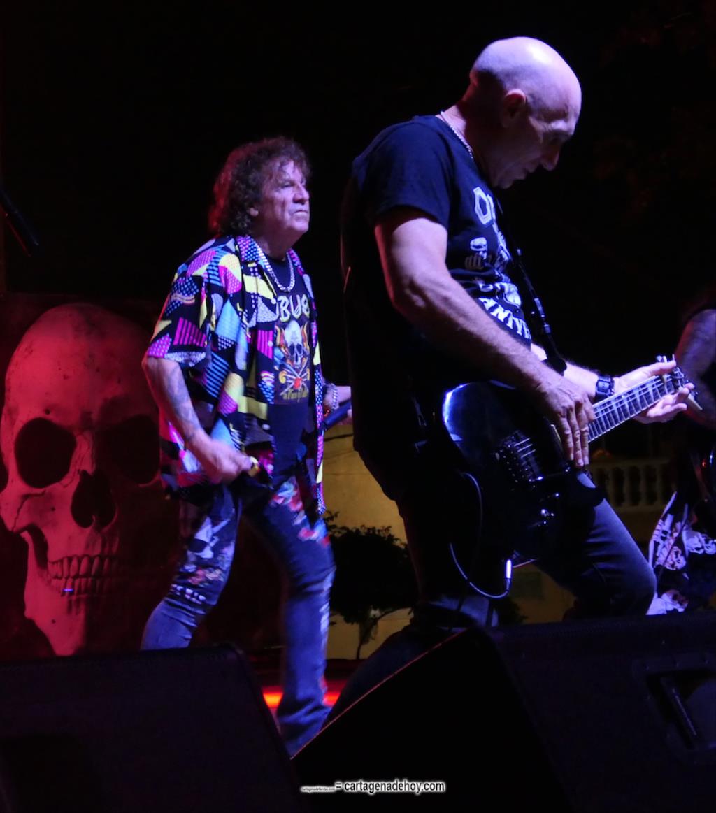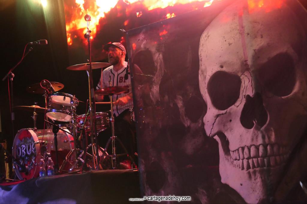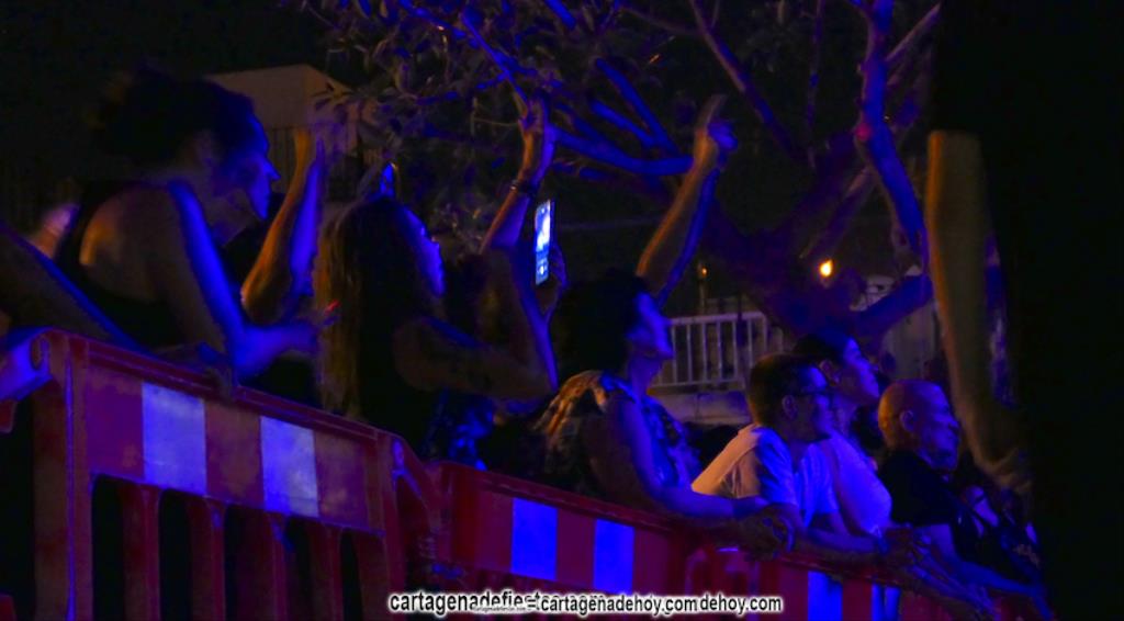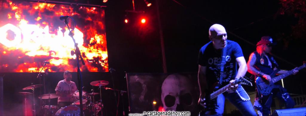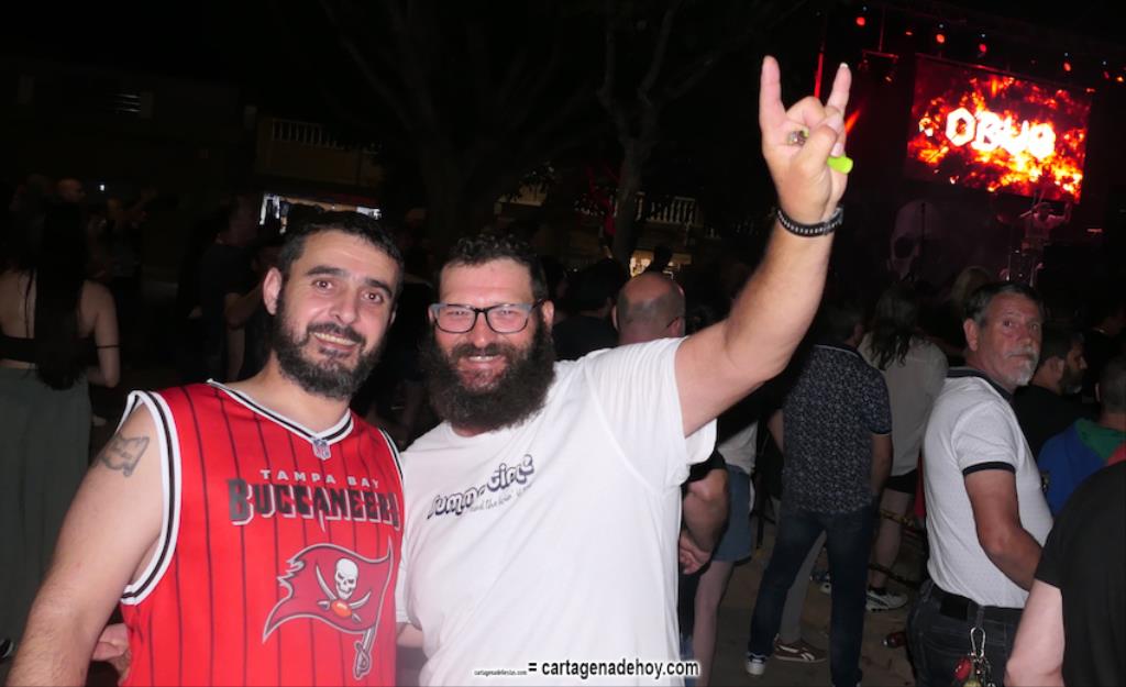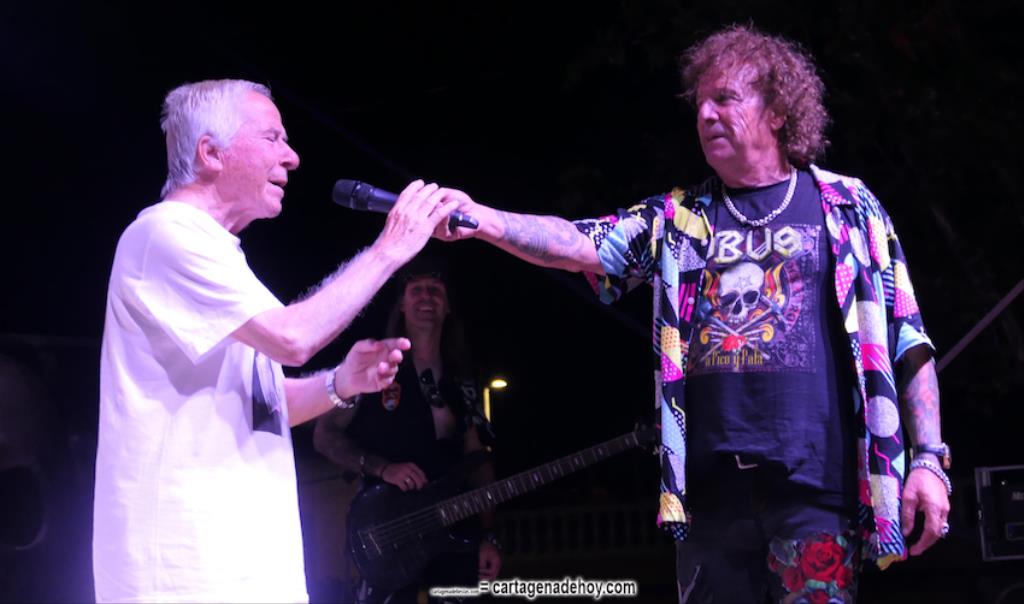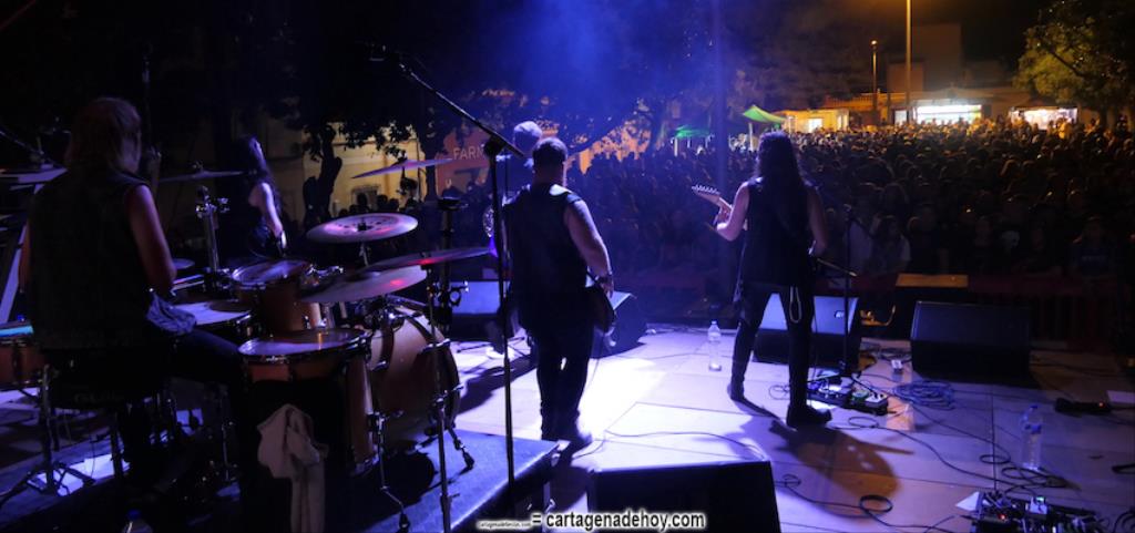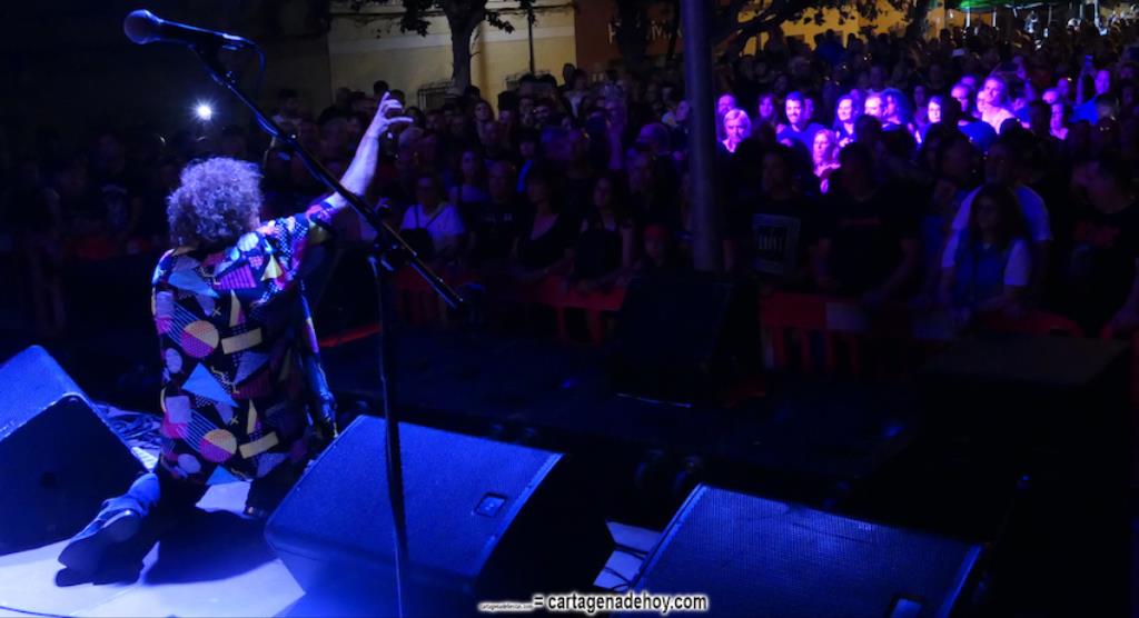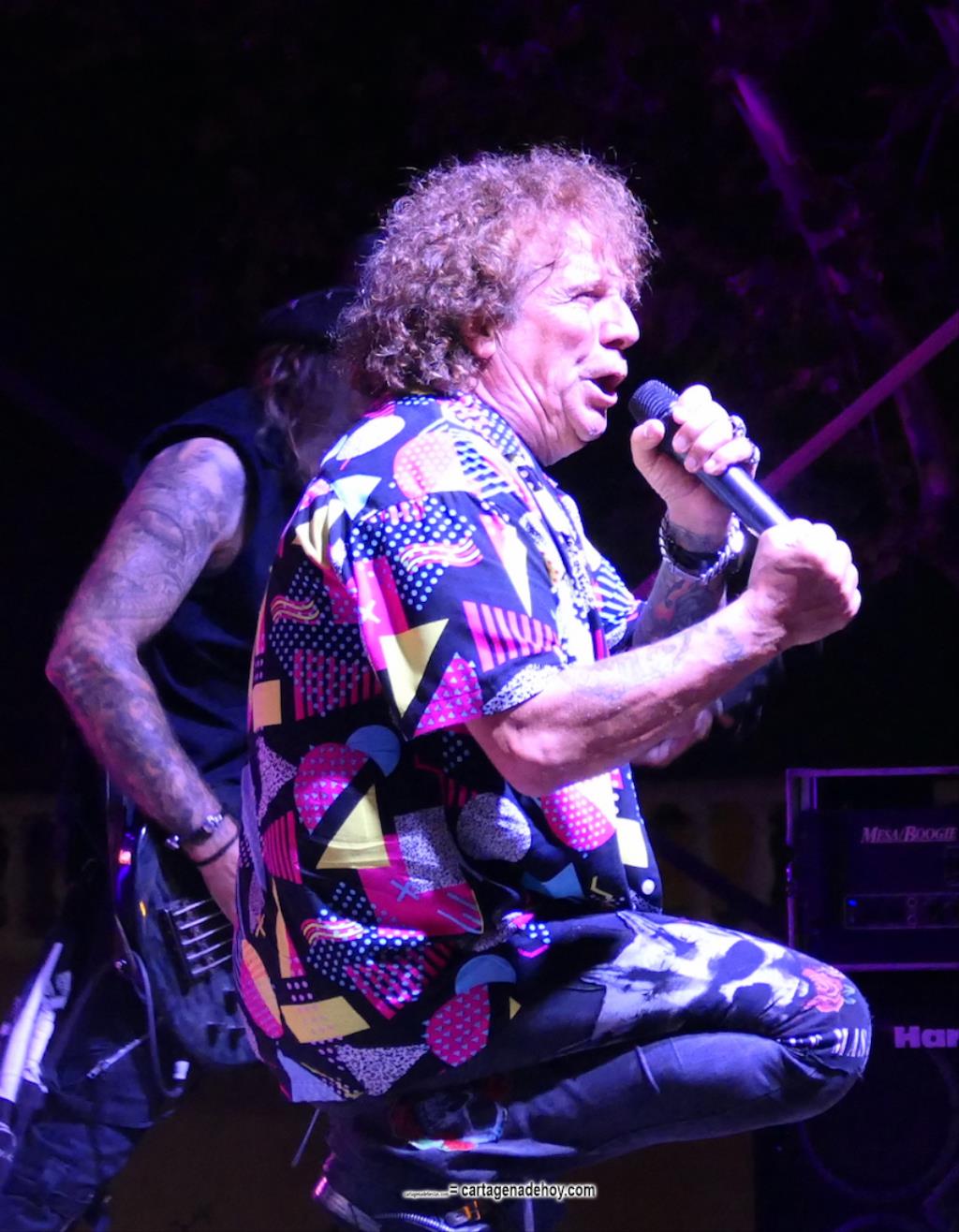 Vamos al capítulo musical, que comenzó sobre las diez y media de la noche y alcanzó las cuatro de una madrugada en la que, poco después,  regresó la lluvia a Cartagena. Estupendas actuaciones de ‘Sin tregua’, ‘Sharabia’ y ‘Ángel Negro’, que también tienen a sus fieles conquistados merced a su buenhacer y calidad sonora, dentro de las variantes del rock que ofrecieron. Minutos antes de las dos de la madrugada apareció el cuarteto de ‘Obús’, siendo el último en subir al escenario un Fortu con camisa colorida, lo que contrastó en un ambiente donde la mayoría lucían las tradicionales camisetas negras. Comenzó con “Necesito más” y no faltó en su repertorio el súperconocido ‘Va a estallar el obús’ ni el ‘Dinero, dinero’ o el ‘Que te jodan’. Maestro sobre las tablas, fue puntal en mantener el júbilo entre el público. “¡¿Dónde estamos?!”, preguntaba a gritos. Unos decían que en Cartagena y otros que en Vista Alegre. Pues no… “¡Estamos en un concierto de rock…, arriba las manos!”.