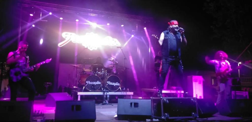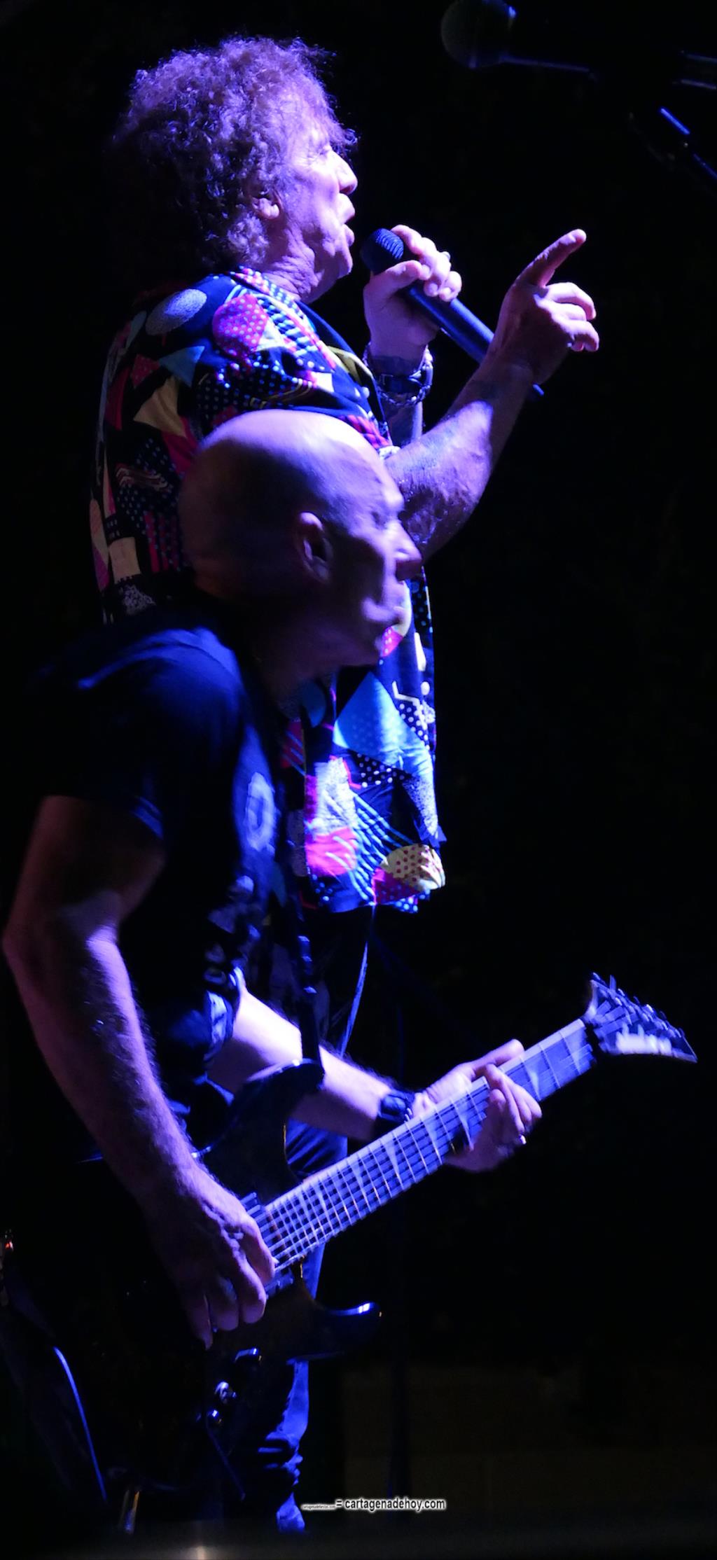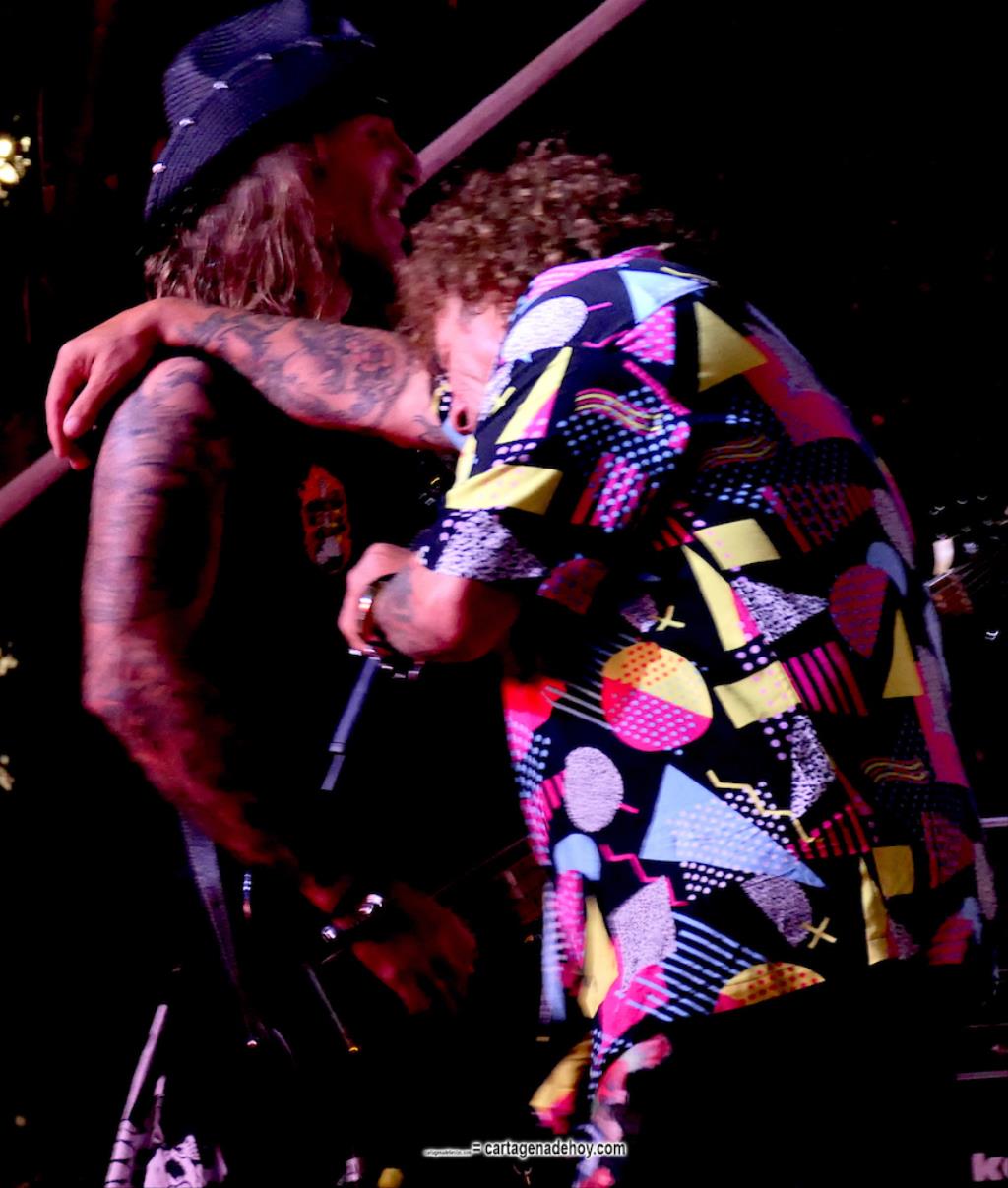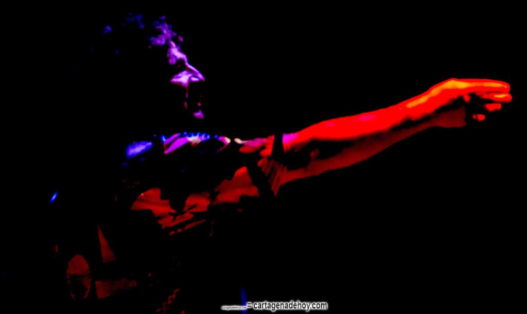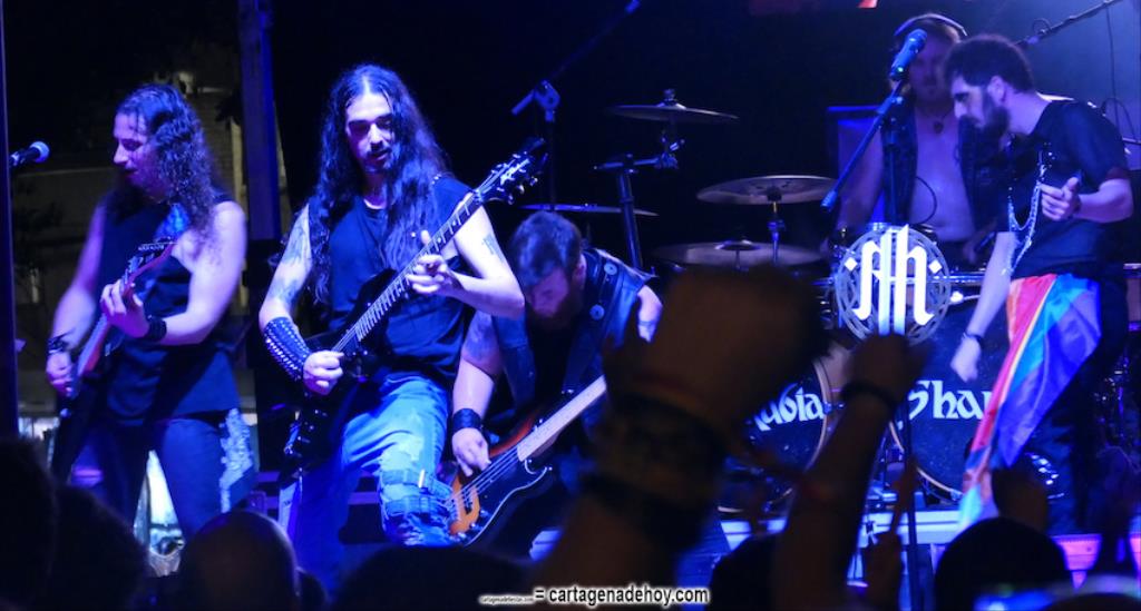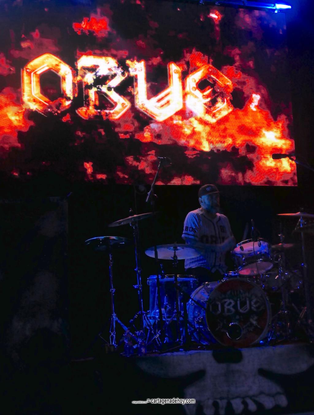 Vamos al capítulo musical, que comenzó sobre las diez y media de la noche y alcanzó las cuatro de una madrugada en la que, poco después,  regresó la lluvia a Cartagena. Estupendas actuaciones de ‘Sin tregua’, ‘Sharabia’ y ‘Ángel Negro’, que también tienen a sus fieles conquistados merced a su buenhacer y calidad sonora, dentro de las variantes del rock que ofrecieron. Minutos antes de las dos de la madrugada apareció el cuarteto de ‘Obús’, siendo el último en subir al escenario un Fortu con camisa colorida, lo que contrastó en un ambiente donde la mayoría lucían las tradicionales camisetas negras. Comenzó con “Necesito más” y no faltó en su repertorio el súperconocido ‘Va a estallar el obús’ ni el ‘Dinero, dinero’ o el ‘Que te jodan’. Maestro sobre las tablas, fue puntal en mantener el júbilo entre el público. “¡¿Dónde estamos?!”, preguntaba a gritos. Unos decían que en Cartagena y otros que en Vista Alegre. Pues no… “¡Estamos en un concierto de rock…, arriba las manos!”.