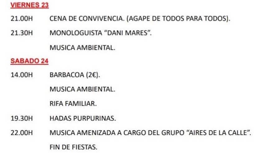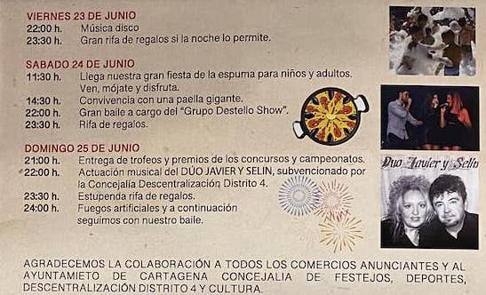 Agenda festera de La Vaguada y Nueva Cartagena
