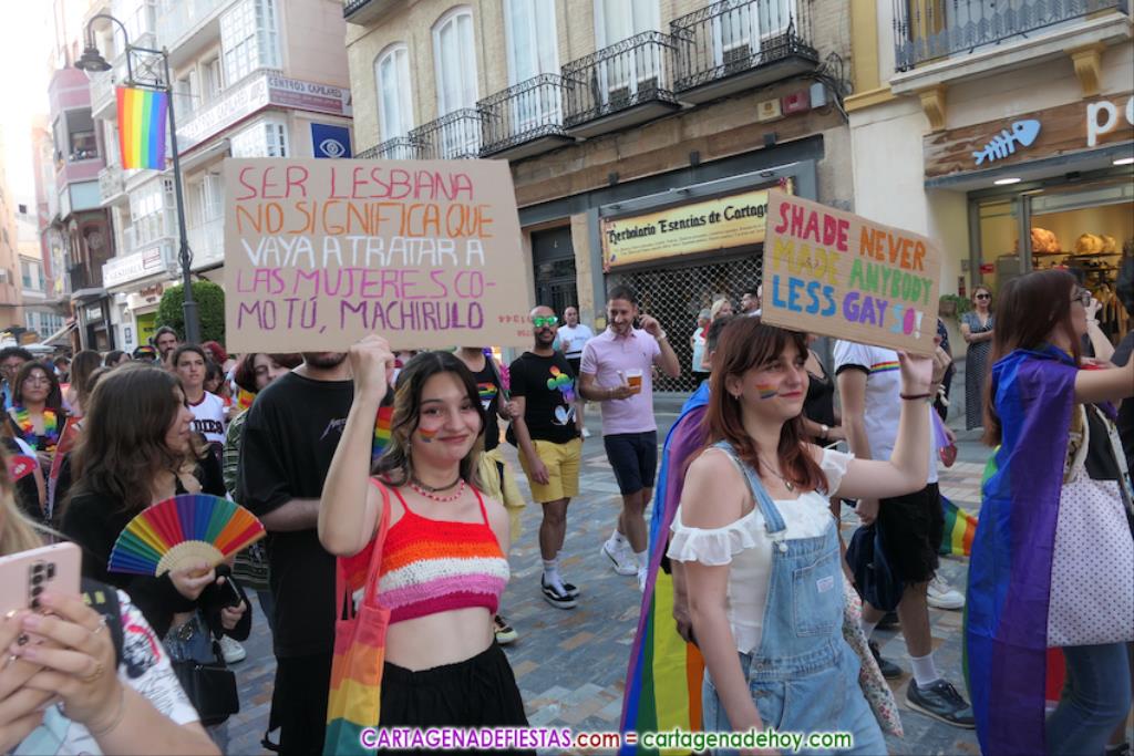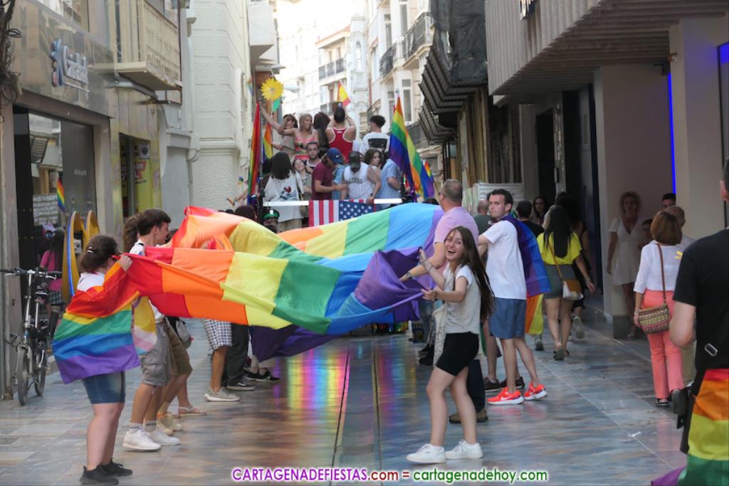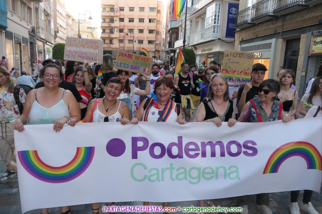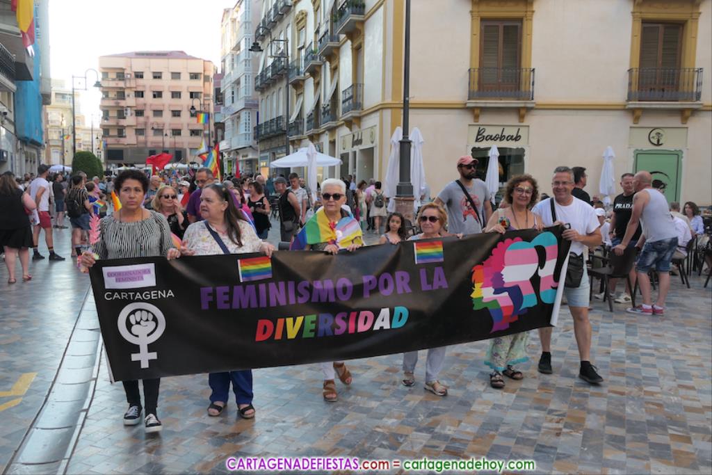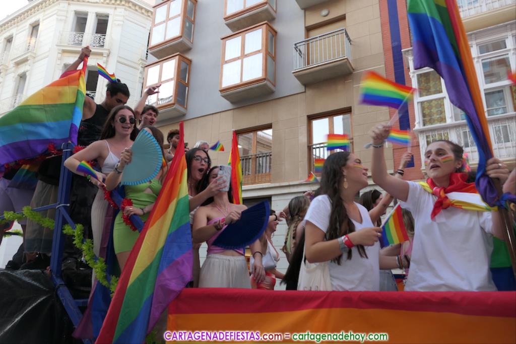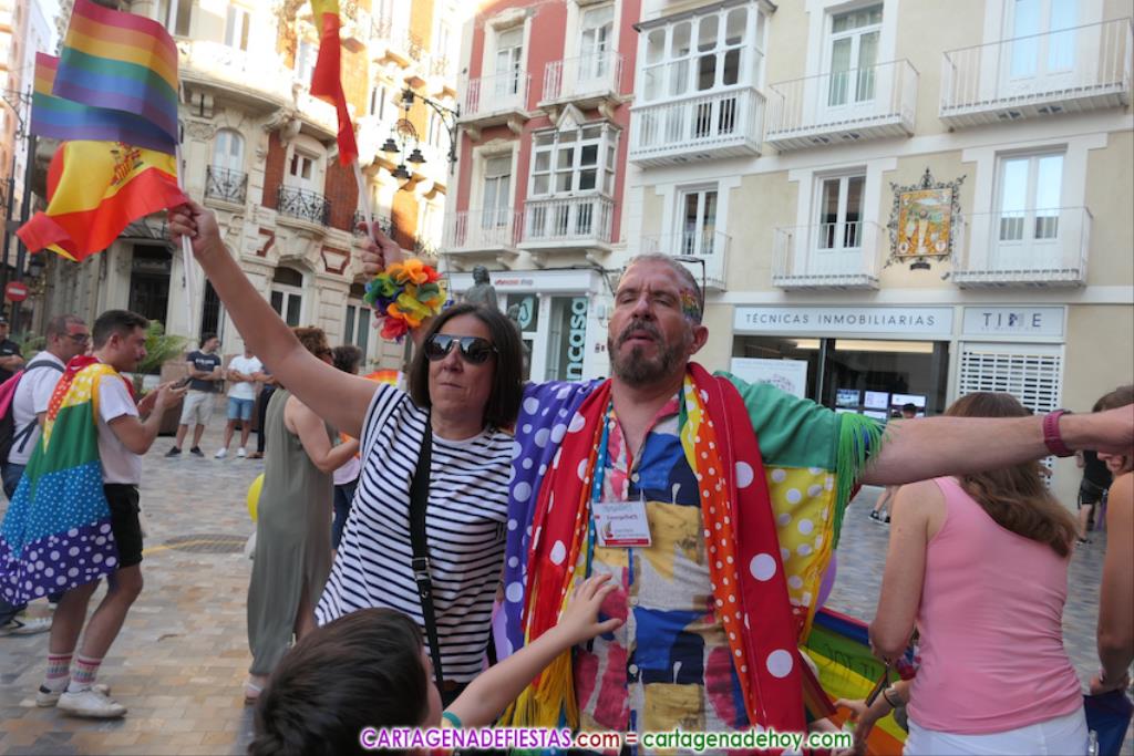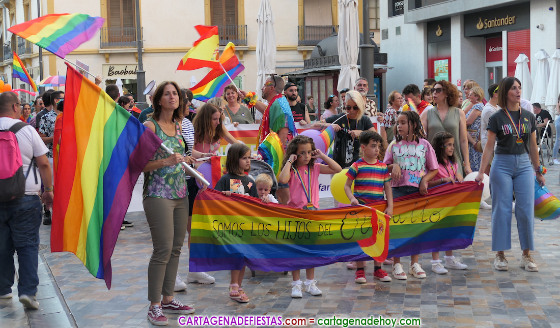 ‘Familias LGTBIQ+. Abrazando la Diversidad Familiar'. Con este lema centrado en núcleos familiares surgidos de núcleos familiares no típicos se puso en marcha el colorido desfile cartagenero para evitar que suceda como en Italia, donde la Fiscalía ha pedido formalmente la rectificación de 33 certificados de nacimiento solicitados por parejas de madres y registrados a partir de 2017 y la retirada de los apellidos de la madre no gestante. En nuestro caso, en España se lucha por evitar que esa medida llegue y que todas las familias mantengan sus plenos derechos como tales. "Parejas de mujeres y de hombres están sufriendo estigmatización, no debemos permitirlo", proclaman.