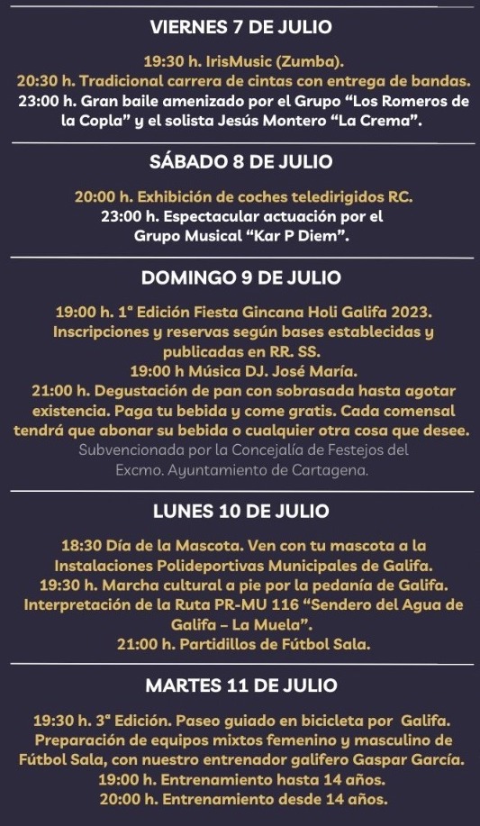 Programa de los próximos días de unos festejos que culminarán el domingo 16 de julio.