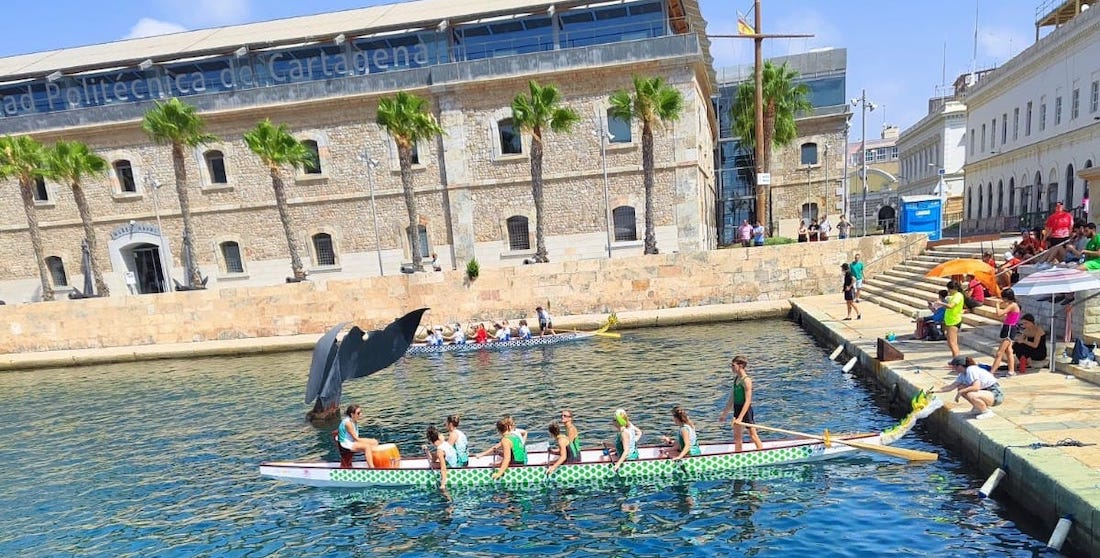 Los festejos urbanos tuvieron un novedoso capítulo el sábado en el puerto con una regata de ‘dragon boat’ y un desayuno de época modernista. GALERÍA DE FOTOS (pinchar aquí)