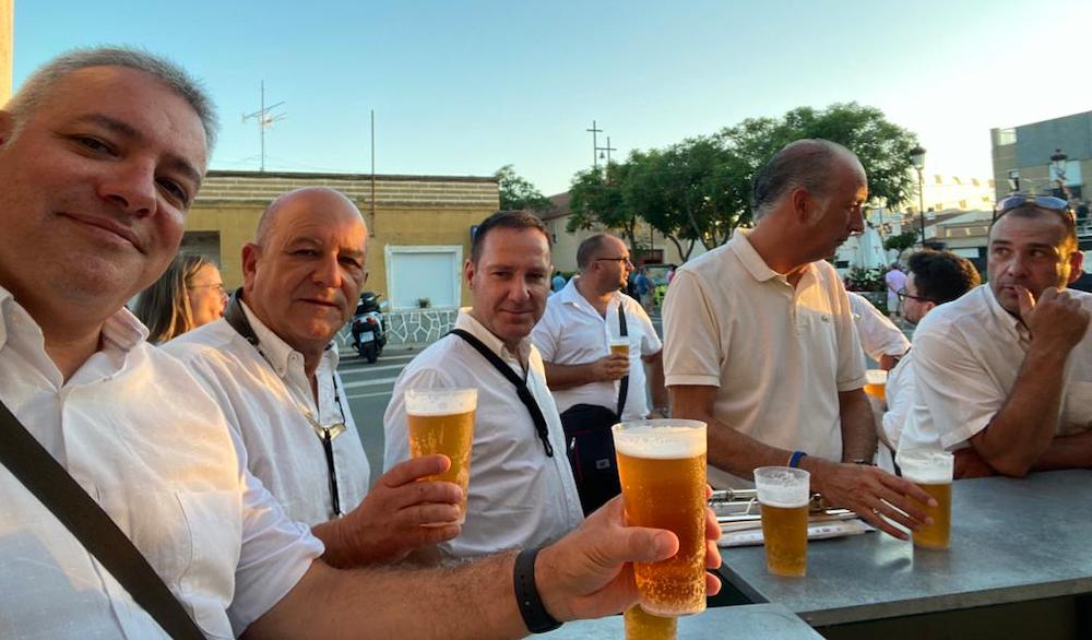 Y tras una calurosa marcha... las refrescantes cervezas para el colectivo musical que dirige José Tudela