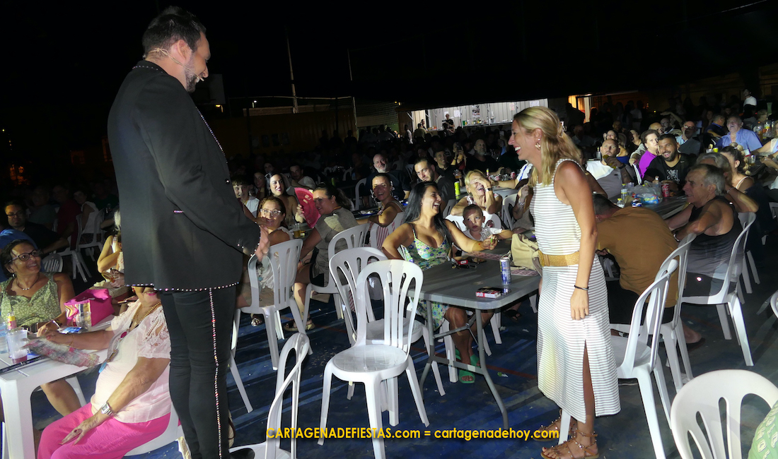 El cierre tuvo lugar en la pista polideportiva situada junto al consultorio médico, la cual acogió a varios cientos de personas entre residentes y visitantes para disfrutar con una revista cuyo título se inspira en la música de 'Acompáñame...' que hace varias décadas popularizó el programa 'Sorpresa, sorpresa' que presentaba Isabel Gemio. Lo cierto es que el espectáculo, pese a comenzar con más de una hora de retraso, respondió a lo esperado, pues comenzó con la vedette Sandra Bruman y un muy buen cuarteto de baile, para después ir ofreciendo canción española (con tributo a grandes voces como Rocío Jurado o Isabel Pantoja), un espectáculo de 'reina drag' y la duplicidad de magia y humor de Mago Lumaki, quien interactuó entre las mesas con los presentes, al igual que también hizo la vedette de El Molino de Benidorm, quien demostró sus dotes para cantar y para colocar sonrisas entre los espectadores con sus comentarios. Por cierto, la murciana también estará el 14 de agosto en Los Gallos de Miranda. La noche en Vista Alegre resultó muy agradable, aderezada también por ráfagas de aire que facilitaban una temperatura agradable.