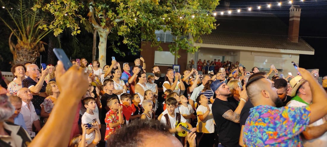 El epílogo son los fuegos artificiales explotando en el cielo, además de continuar la convivencia en torno a los productos recogidos en el desfile de carrozas o adquiridos en la cantina, siendo el conjunto musical ‘La Prima’ los encargados de amenizar la velada.