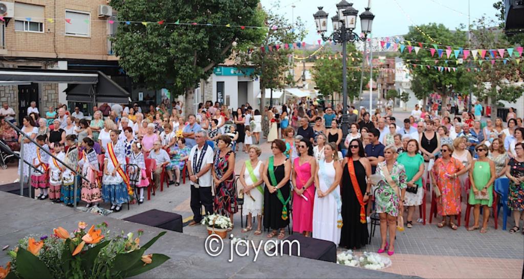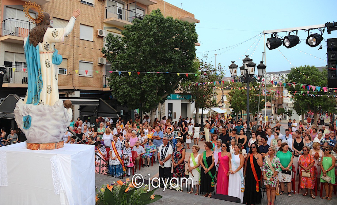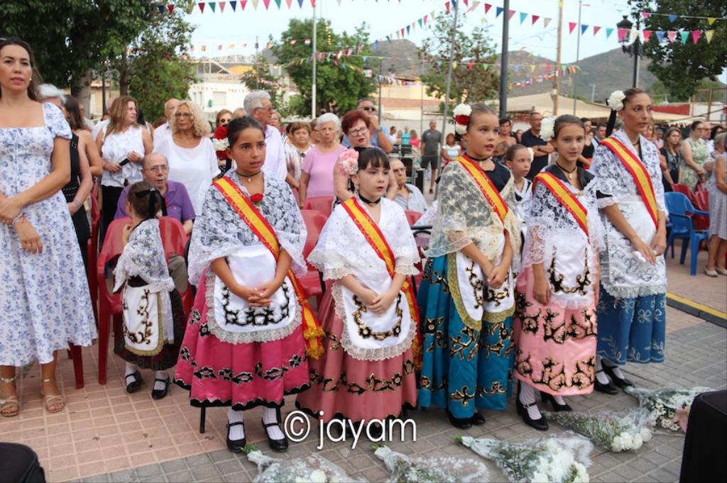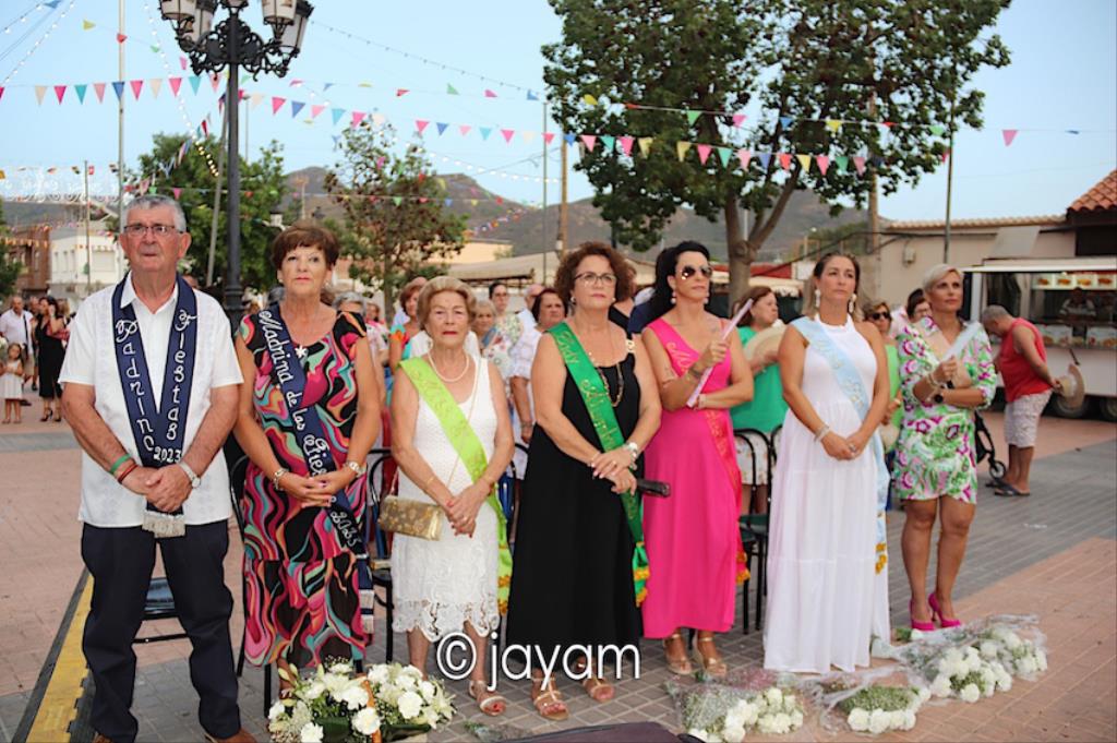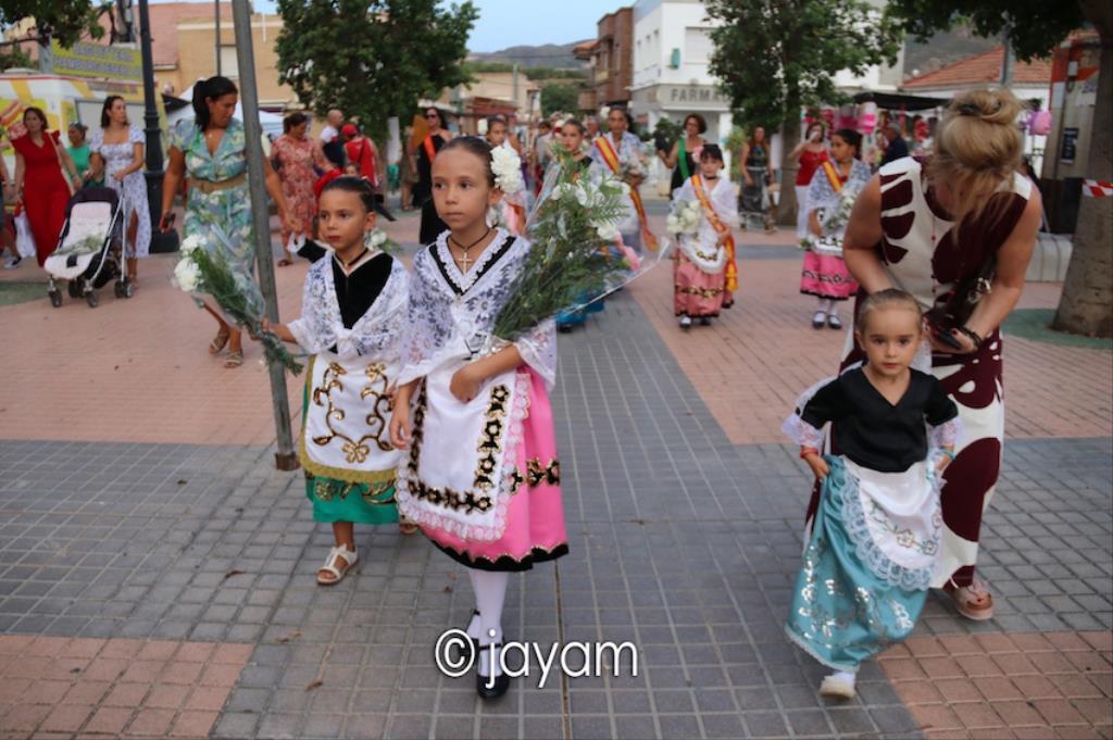 Son los dos días principales de las fiestas patronales en las que apenas hay descanso, pues incluso ambas madrugadas presentan atractivos, pues la diana comenzó a las cinco de la mañana. Por la tarde, al paso que marcaba la banda de cornetas y tambores de Diego García, tuvo lugar el pasacalles de recogida de la corte de honor de este año. Después, ofrenda floral en la eucaristía oficiada por el sacerdote Andrés Vera frente a la fachada de la iglesia.