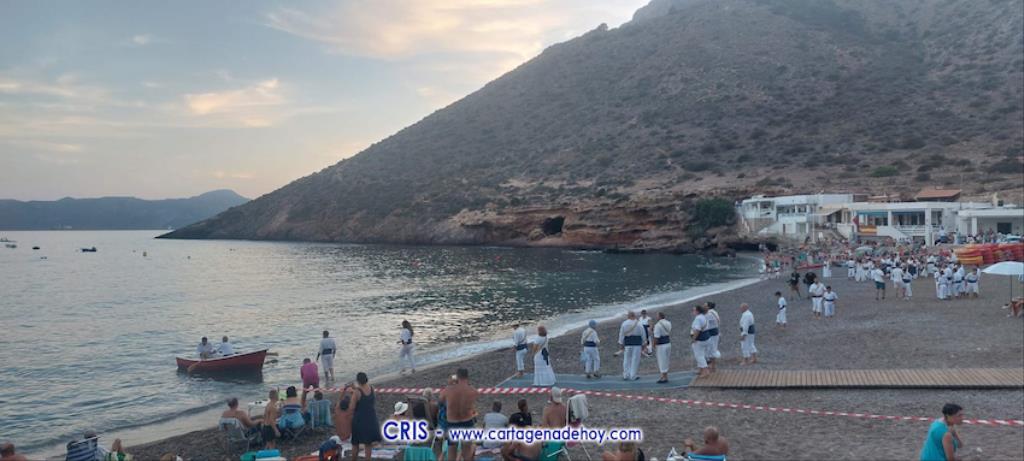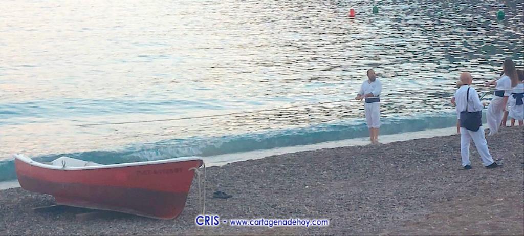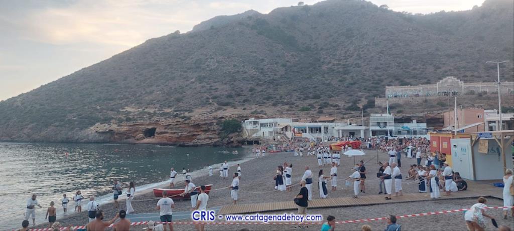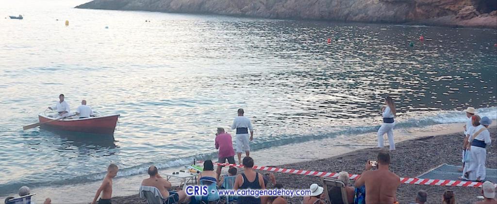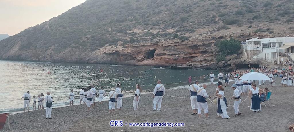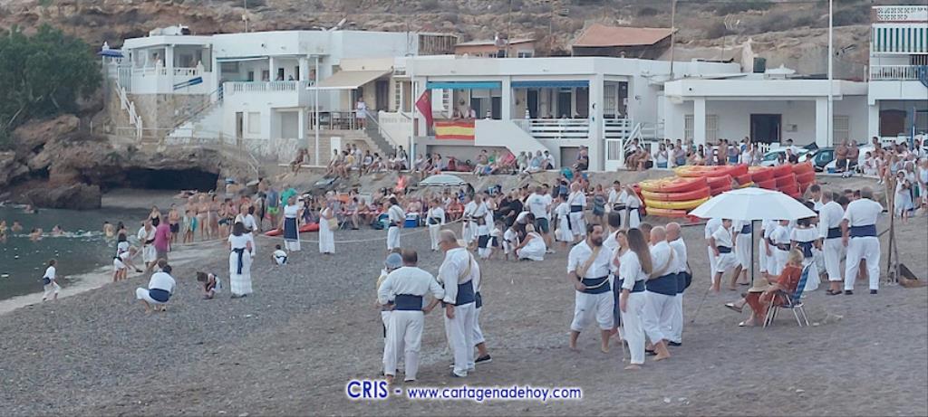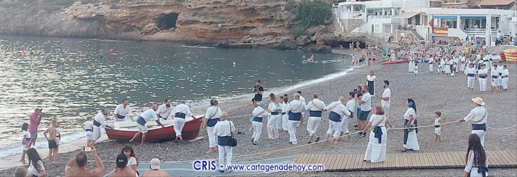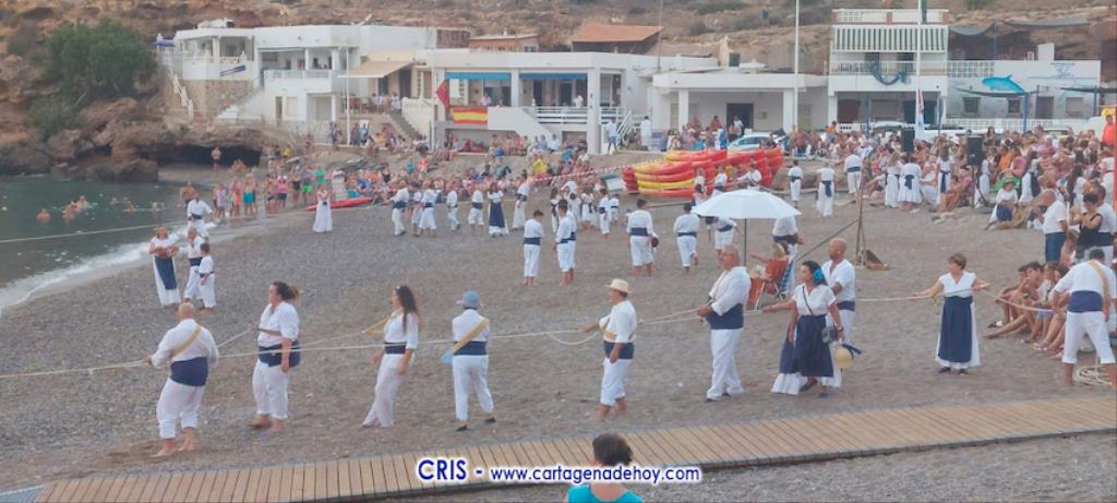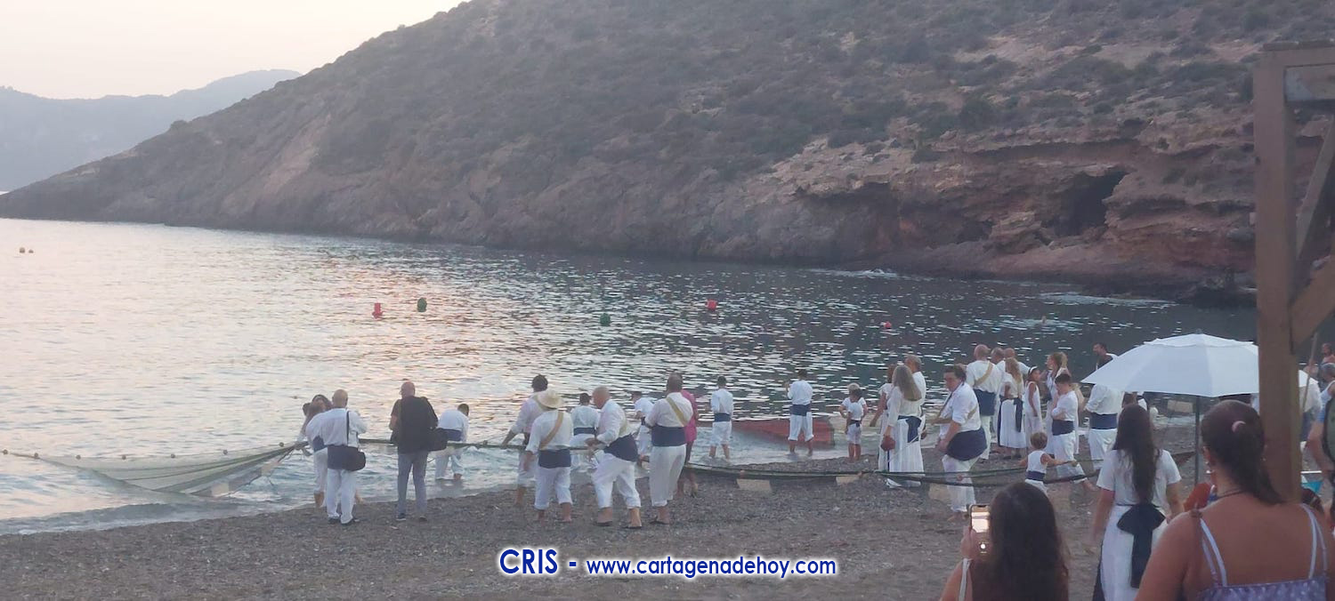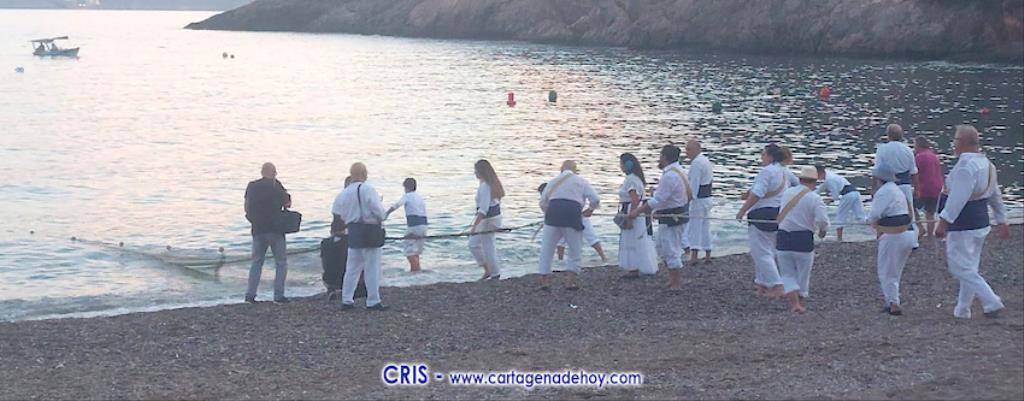 En un punto de la costa del oeste cartagenero cada año, desde finales de la primera década de este siglo (dos años no hubo por la pandemia), tiene lugar la representación de cómo nuestros antepasados se abastecían de peces con un arte singular.