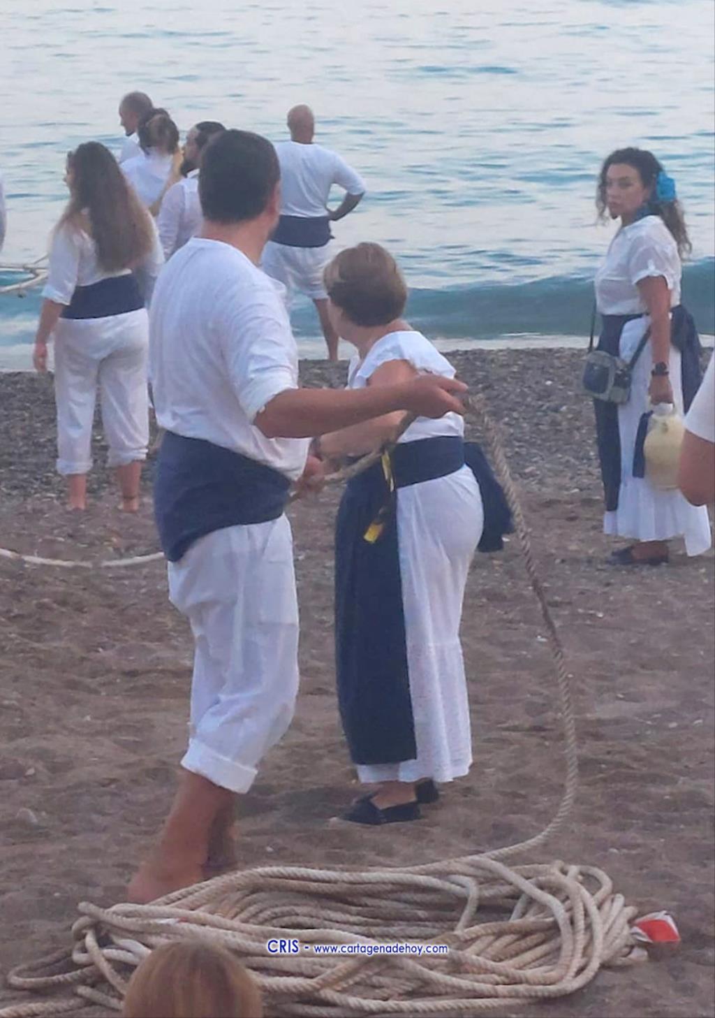 Por cierto, y para que no se nos pase, indicar que antes de comenzar hay una explicación al numeroso público desde el escenario de la plaza ubicada junto a la playa, en cuyo arenal lucen, junto a una gran cruz formada por dos maderos, elementos típicos de esta pesca. También señalar que entre los faenadores están 'los de siempre' y otros que se han apuntado una vez que lo han conocido por diversos motivos, de ahí que se vieran a ediles de ahora y de otras épocas.