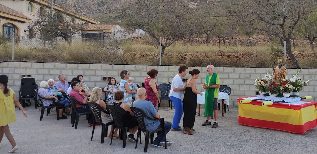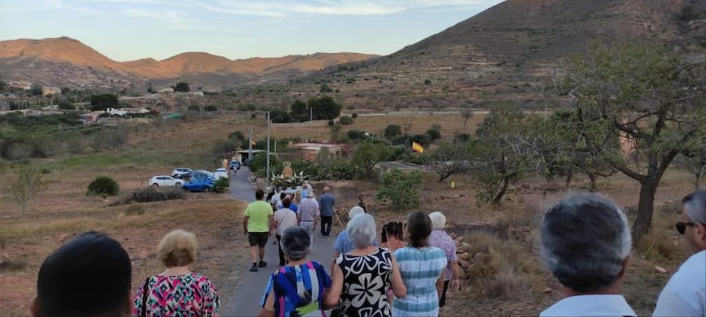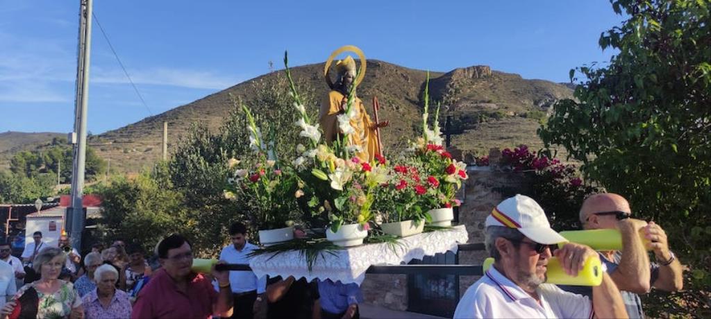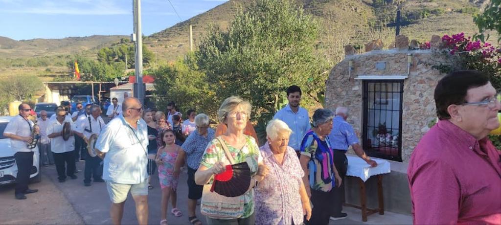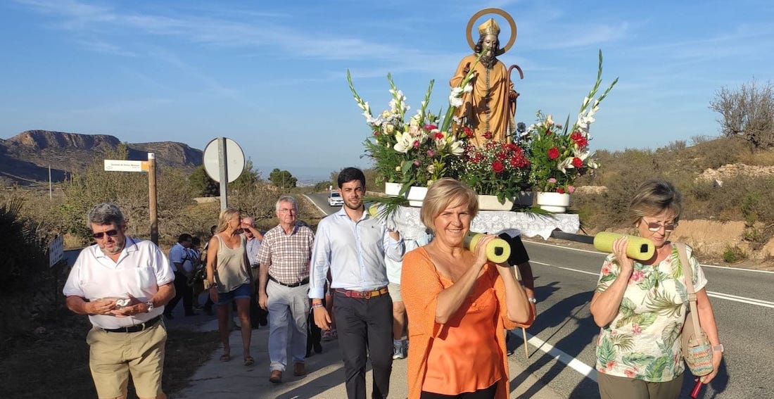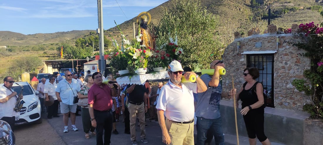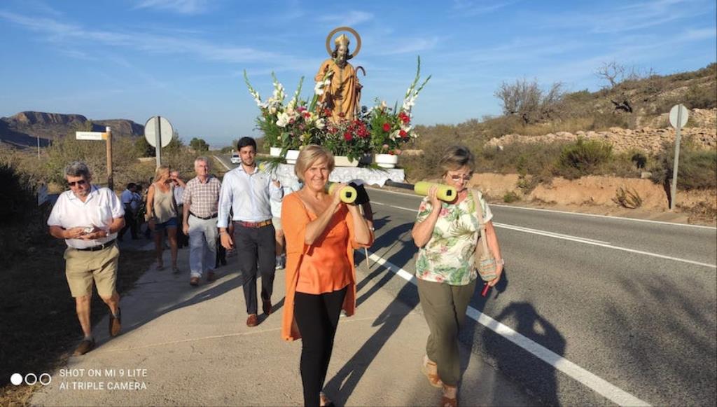 El patrón es objeto de una eucaristía de campaña y de una posterior procesión en la que la imagen va a hombros, alternándose en esa labor hombres y mujeres, entre las que ayer estuvo la edil de Festejos, Paqui Martínez Sotomayor, además de los concejales Nacho Jáudenes y Enrique Pérez Abellán, entre otros.