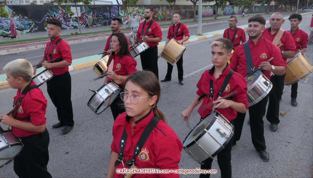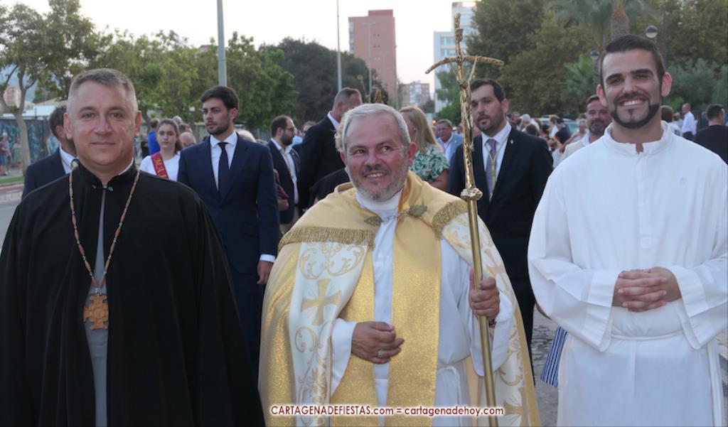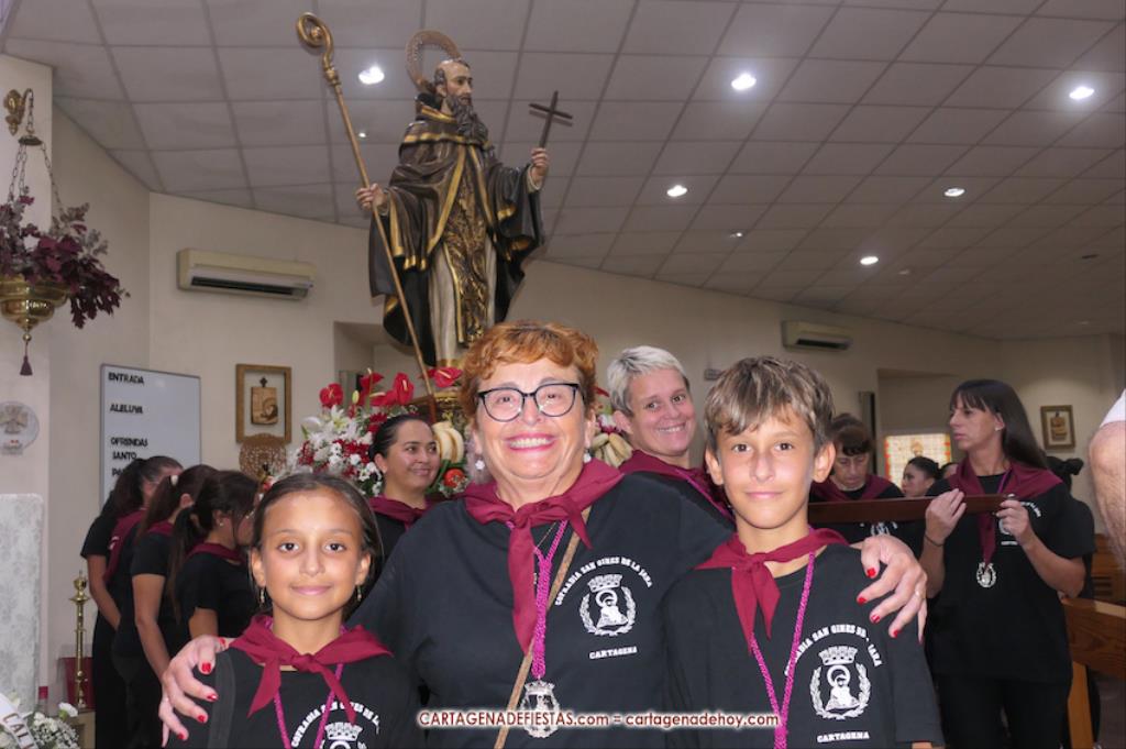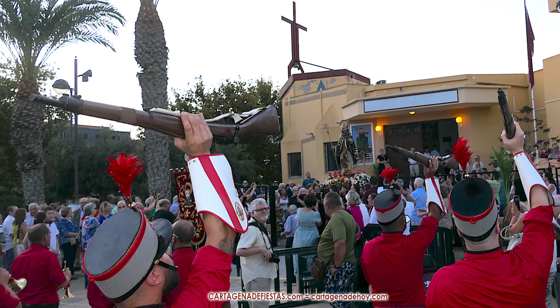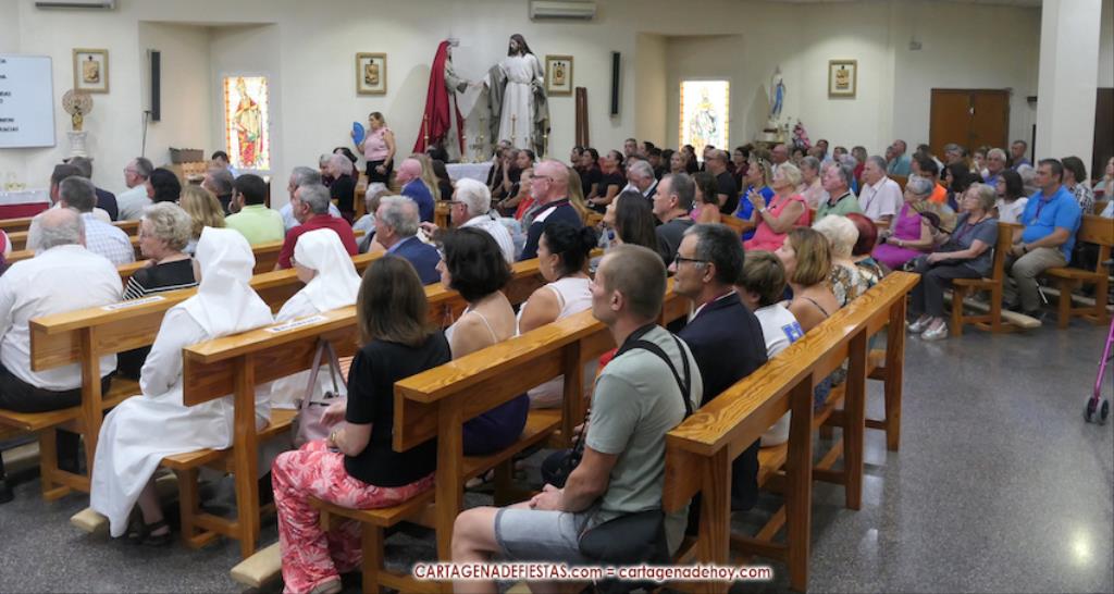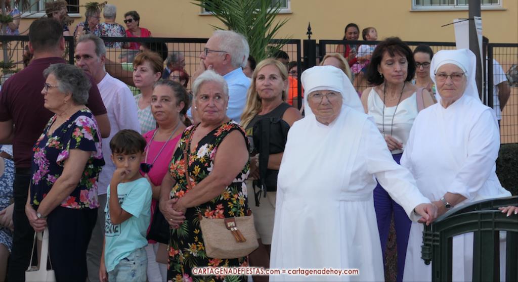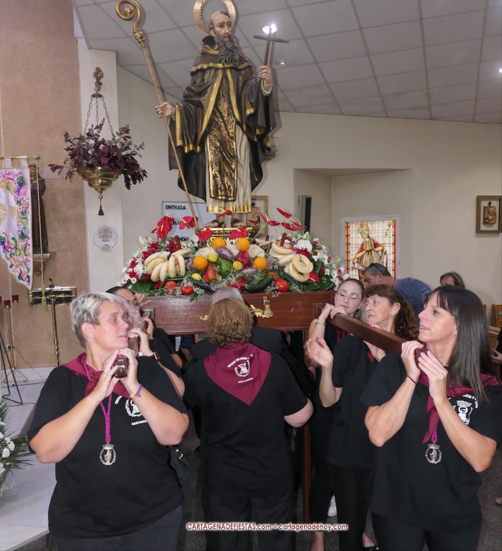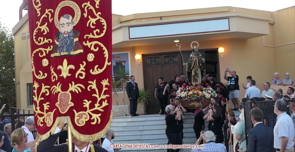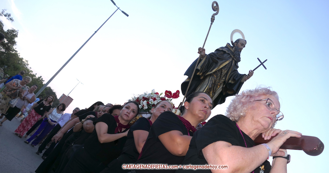 El patrono de Cartagena volvió a salir en procesión por las calles del entorno de su barriada después de una eucaristía con aforo desbordado en la que el sacerdote Lázaro Gomariz regaló cuatro panecillos con mensaje al Ayuntamiento, a las Hermanitas de los Pobres, a la asociación de vecinos y a la comunidad religioso ucraniana.