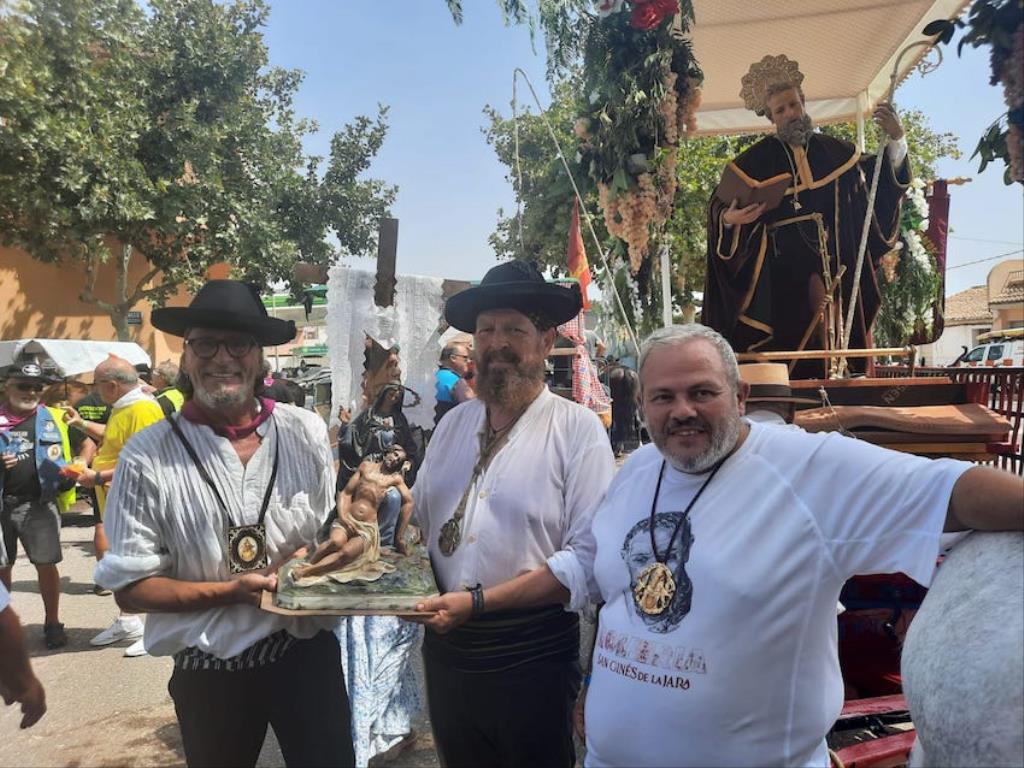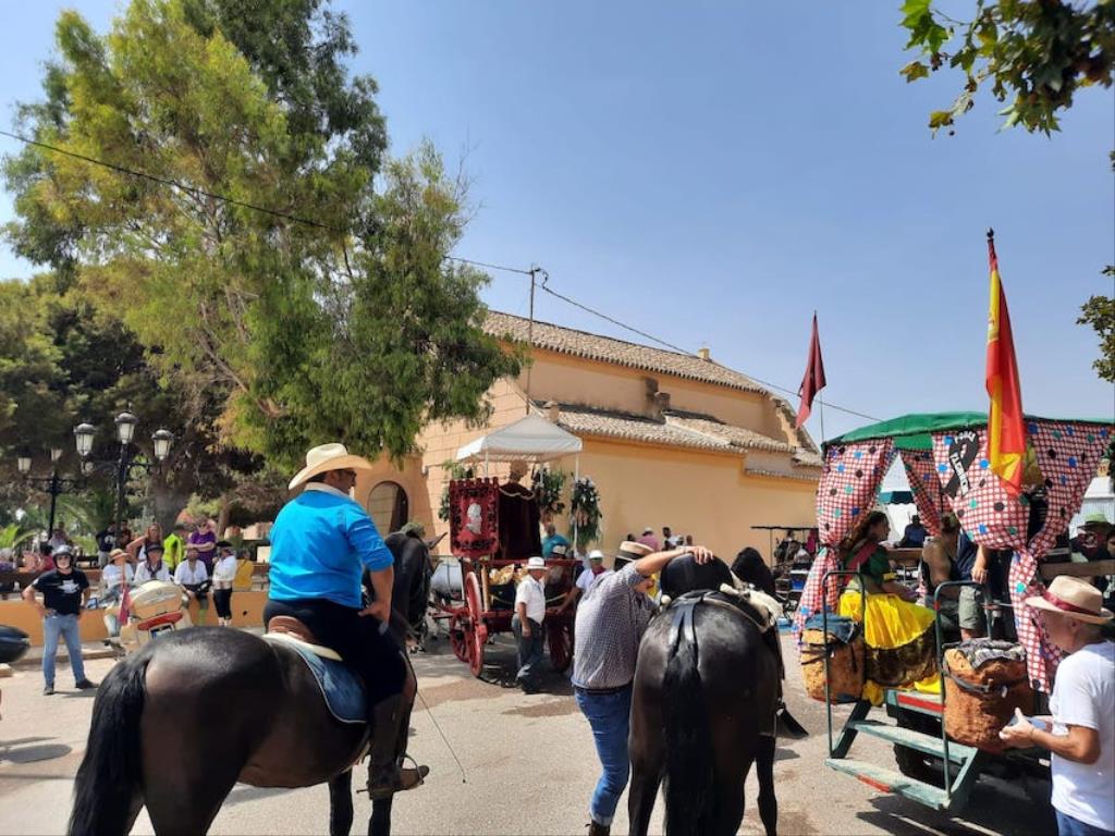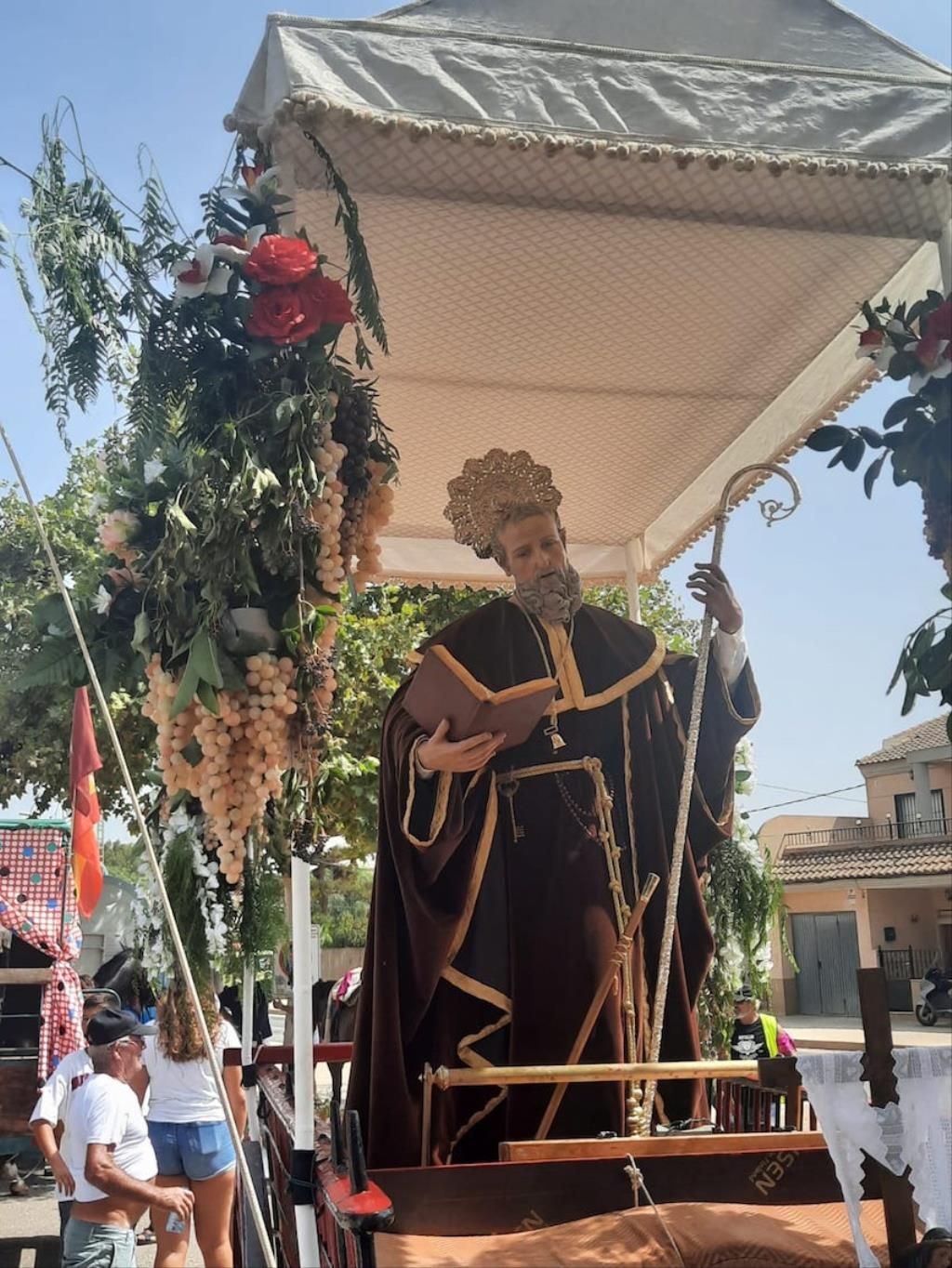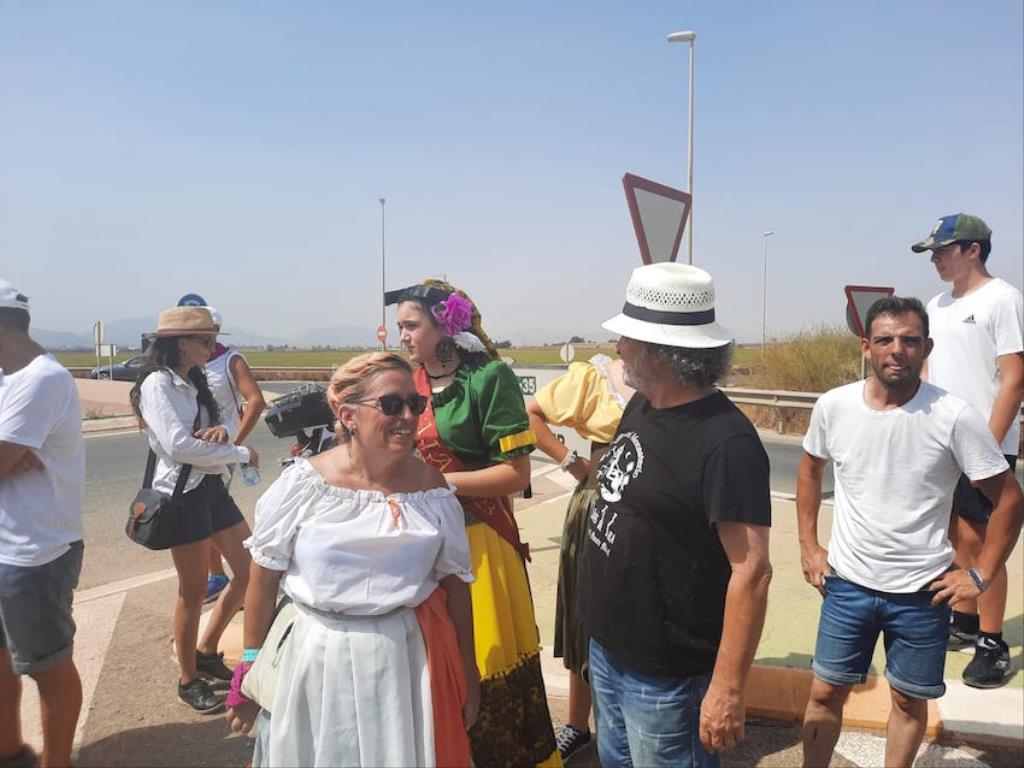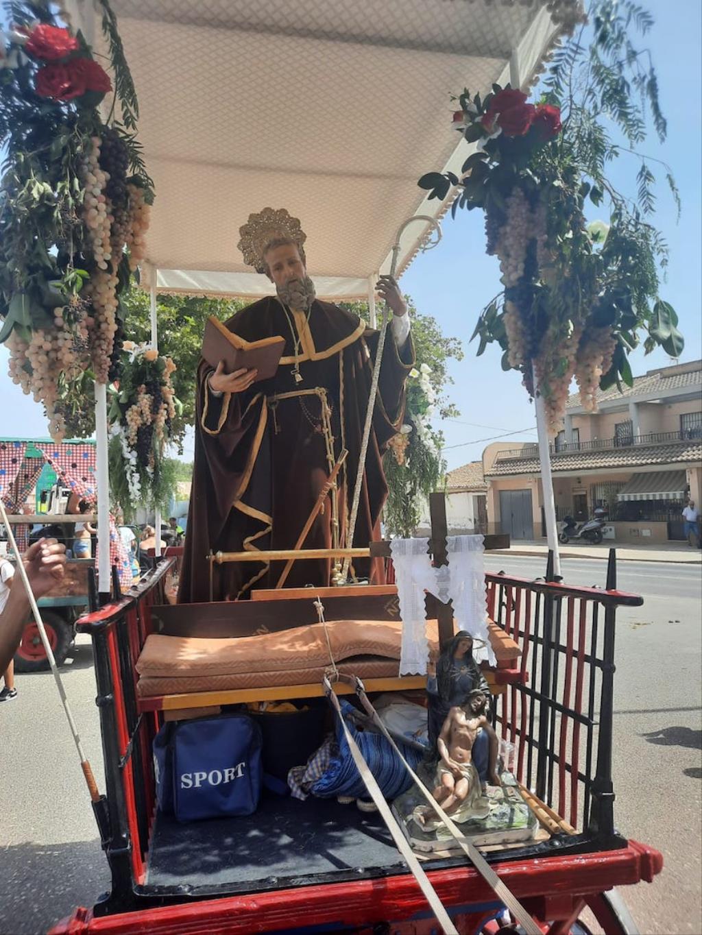 El pueblo siempre se vuelca con la llegada del patrono de Cartagena y este año no ha sido menos cuando la romería ha arribado por la romana vía Ylada, con parada en la ermita, donde la pequeña talla de Nuestra Señora de los Dolores se ha sumado al cortejo con dirección a la iglesia, donde ha tenido lugar una ofrenda floral. En la foto es sujetada la imagen por la madrina, Pilar Giménez, y por la maja, Esperanza Ayaso Sánchez.