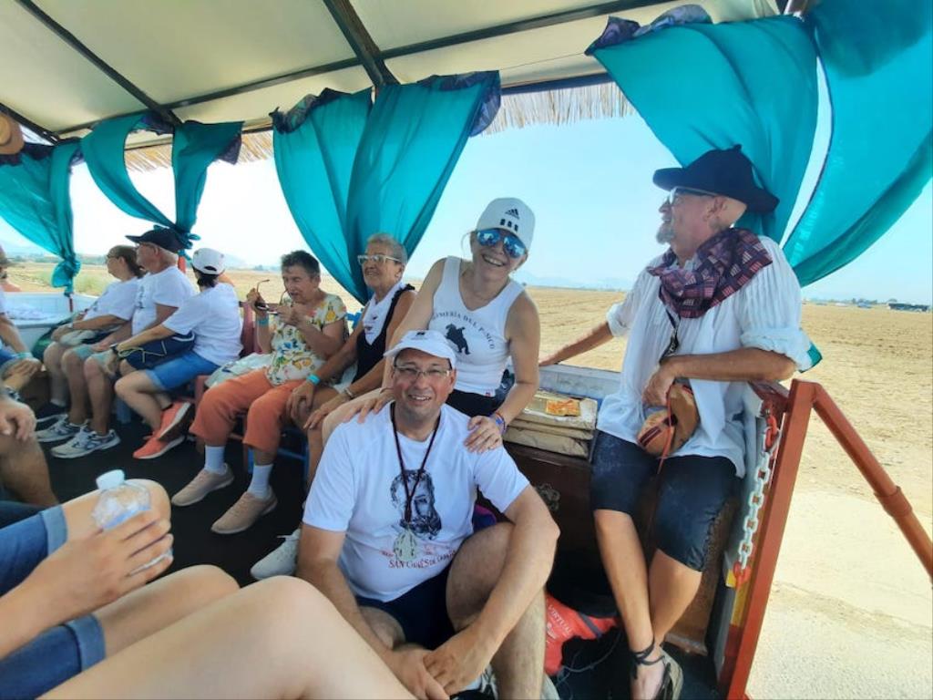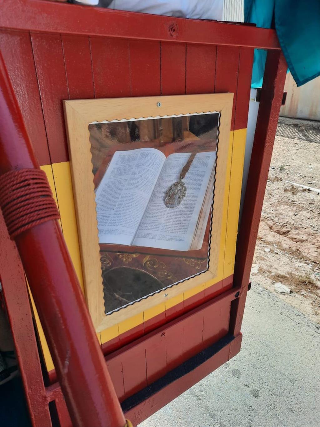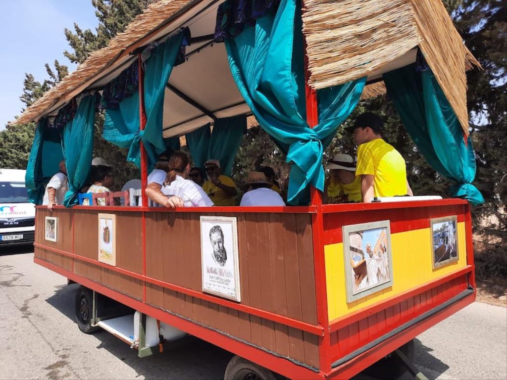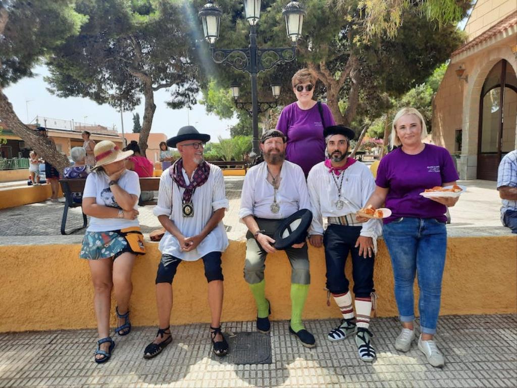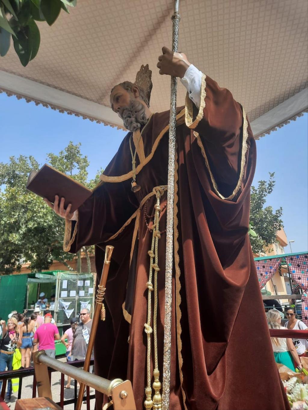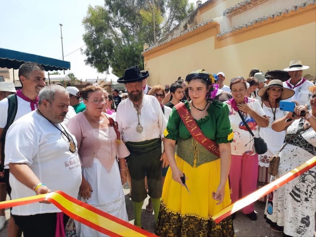 El pueblo siempre se vuelca con la llegada del patrono de Cartagena y este año no ha sido menos cuando la romería ha arribado por la romana vía Ylada, con parada en la ermita, donde la pequeña talla de Nuestra Señora de los Dolores se ha sumado al cortejo con dirección a la iglesia, donde ha tenido lugar una ofrenda floral. En la foto es sujetada la imagen por la madrina, Pilar Giménez, y por la maja, Esperanza Ayaso Sánchez.