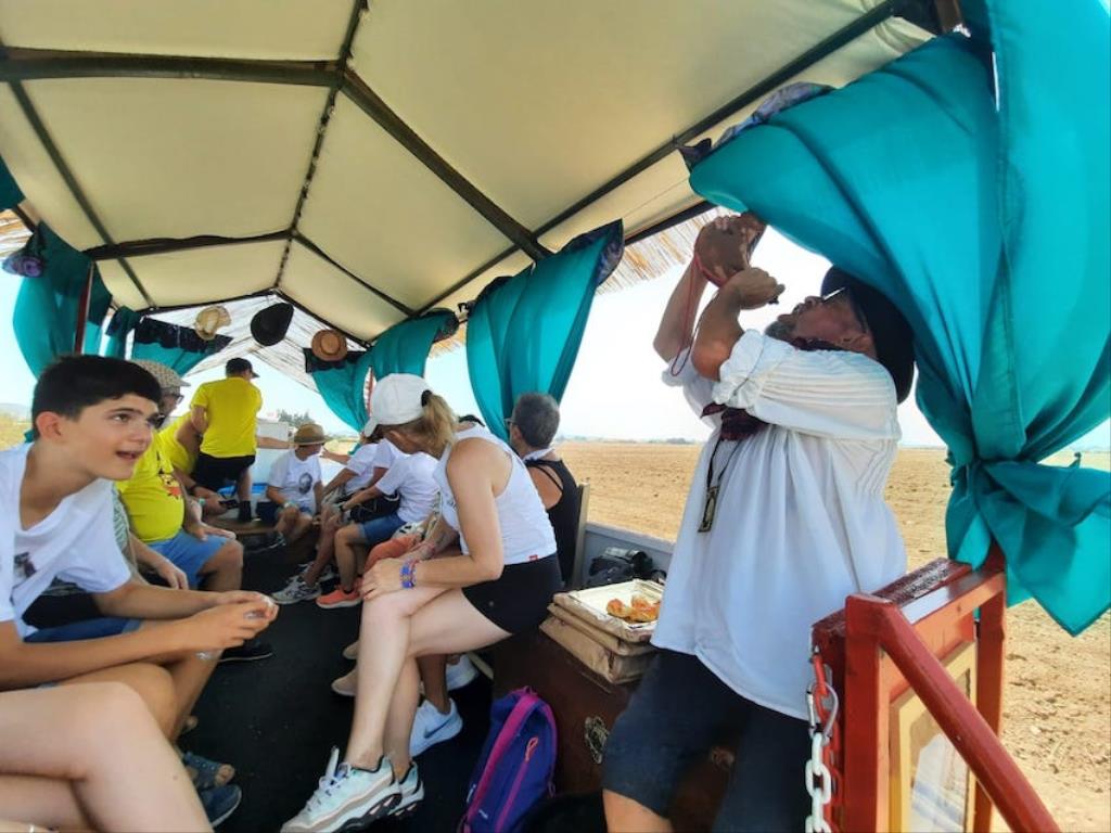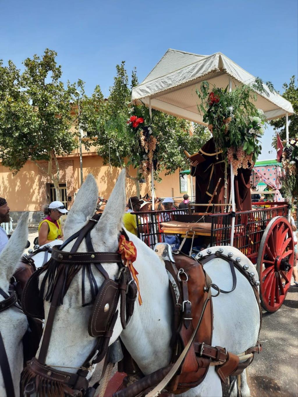 Después, tras el corte de la cinta a cargo de la maja de la romería, se ha accedido al patio de la iglesia, donde había preparado un almuerzo (obsequio de la asociación de vecinos y de la junta vecinal municipal) para que los integrantes de la romería recuperasen fuerzas y enfriasen, con bebidas, sus temperaturas en una mañana tan soleada como calurosa. A la conclusión, rumbo a Roche… Seguiremos informando.