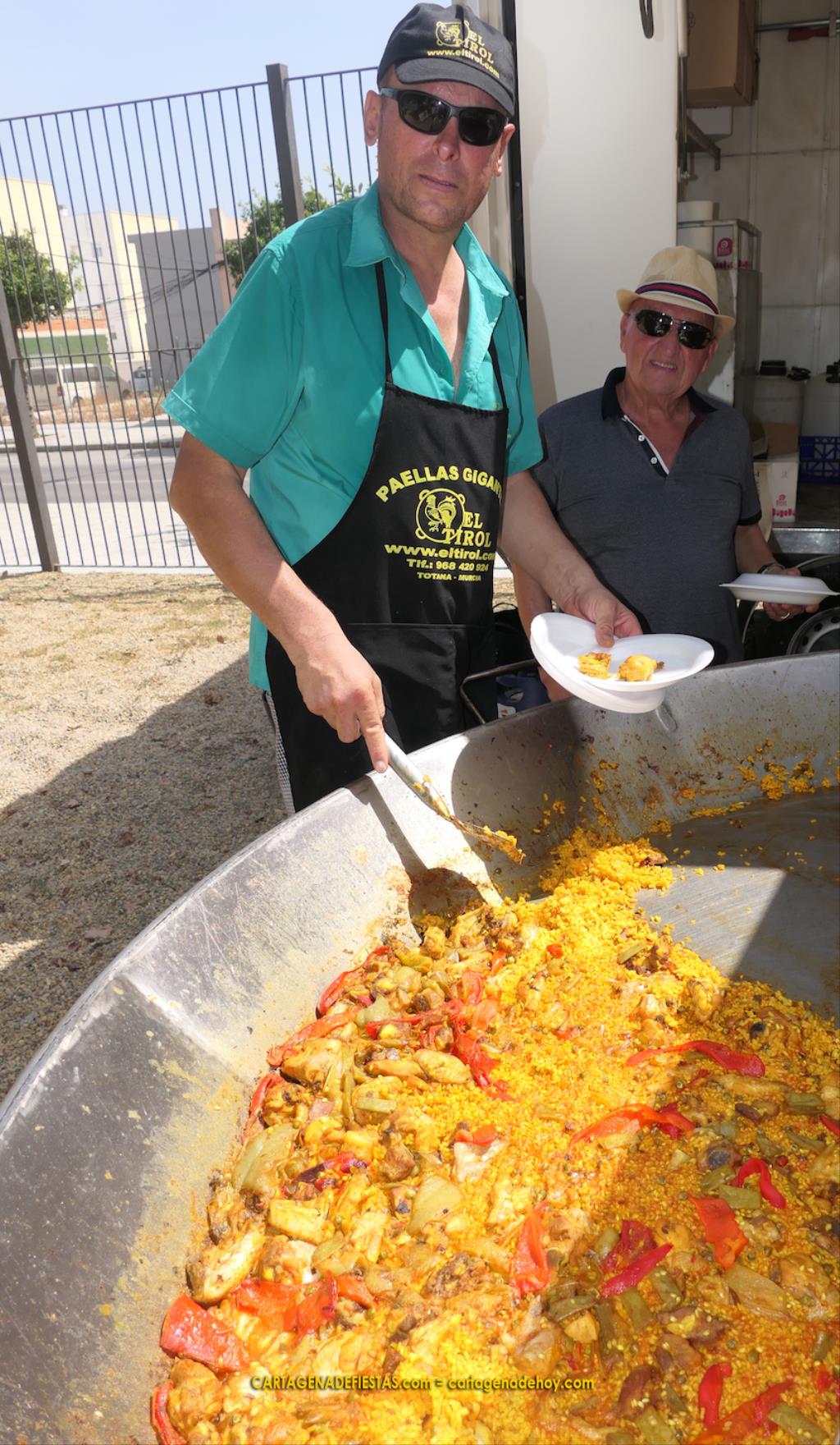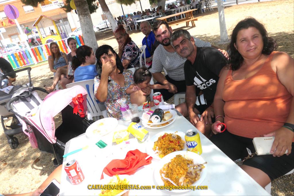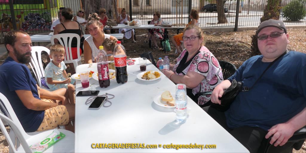 Numerosos vecinos degustaron en el recinto festero de la plaza José Juan Cano de forma gratuita un arroz elaborado para trescientas personas y que tuvo la música de 'Lara Show' para 'hacer la digestión', dentro de otra jornada de las fiestas de la barriada de Cuatro Santos que organiza la activa asociación de vecinos que preside Mati Paredes. El capítulo gastronómico se vio enriquecido por los productos que llevaron los vecinos, especialmente variados dulces.