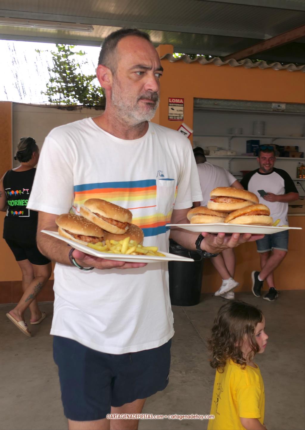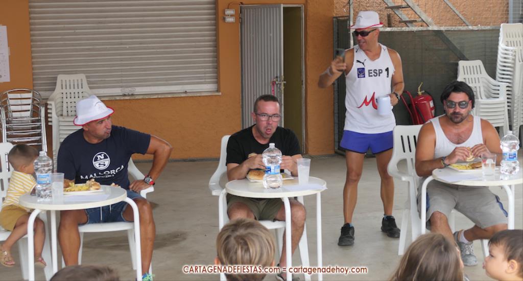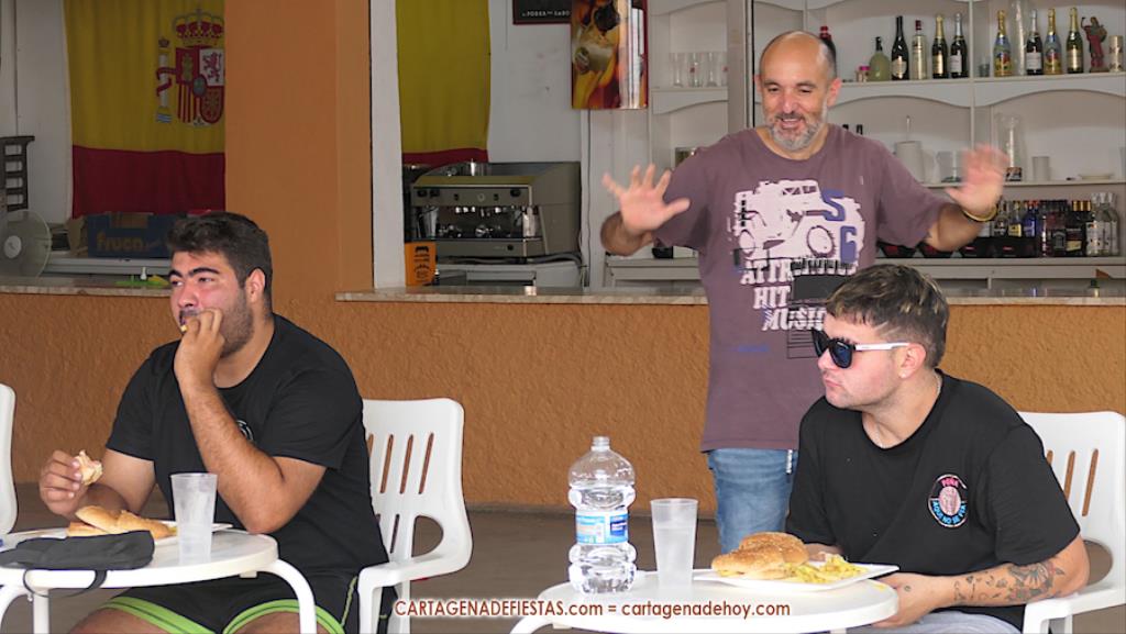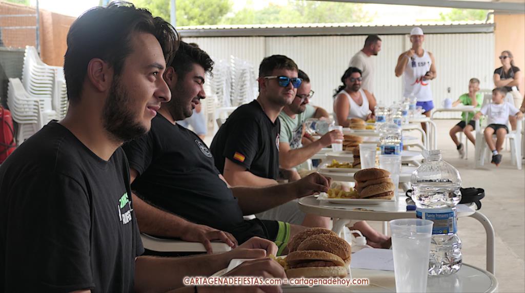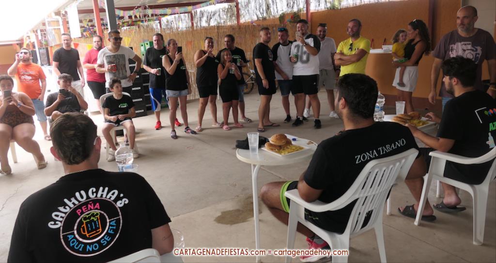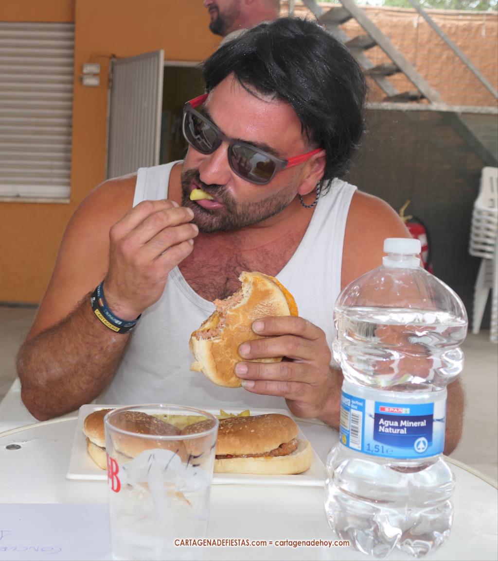Reseñar también los ánimos de las peñas a los participantes, incluido el abanicar a algunos para facilitar la ingesta de hamburguesas.
