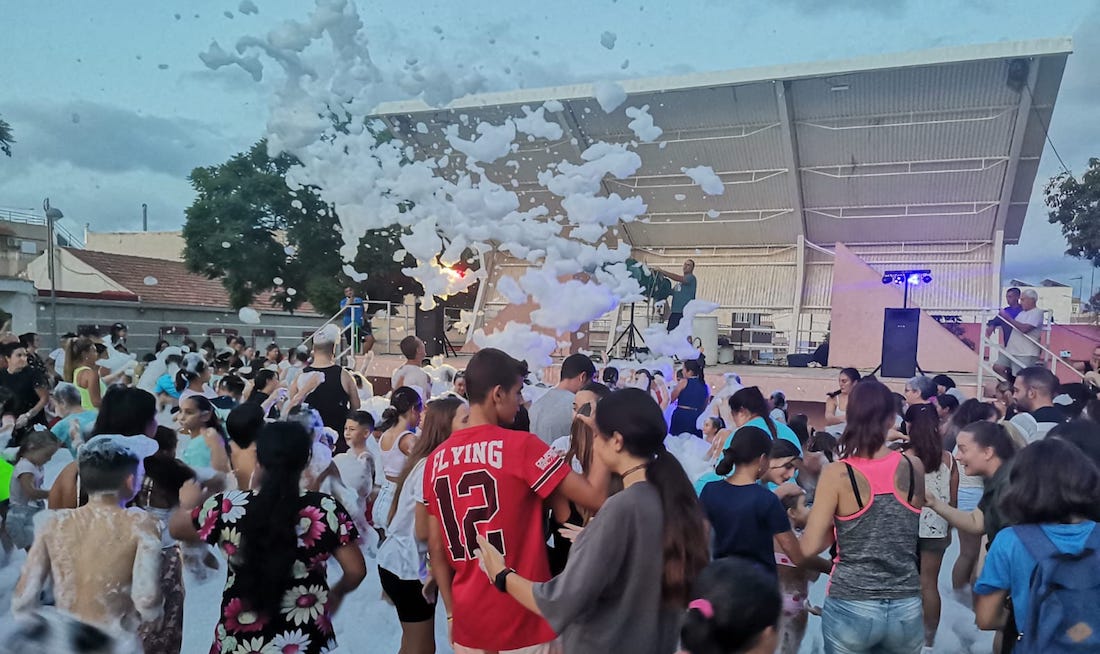 Los Dolores tuvo la jornada más multitudinaria de su inicio festero con la popular fiesta de la espuma en la plaza Virgen de los Dolores, donde hoy tiene lugar la apertura oficial de los festejos, además de rifa familiar y las actuaciones de 'Brisas del sur' y 'Trío Jema'.