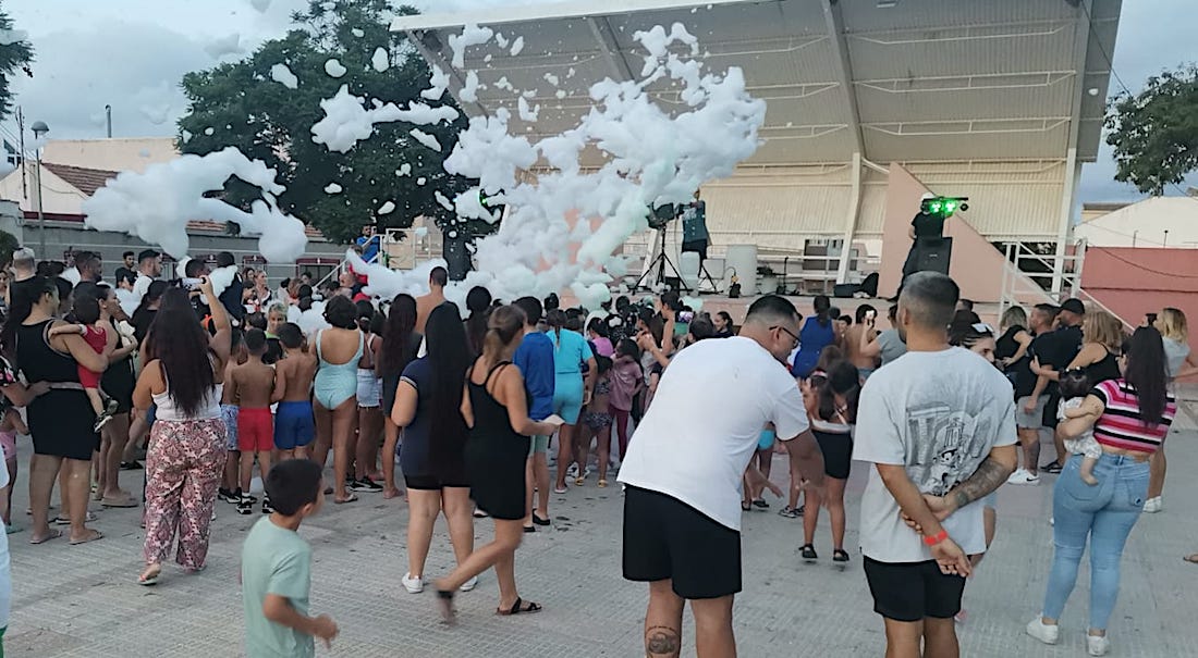 La fiesta de la espuma, que comenzó con algo más de hora y media de retraso sobre el horario anunciado por retraso en la llegada de la empresa contratada, tuvo dos capítulos, uno para niños y otra para jóvenes y adultos.