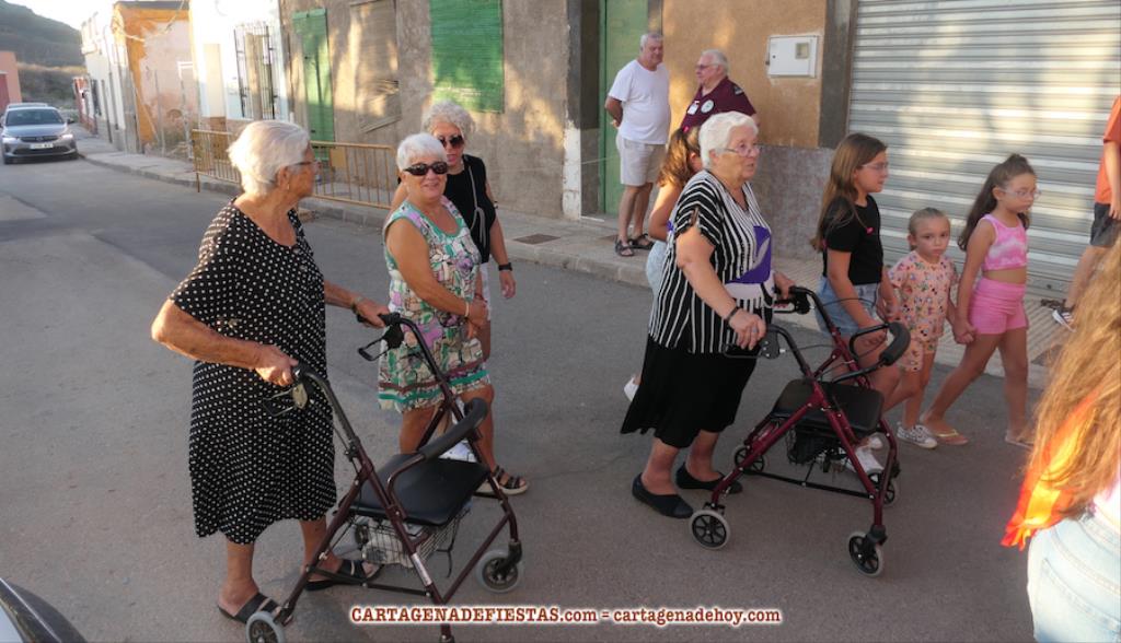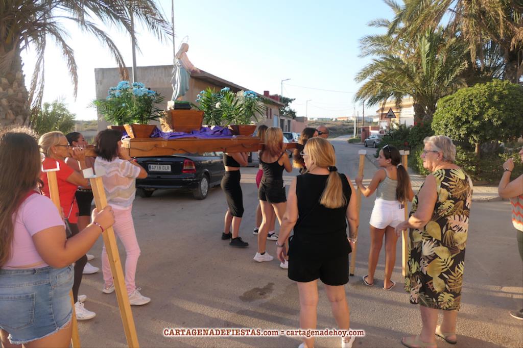 La imagen de María, que fue tallada hace más de un siglo y que fue donada por una familia, recorrió las calles del pequeño pueblo cartagenero en una tarde de fiestas que culminó con chocolatada. Hoy, guerra de tartas y un gran arroz para consumir de forma gratuita.