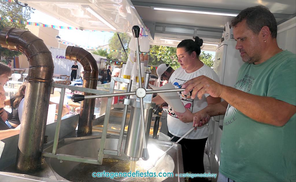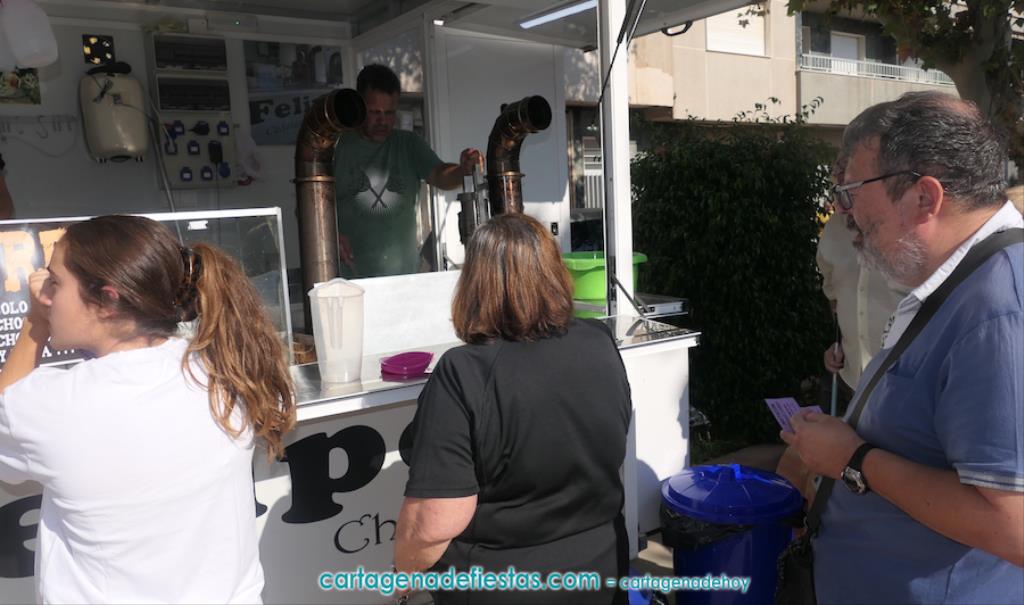 La Virgen del Pilar salió en procesión por las calles de la Barriada de Hispanoamérica por segunda ocasión, en una jornada final de las fiestas que tuvo como protagonistas gastronómicos al chocolate con churros y a un arroz gigante.