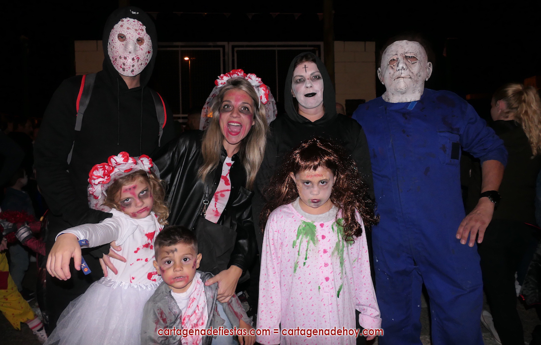Vecinos de la barriada cartagenera de José María Lapuerta caracterizado como es tradicional en muchas fiestas de estas fechas.