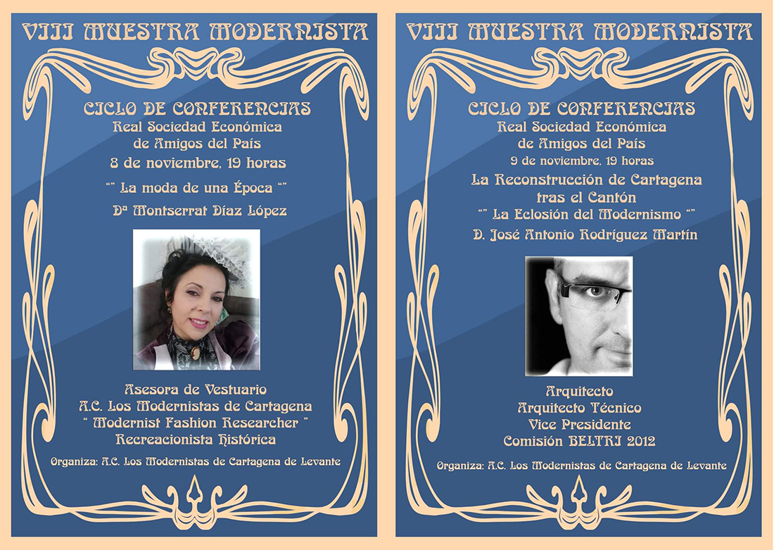 Javier Sánchez Páramo y Luis Miguel Pérez Adán han hablado esta semana en la Real Sociedad Económica de Amigos del País sobre 'Egipto en el Modernismo 2.0' y 'Alfonso XIII en Cartagena', respectivamente. Hoy es el turno de Montserrat Díaz con la moda y el jueves será parea José Antonio Rodríguez sobre la reconstrucción de la ciudad tras el Cantón. Además, el modernismo, como se observa en la imagen, sigue vistiendo a personal de la televisión autonómica.
