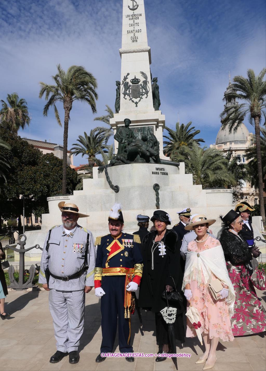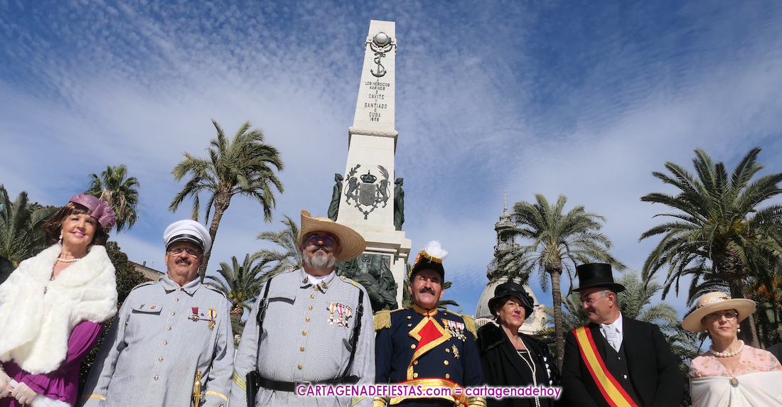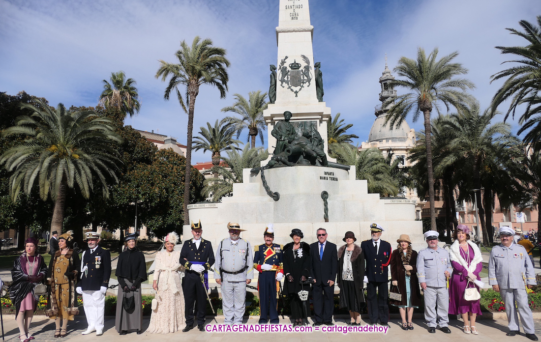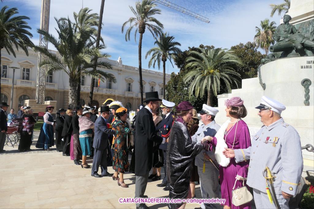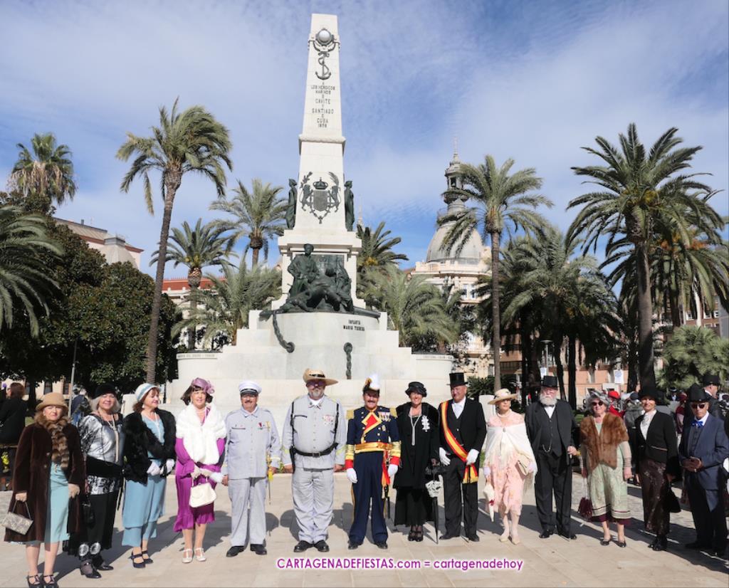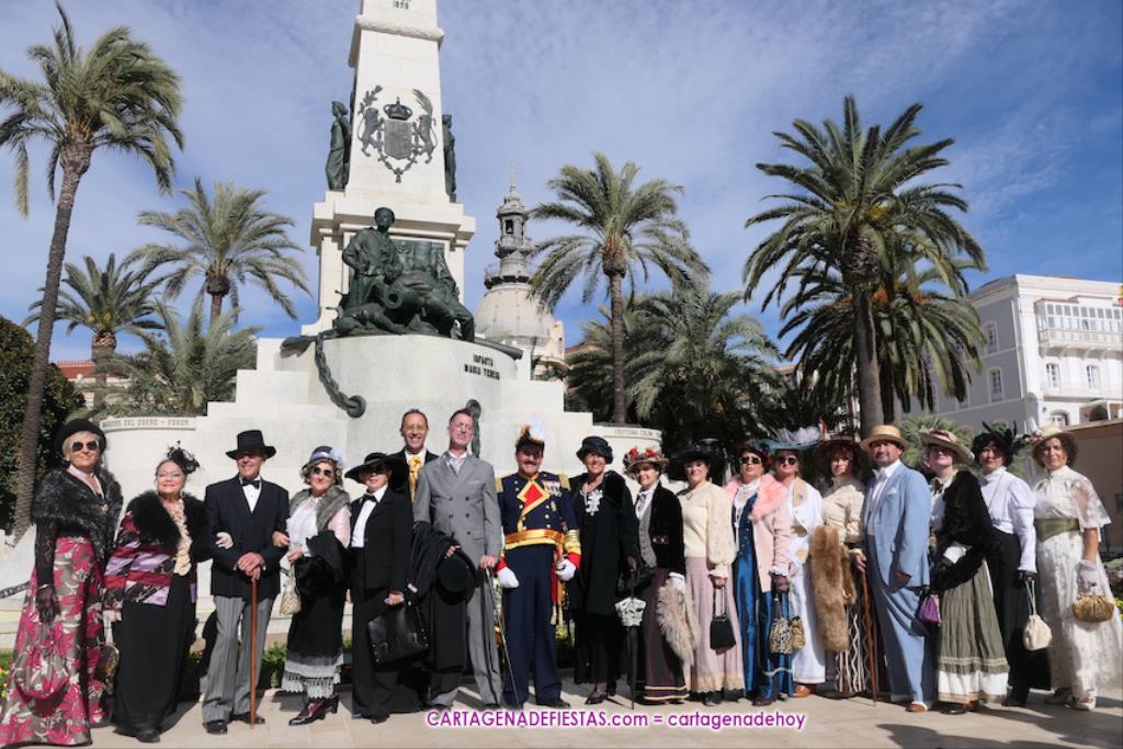 La Asociación Cultural Modernistas de Levante de Cartagena vivió otra de las jornadas importantes de su octava muestra con la recreación de la presencia de SM El Rey Alfonso XIII, representado por un componente del colectivo, en la ciudad que fue su último contacto en vida con España, pues cabe recordar que de aquí salió en abril de 1931 camino del exilio. Sin embargo, el capítulo que ahora se recupera es de una etapa de esplendor de la realeza en España y que incluyó el multitudinario acto de inauguración del Monumento a los Héroes de Cavite y Santiago de Cuba el 9 de noviembre de 1923 en Cartagena.