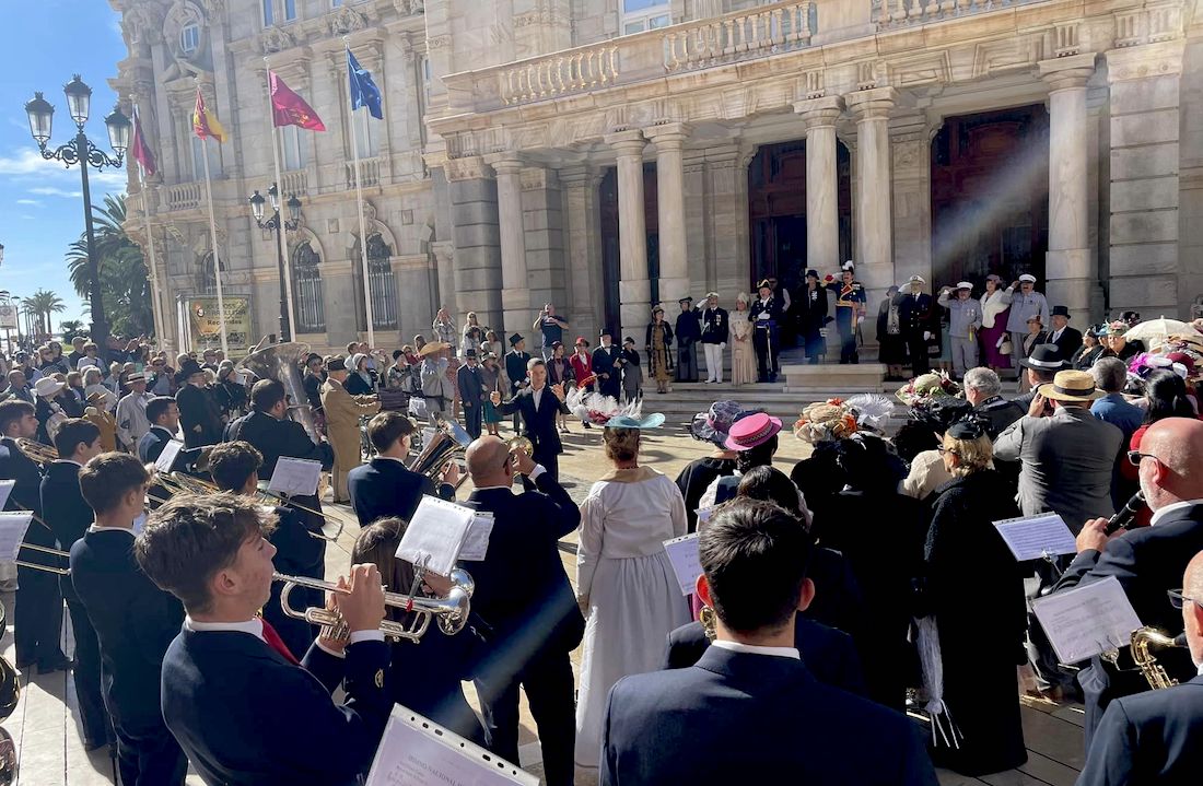 La marcha, animada por la música de la centenaria Sociedad Artístico Musical 'Santa Cecilia' de Pozo Estrecho, tuvo un alto ante la fachada del Palacio Consistorial, para después continuar hasta el monumento, donde tuvo el acto central con ofrenda floral y honores militares. La matinal culminó con una convivencia modernista.
