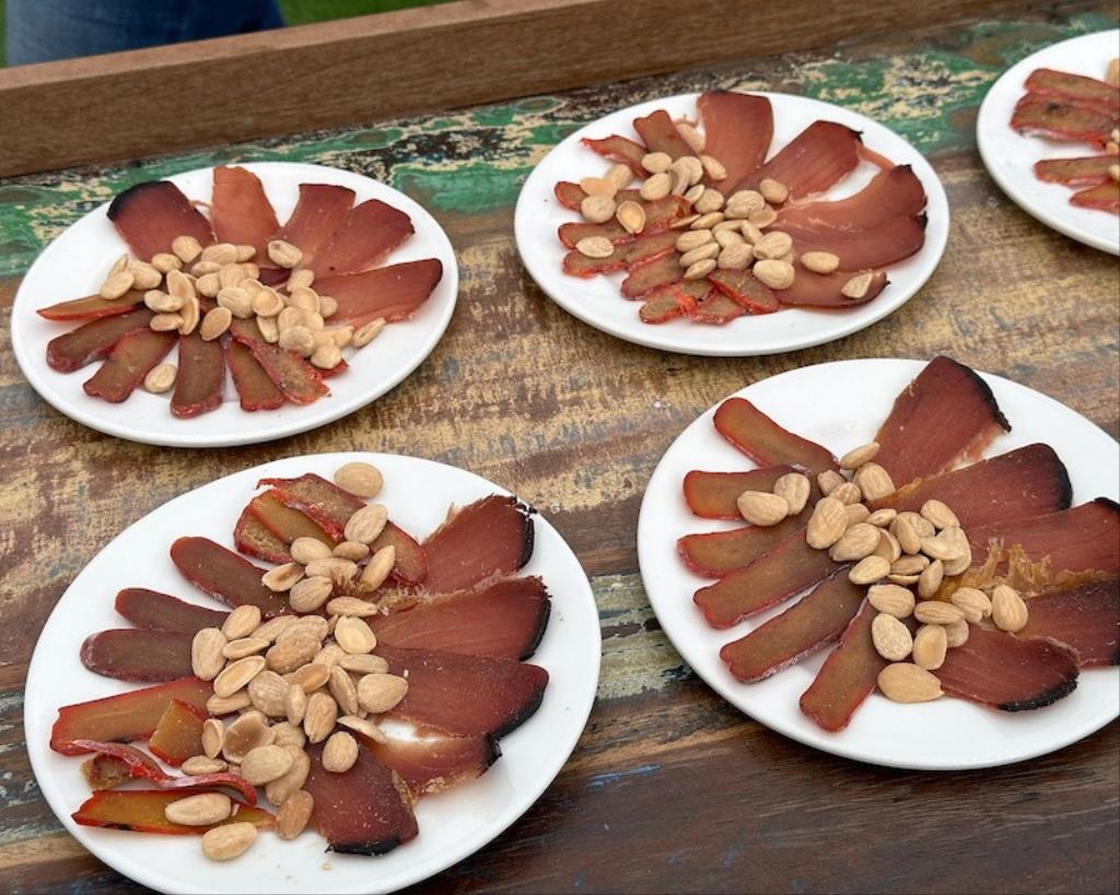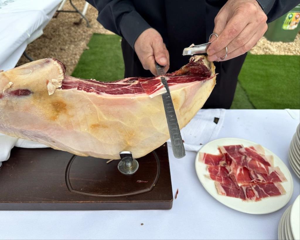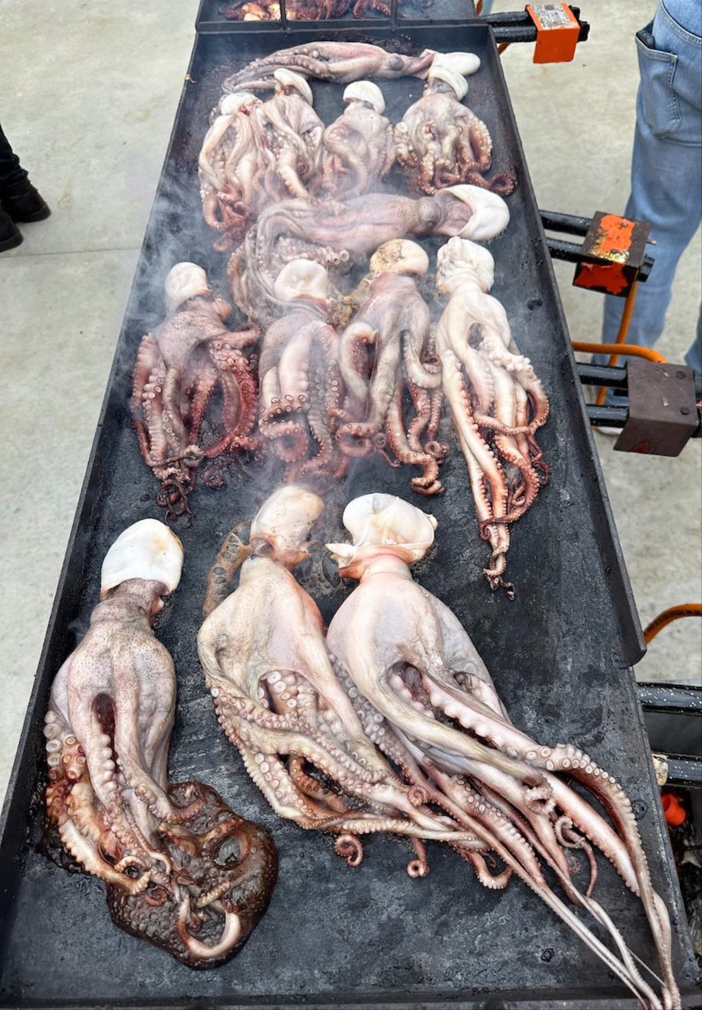 Han sido muchos los kilos de pulpico que han salido de la plancha, dentro de un capítulo de manjares a los que hay que añadir habas tiernas recién cogidas del bancal ('las cigalas de campo', le llaman algunos), jamón de negra pezuña al core, bollullos del Condado, patadas con alioli, gambas, rosquillos de San Antón..., todo con el buen acompañamiento de vino español, cerveza bien tirada y siempre tan agradecidos asiáticos. Había que tomar fuerzas para la misión encomendada y a fe que se ha hecho.