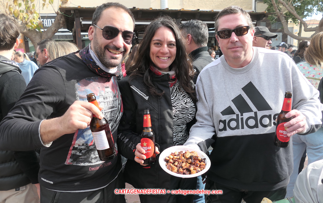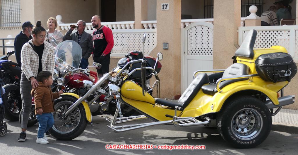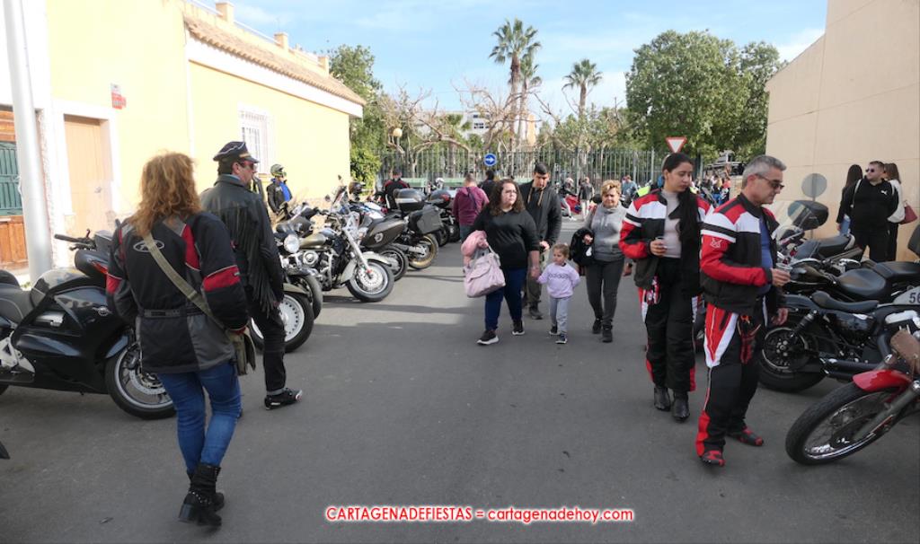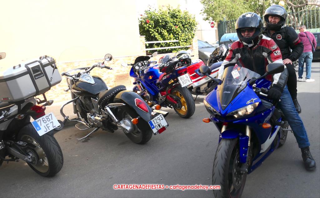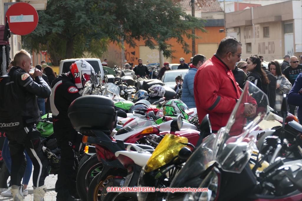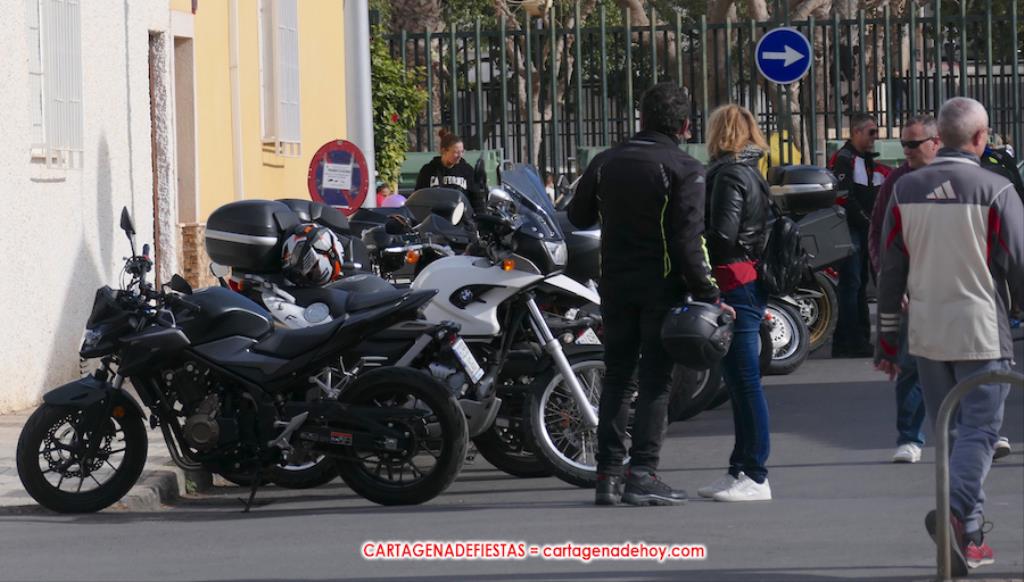 Cientos motos han confluido en San Antón en el regreso, después de varios años, del motoalmuerzo de la peña 'K1 X su lao', que ha contado con alicientes paralelos gastronómicos además de un payaso, exhibición de trialbici, sorteos y cuatro horas de actuación de 'Kar-P-Diem', a lo que se suma una multitudinaria ruta motera que ah 'petado' las calles de la ciudad de Cartagena por las que ha pasado.