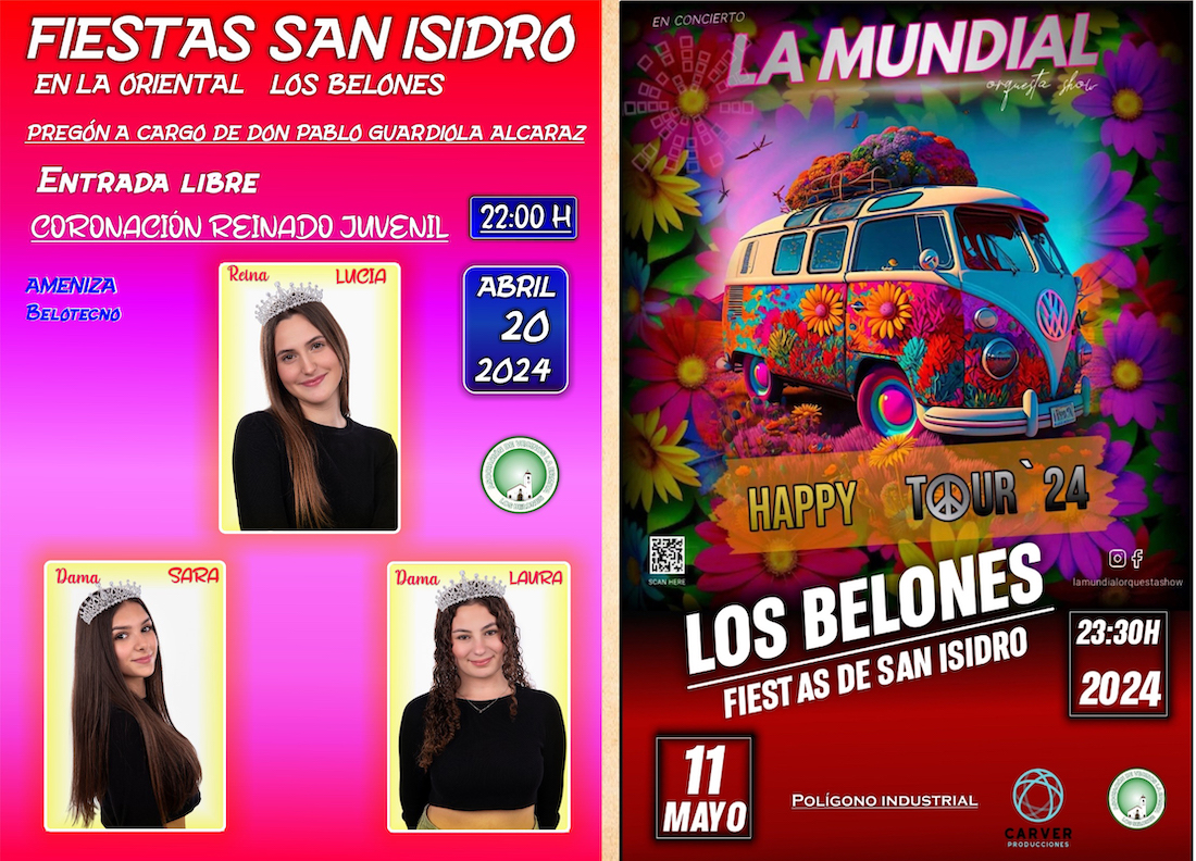 Celestino Conesa, presidente de la comisión de fiestas desde el año 2011, a quien se observa en la foto superior en la fila inferior a la derecha, explicó ayer en el programa informativo 'De la sierra al mar, tu portón de noticias' de Radio Unión, que la cuarta presencia en la historia festera de la orquesta 'La mundial' (no venía desde antes de la pandemia) tendrá como marco el escenario que se habilitará, por vez primera, en el polígono industrial, en la entrada de Los Belones, en la explanada de Calblanque, "así podrán estar mejor tanta gente como arrastra y para que se luzca mucho más su espectáculo 'Happy Tour' de 2024", explica, elogiando también "la labor del magnífico equipo de trabajo que está en la comisión", añade. Las demás actuaciones tendrá lugar en la plaza de la Iglesia, siendo gratuitos todos los actos de las fiestas.
