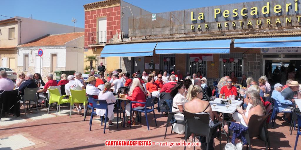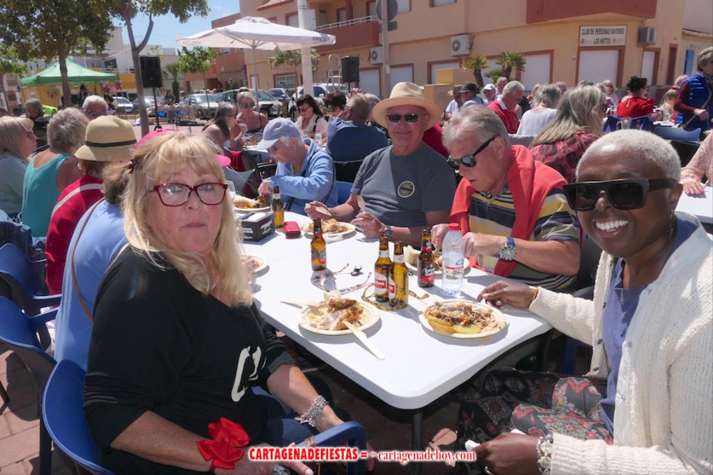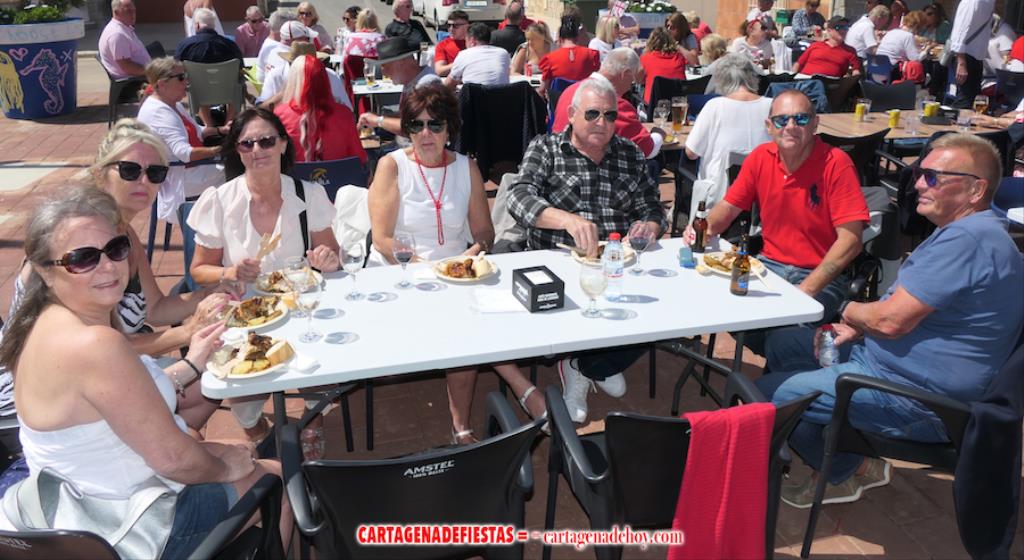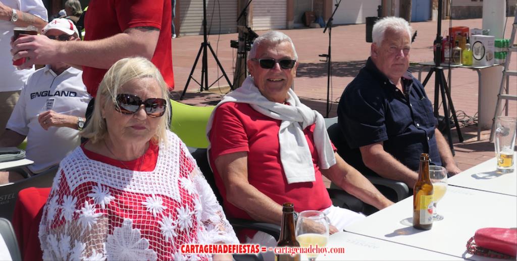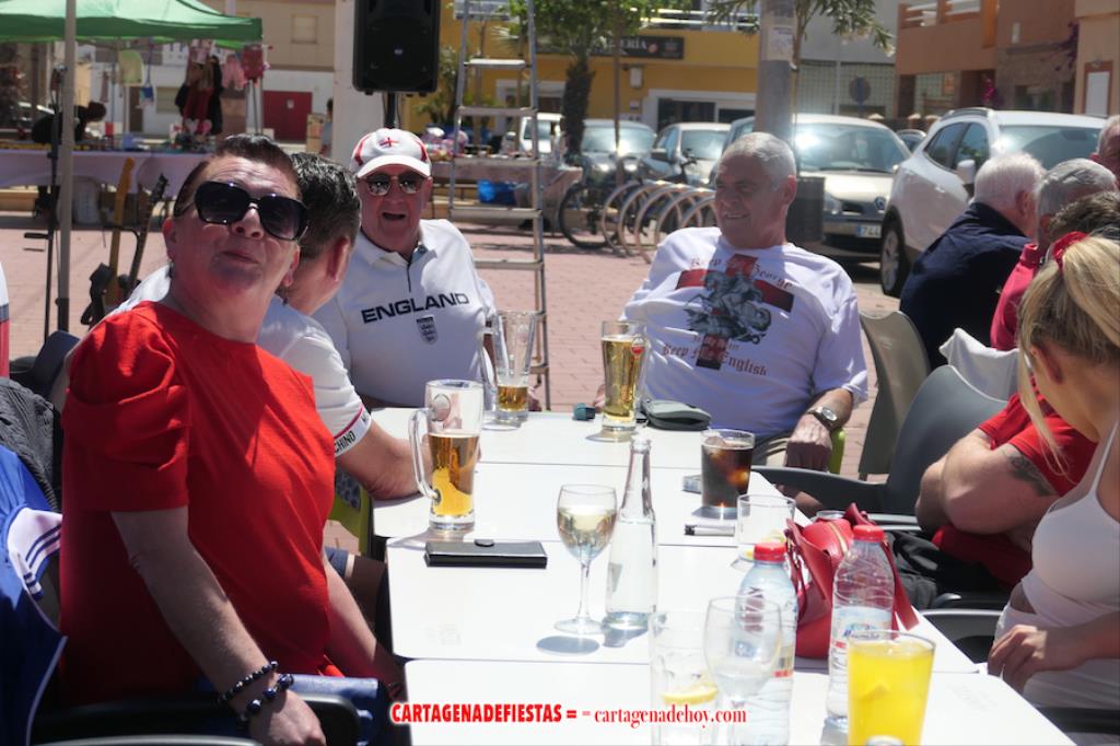 Lo cierto, es que los 138 participantes de la colonia inglesa de la asociación de vecinos disfrutó ese día como 'dragones', pues la convivencia comenzó sobre las dos de la tarde en la terraza de La Pescadería (sede vecinal con local hostelero incluido) para saborear una gran 'pollada', pues multitud de pollos asados protagonizaron el plato principal. Antes de terminar el almuerzo ya estaba tocando el dúo 'Rick&Rae' con (muy buena) música inglesa de los años sesenta, setenta y ochenta del pasado siglo de grupos como The Beatles, Rolling Stone, CCR, Cliff Richard, The Eagles, Status Quo, Rod Stewart, etc. Pasadas las diez de la noche acabó la jornada que ya se ha convertido en una tradición en este castizo pueblo cartagenero de mar.