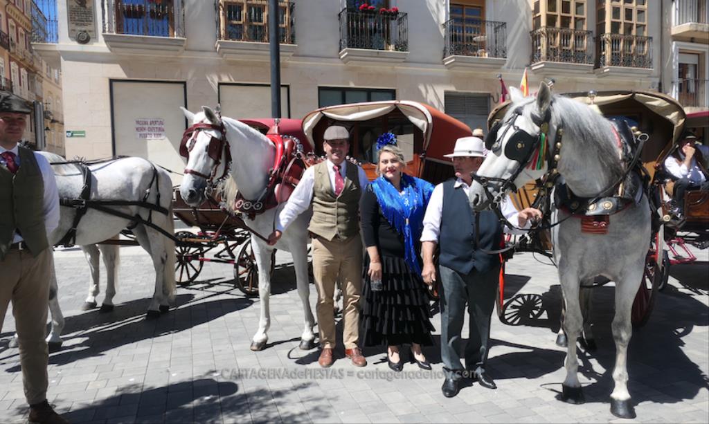 En esa 'plaza del Lago' es a donde han llegado cerca de una decena de carruajes del Club Enganche Cartagena 'Auriga' para iniciar su recorrido por la ciudad, potenciando el ambiente de esta jornada.