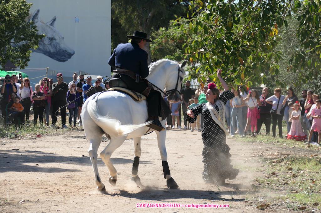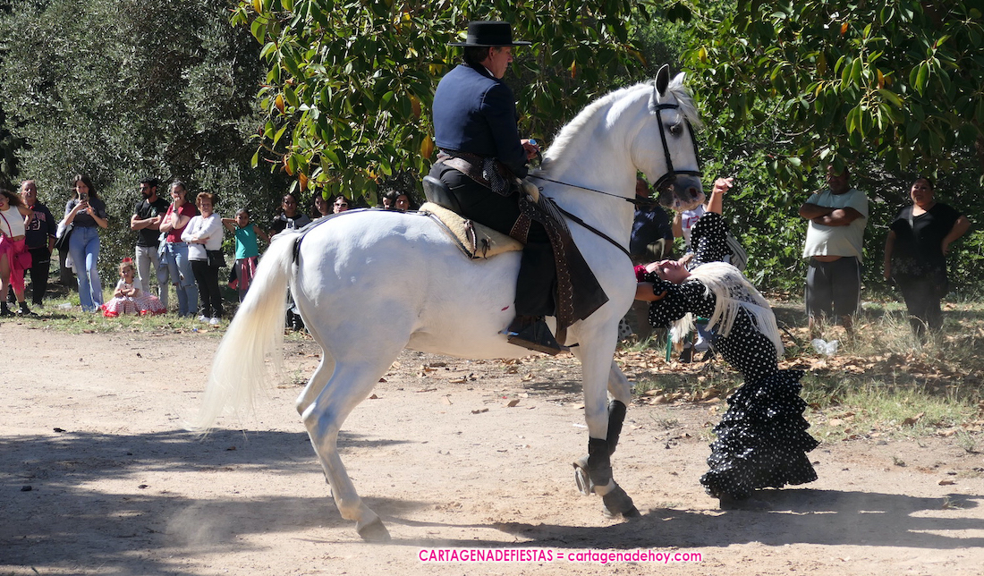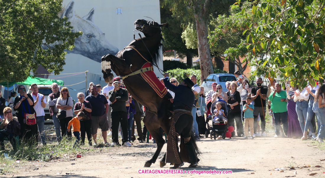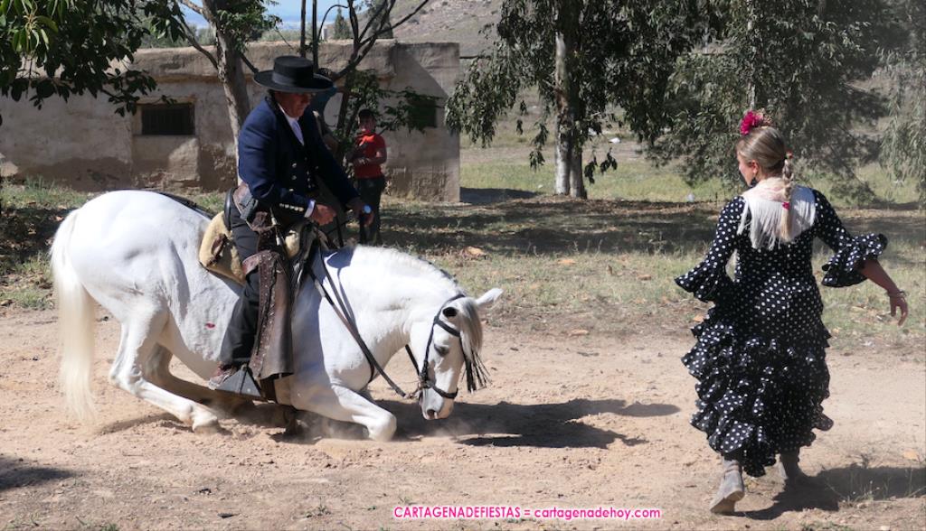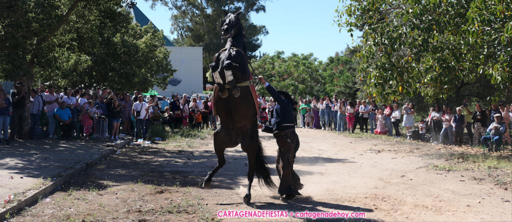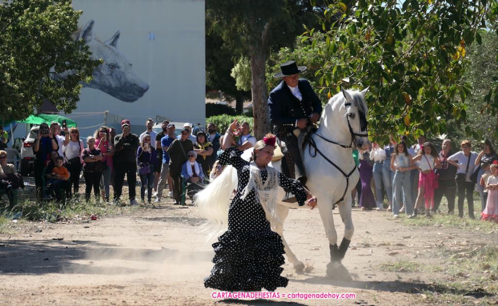 El pueblo de la diputación de El Beal estreno una fiesta popular en torno a la cruz de mayo, que tuvo como singularidad la exhibición equina dirigida por Agustín Solano y el baile de sevillana con bailaora.