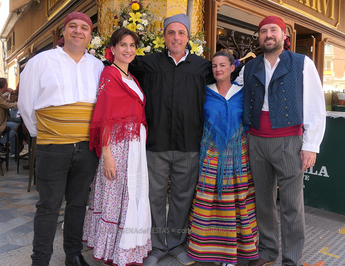 El quinteto ha estado, nuevamente, presente en las multitudinarias cruces de mayo del casco histórico cartagenero, como vienen haciendo, con el paréntesis pandémico, desde el año 2017, cuando se lanzaron a esta aventura, aparentemente, 'contra corriente'. "Pedro Antonio Gómez, presidente del Grupo Folclórico 'Ciudad de Cartagena' de La Palma, fue quien nos asesoró e informó de los atuendos más apropiados, pues nuestro propósito ha sido desde el principio ser fieles a nuestras tradiciones", explican sobre sus orígenes a este periódico.