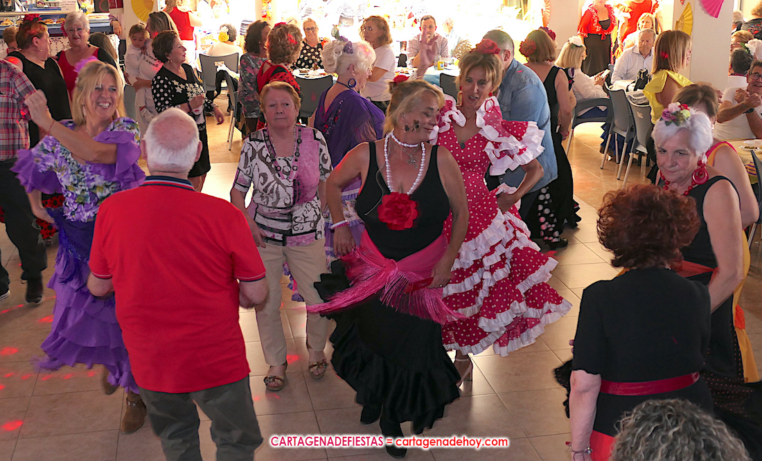 Además, de los bailes, la jornada se ha acompañado de buena gastronomía, como se podía observar en las mesas situadas en el interior y exterior del local social, con variados productos, todos con muy buena pinta, desde morcillas y embutidos a tortillas de patatas o magra con tomate.