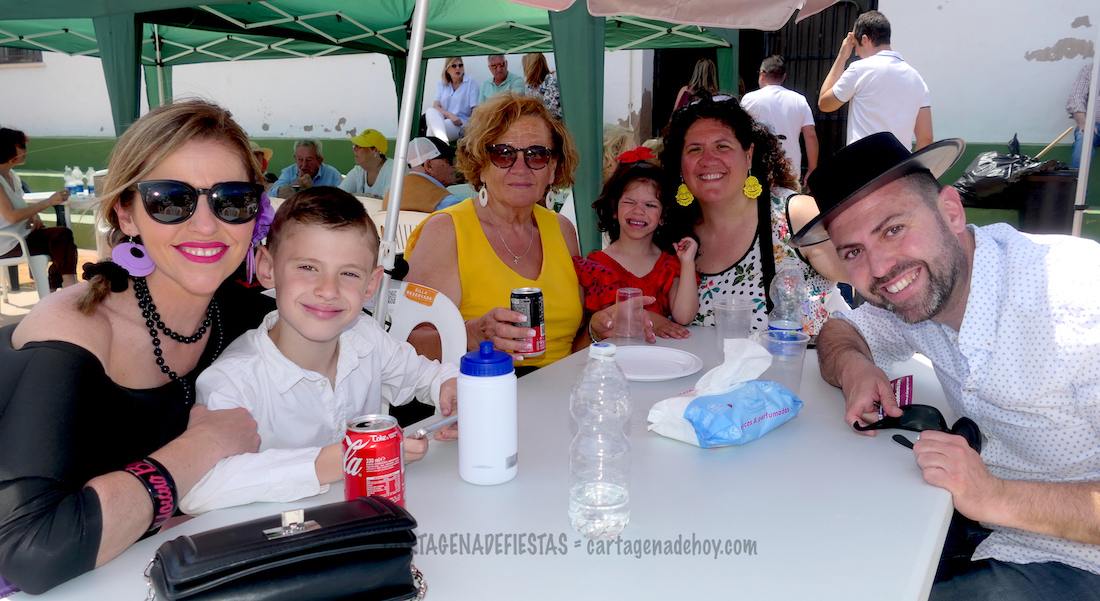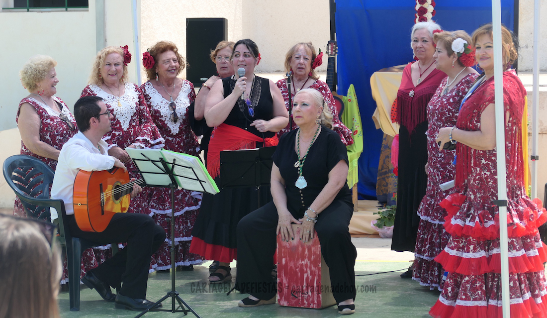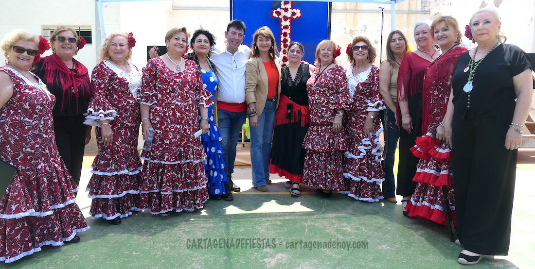 El domingo es cuando más actos se llevaron a cabo, con bendición de la floreada cruz a cargo del párroco de la iglesia del barrio. Después se inició una muy buena (y soleada) convivencia en el patio con hinchables para los más pequeños, música (en directo con el coro rociero 'Alba' y enlatada), puestos de mercadillo y cantina, entre otros alicientes, pues también hubo rebujitos, un concurso de sevillanas y premios a los vestuarios más originales. A ello se sumó un gran arroz para más de trescientas personas.