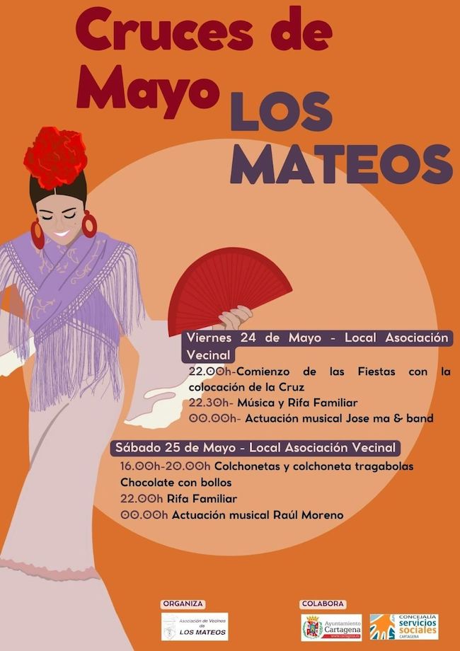 Las 'Cruces de mayo' se celebran esta noche y mañana en la plaza situada frente al local social, donde habrá atracciones para los niños y las actuaciones en directo de 'Jose ma&band' y Raúl Moreno, respectivamente, en cada velada. Organiza la Asociación de Vecinos de Los Mateos.