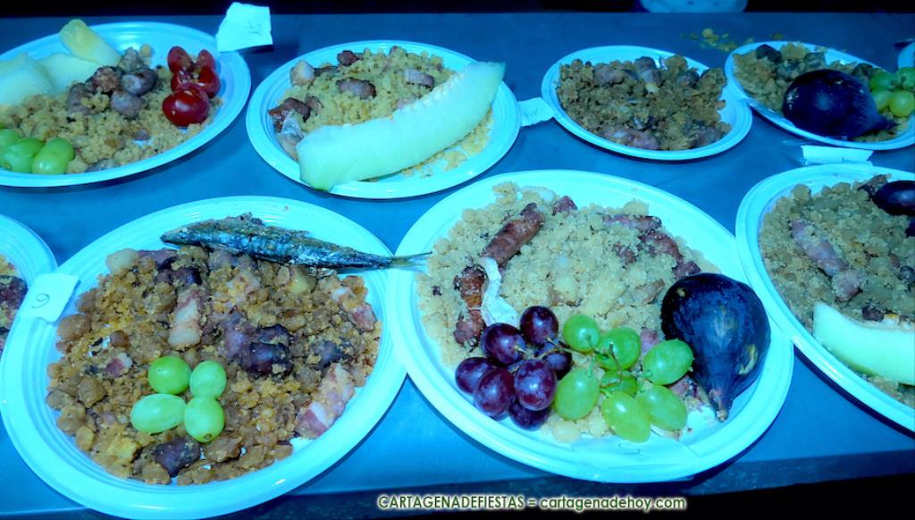 Dieciocho fueron los platos que se presentaron al concurso, con elaboraciones variadas, pues, además de la base tradicional, unas iban con sardinas, otras con uvas, higos, pimientos, etc., a los que hay que añadir la de verduras con frutos secos elaborada en la barraca de 'El porrón'.