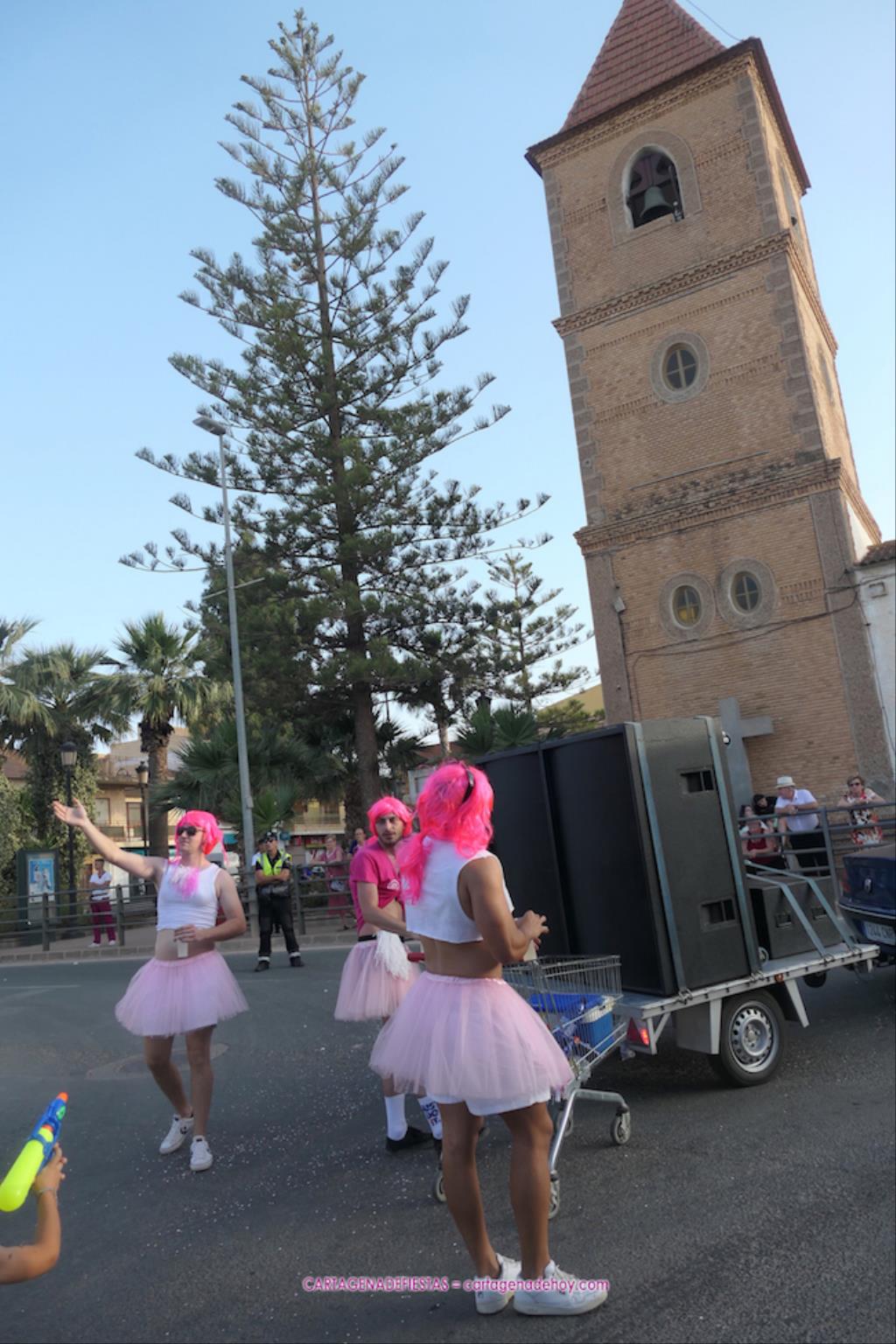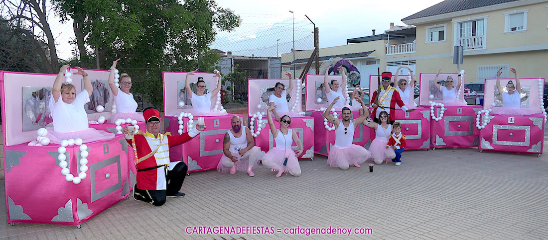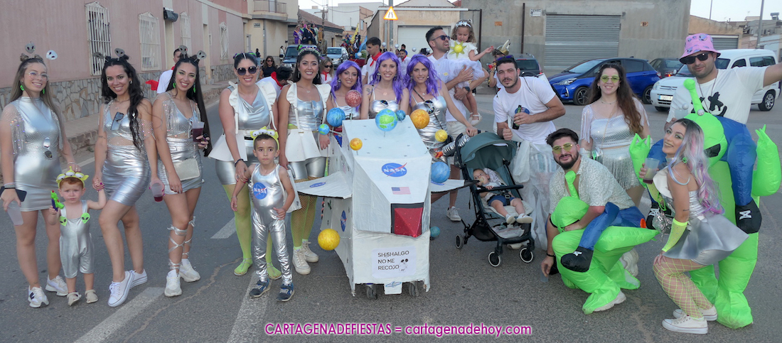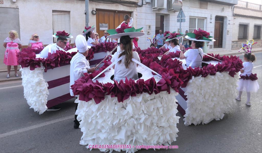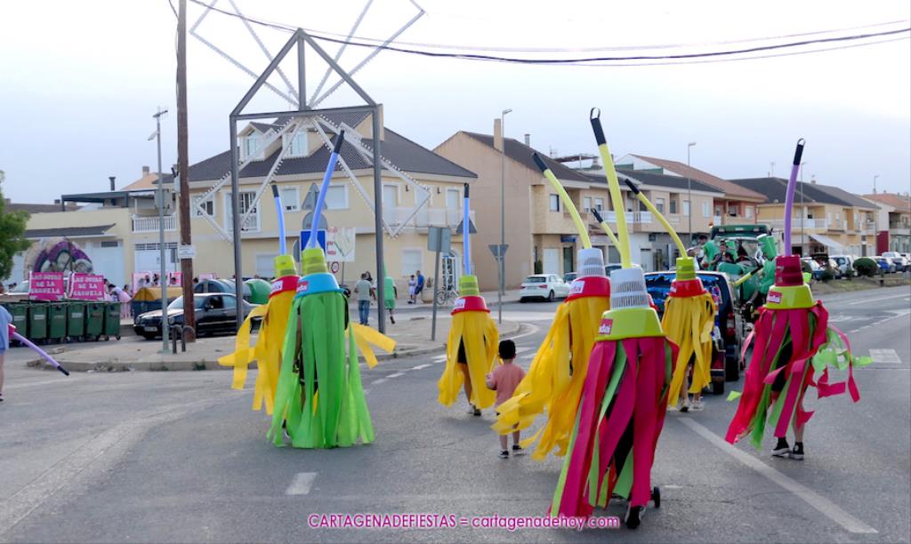 Había más en ese cortejo de imaginación aljorreña que ha cruzado el pueblo y que ha contado en su cabeza con el animado ritmo de las comparsas de San Javier y la de La Aljorra-Fuente Álamo (‘Imagine’).